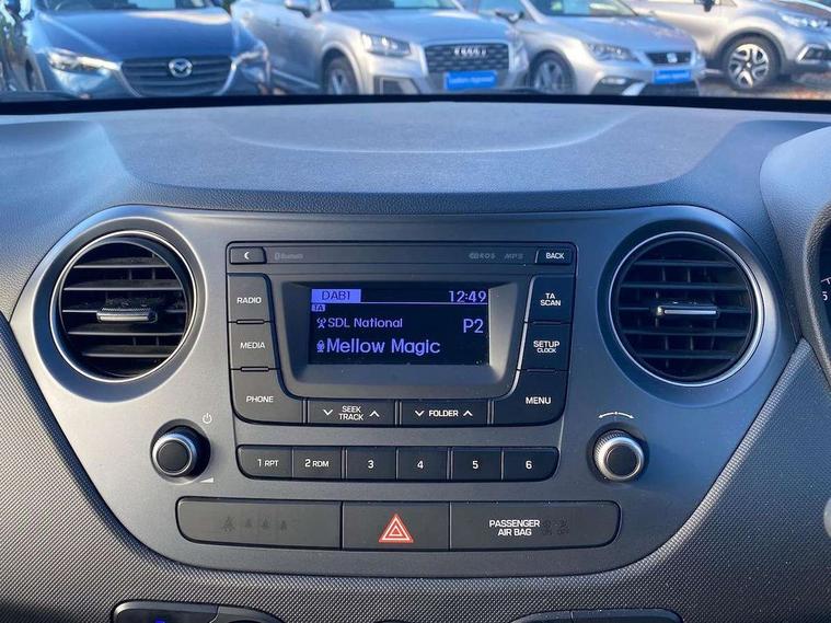 Bluetooth system, Cruise control + speed limiter, PAS, Trip computer, Vehicle Stability Control (VSC), 4 speakers, DAB Digital radio, RDS radio with MP3 player, Steering wheel mounted controls, USB/aux input socket, Black finish on B pillars, Body colour door handles, Body coloured bumpers, Body coloured door mirrors, Daytime running lights, Electric front windows, Electric rear windows, Electrically adjustable and heated door mirrors, Front intermittent wash wipers, Rear spoiler, Rear wiper, 12v power outlet - front, 60/40 split folding flat to floor rear seats, Air conditioning, Cloth upholstery, Courtesy lights, Driver + passenger vanity mirrors, Driver's seat height adjustment, Driver/passenger sunvisors with ticket holders, Front and rear bottle holders, Front door pockets, Front/rear adjustable head restraints, Height adjustable steering column, Isofix child seat preparation, Luggage compartment lighting, Rear door pockets, 3x3 point rear seatbelts, ABS/EBD, Brake assist function, Childproof rear door locks, Curtain airbags, Driver/Front Passenger airbags, Electronic stability control, Front and rear seatbelt reminder, Front seatbelt pretensioners, Front side airbags, Passenger airbag deactivate switch, Traction control, Tyre pressure monitoring system, Immobiliser, Perimeter alarm, Remote central locking, Speed sensitive auto door locking, 14" steel wheels, Space saver spare wheel,