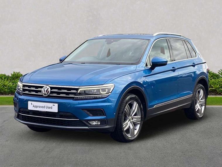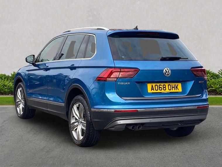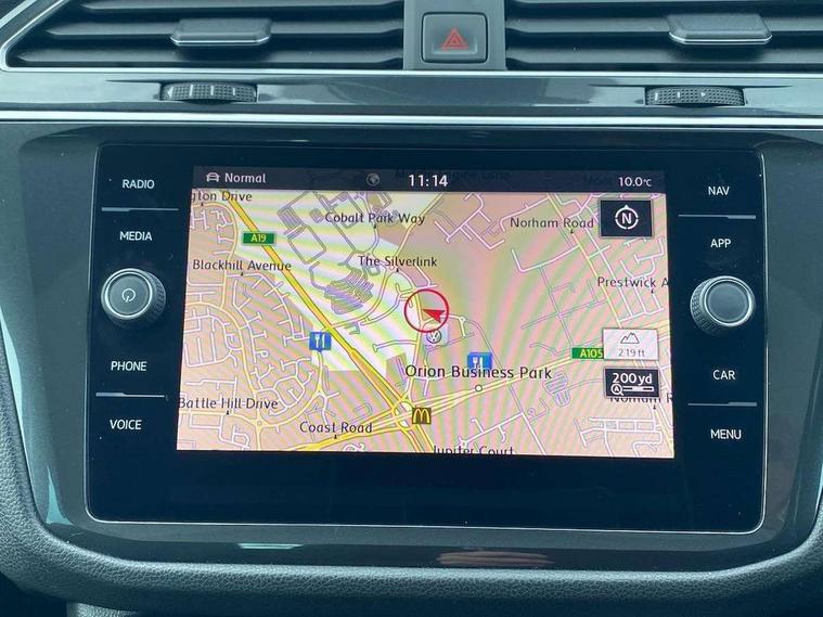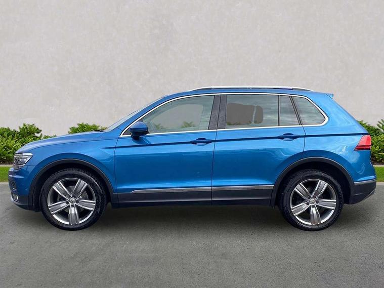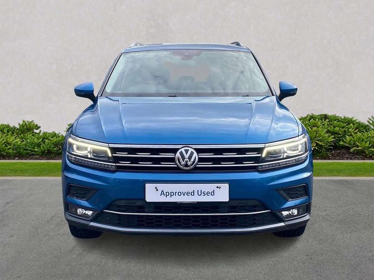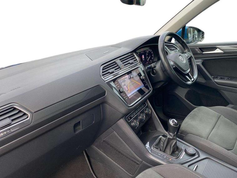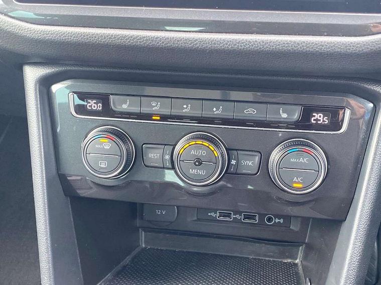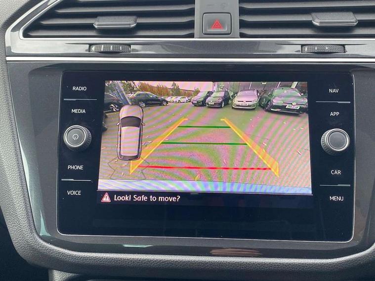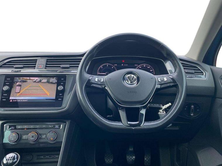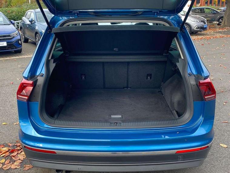 Active information display, Adaptive cruise control, App-Connect, Bluetooth phone integration system, Distance control assist, Drive mode selector, Fatigue detection system, Instrument cluster, Lane assist, Low washer fluid warning light, Outside temperature display, Service interval indicator, Speed limiter, Warning lights, Diesel particulate filter, XDS electronic differential lock, 2x USB sockets in front, Aux-in socket, DAB Digital radio, MP3 compatible single CD player, SD card slot, Auto dimming interior mirror, Automatic activation of hazard warning lights, Black door protector with chrome inserts, Body colour door handles, Body colour door mirrors, Body coloured bumpers, Chrome side body trim, Chrome side window surrounds, Chrome trimmed radiator grille, Coming/leaving home lighting function, Dusk sensor + auto driving lights, Electric folding door mirrors, Electric heated + adjustable door mirrors, Electric panoramic sunroof with sunblind, Front and rear electric windows, Heated rear window, LED headlights with dynamic light assist daytime running lights and cornering front fog lights, LED rear lights, Rain sensor windscreen wipers, Rear windscreen washer and wiper with interval delay, Silver rear diffuser trim, Silver roof rails, Silver under body guard, Tinted windows (B pillar backwards), Windscreen wipers/ intermittent wipe + 4 position delay, 12V Accessory socket in centre console, 3 rear headrests, 3 zone climate control, 4 load lashing points, 40:20:40 split folding rear seats, Bag hook in luggage compartment, Driver + front passenger lumbar support, Foldable passenger seatback, Front + rear carpet mats, Front centre armrest with 12v socket, Front centre armrest with storage + rear 2 air vents + cupholders, Front seatback folding tables, Height/reach adjust steering wheel, Illuminated driver/passenger vanity mirrors, Illuminated scuff plates, Interior light with delay, Isofix Preparation 2 Rear child seats, Leather gear knob, Load through provision with 2 cupholders when folded, Lockable cooled glovebox, Luggage compartment lighting, Luggage compartment side storage, Map pockets on front seats, Passenger seat height adjuster, Passenger underseat drawer, Rear cupholders, Removable luggage cover, Sliding/reclining rear seats, Storage compartment in driver's door, Storage compartment in passenger's door, Storage compartment in rear doors, Storage tray on dashboard, Sunglasses storage, Variable boot floor, Ambient lighting pack - Tiguan, 3 rear 3 point seatbelts, ABS+EBD+Brake assist, Active bonnet, Active pedestrian safety system, Curtain airbags, Driver/Front Passenger airbags, Driver/Passenger whiplash optimised head restraints, Drivers knee airbag, DTC - Drag torque control, Electronic parking brake with auto hold, ESP with EDL + ASR, First aid kit, Front assist including city emergency braking, Front side airbags, Head airbag system, Height adjustable front 3 point seatbelts + pretensioners, Hill hold control, Passenger airbag deactivate switch, Passenger knee airbag, Pre crash system, Rear side airbags, Seatbelt warning lamp and buzzer, Two tone horn, Warning triangle, Alarm with interior protection, Electronic engine immobiliser, Remote central locking with 2 remote folding keys, Chrome door trim inserts, Piano black interior trim, Steel space saver spare wheel,