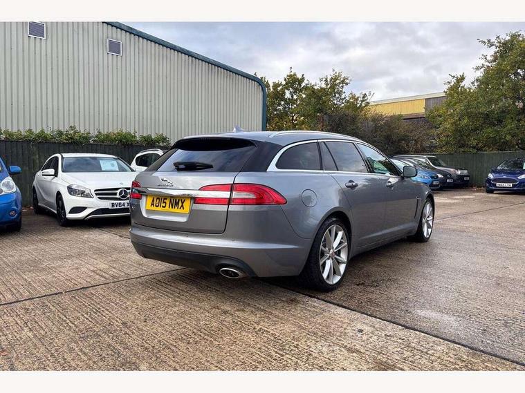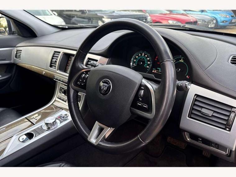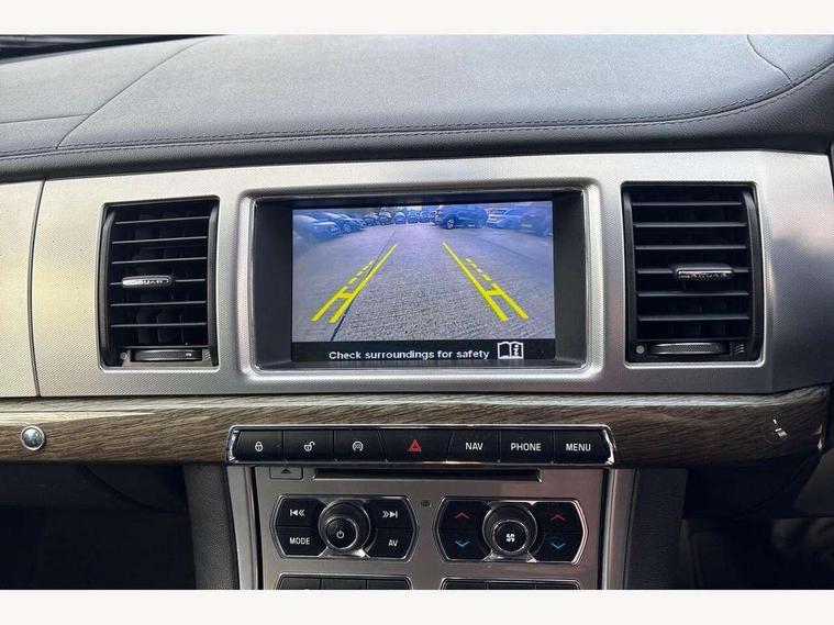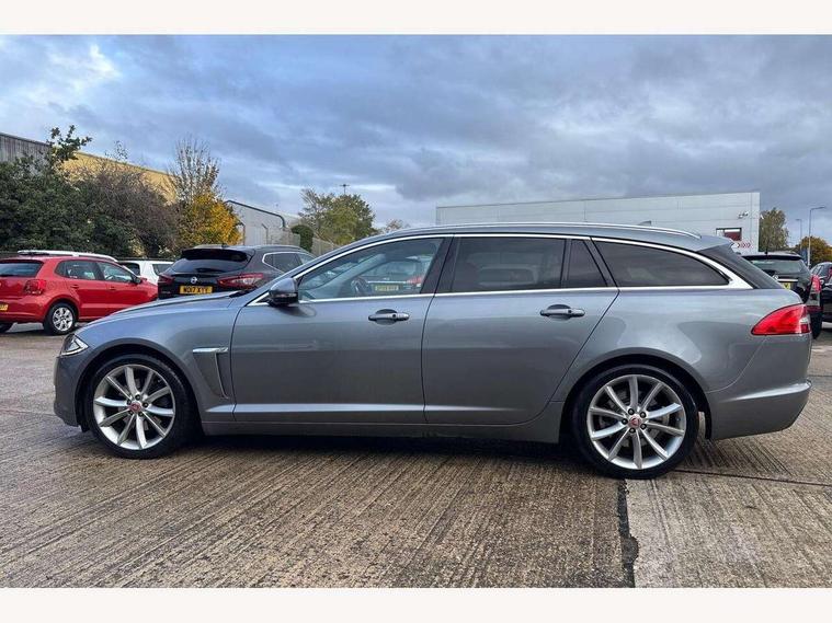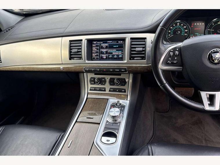 7" colour screen, Bluetooth telephone connectivity, Driver information centre, Electric tailgate release, Navigation system with HDD mapping, RDS/TMC + DVD player, Power tailgate, Rear parking sensor, Service interval indicator, Servotronic PAS, Trip computer with dual function, Self levelling suspension, Auxiliary input socket, Bluetooth audio streaming, DAB digital radio module, Media interface, Steering wheel mounted audio/cruise controls, Approach lamps, Auto dimming rear view mirror, Automatic headlights, Bi-Xenon headlights with LED day running lights, Body colour bumpers, Chrome grille, Chrome window side surrounds, Electric adjustable heated door mirrors, Electric folding and auto dimming door mirrors, Electric front/rear windows with one touch/auto up/down, Headlight washers, Heated front windscreen and timer, Heated rear window with timer, Laminated windscreen, LED tail lights, Rain sensor windscreen wipers, Rear privacy glass, Rear wash/wipe, Roof rails, Tailgate spoiler, 12V socket in rear of vehicle, 2 X front 12v power sockets, 3 rear seat head restraints, 3 spoke leather steering wheel, 60/40 asymmetric split folding rear seats, Auxiliary heater, Carpet mats, Coat hooks, Cubby box in loadspace, Driver's lumbar support, Drivers footrest, Dual zone climate control, Folding rear centre armest, Footwell lights, Front armrest, Front centre console storage box, Front seat and rear pockets, Interior mood lighting, Isofix child seat preparation, Jaguar sense, JaguarDrive selector, Load area light, Loadspace cover, Loadspace rails, Luggage net, Reach/rake electric adjustable steering column + entry/exit tilt away, Rear centre head restraint, Softgrain leather instrument panel and door top rolls, Steering wheel gearshift paddles, Sunvisors with illuminated vanity mirrors, Twin front cupholders, Twin rear cupholders, Underfloor stowage compartment, ABS+EBA, Anti-whiplash front headrests, Brake pad warning light, Cornering brake control, Driver/Front Passenger airbags, DSC - Dynamic Stability Control, Electronic parking brake, Front/rear seatbelt pre-tensioners, Side airbags, Side curtain airbags, Three 3 point rear seatbelts, Tyre pressure monitoring system, Alarm/immobiliser, Deadlocks, Drive away door locking, Keyless entry system, Keyless Start, Remote central locking, Knurled Aluminium IP Finisher,