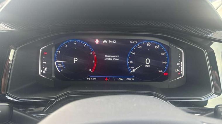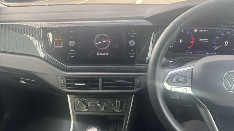 Advanced driver attention and drowsiness monitor, Bluetooth mobile phone interface, Dynamic road sign display, Emergency call service, Mobile phone preparation with inductive charging function, Multifunction front facing camera for distance control, Power assisted speed sensitive steering, Predictive adaptive cruise control without follow-to-stop and speed limiter, Preparation for navigation system with media and internet package, Preparation for We connect and We connect plus, Rear view camera, Speedo and rev counter, electronic odometer, trip, service interval display and exterior temperature gauge, Standard rear axle, Travel Assist - Lane keeping system and traffic jam assist, Travel assist including emergency assist, Trip computer, Warning signal and warning light for front and rear seatbelts not fastened, Washer fluid level indicator, Wireless app connect, Front wheel drive, Rear shock absorpion, Start-stop system with battery regeneration (recuperation - energy recovery during braking), DAB Digital radio, Diversity antenna for FM reception, Automatic dimming interior rear view mirror, Automatic headlight control with LED separate daytime running lights with coming/leaving home function, Body colour bumpers with chrome inserts, Body colour door handles, Body colour door mirrors, Electric front windows, Engine badge deletion, Headlight range adjustment, Heat insulating and laminated safety glass windshield, LED Headlights, LED rear combination lamps, Power folding adjustable/heated exterior mirrors and front passenger exterior mirror lowering function, Rain sensor, Rear electric windows, Rear fog light, Rear side wing doors, Rear tinted glass from B-pillar backwards approx 65% tinted, Rear windscreen washer and wiper with interval delay, Third brake light, 12V power socket in centre console, 2 front and 2 rear reading lights with switch off delay and dimmer, 2 USB-C ports in the front, 2 USB-C charging sockets on the center console in the rear, 3 rear head restraints, 60/40 split folding rear seat and rear seat bench not split, Ceramique roof lining, Chrome plated radiator grille inserts, air vent surrounds and light switch surrounds, Door and side trim panel, Driver and front passenger seat height adjustment, Driver/passenger sunvisors with illuminated vanity mirrors, Front centre armrest, Front seat backrest storage pockets, Front standard seats, Handbrake lever handle in leather, Hartley/Thomas cloth upholstery, Headliner in recycled material, Isofix child seat preparation easy-fit (for two outer rear seats, and front passenger seat) compatible with I-size, Leather trimmed gear knob, Luggage compartment cover, Luggage compartment lighting, Removable luggage compartment floor, Single front passenger seat, Standard climatic zones, Standard pedal cluster, Three spoke leather wrapped multifunction steering wheel with shifting paddles, Light and vision pack - Polo, 3 point height adj front seatbelts + pretensioners, 3 point seat belt for centre rear seat, 3 point seatbelts, outer rear with ECE lable, ABS, Driver and front passenger airbag with front passenger airbag deactivation, Drivers and front passengers safety optimised head restraints, ESC (Electronic stability control) + EDL (Electronic Differntial lock) and ASR (Traction control), Extended and predictive pedestrian/ cyclist protection, Front assist with autonomous emergency braking (for Adaptive Cruise Control ACC up to 130 mph), Front curtain and side airbags with center airbag, Front disc brakes, Hill hold control, Manual child lock in rear doors, Rear drum brakes, Single tone horn, Tyre pressure loss indicator, Alarm with interior protection, Anti-theft alarm system with interior monitoring, backup horn, and towing protection, Anti-theft wheel bolts, Electronic engine immobiliser, Lava stone black gloss/matt decorative inserts in dash and front door panels, 16" Torsby alloy wheels, Low rolling resistance tyres,