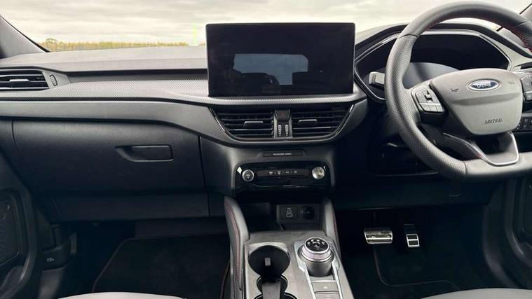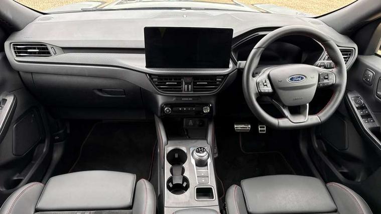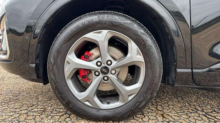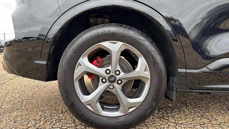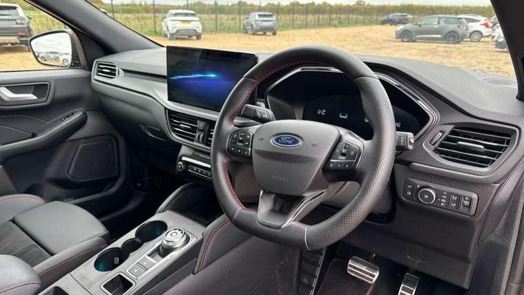 12.3" digital colour instrument cluster, 360 degree camera, e-Call (emergency call), Ford easy fuel, Ford SYNC 4 Navigation with 13" touchscreen, DAB radio, emergency assistance, Andriod Auto/Apple CarPlay, 5G modem & Ford Pass connect, Front and rear parking sensors, Hands free power tailgate, Lane centering assist, Lane keeping aid with lane departure warning, Power assist steering, Selectable drive modes, Service interval indicator, Sports suspension, Twist beam rear suspension, B&O premium audio system with 10 speakers, subwoofer and 2 USB ports, Auto headlamps with high and low beam, Black roof rails, Body colour bumpers, Front LED fog lamps, Large rear spoiler, LED daytime running lights, LED rear lights, Pop out door edge protectors, Power front/rear windows with global close, Power heated folding door mirrors with puddle lights, memory function and camera, Quickclear heated windscreen, Rain sensing wipers, Rear privacy glass, Rear side wing doors, Rear wiper, ST-Line body styling kit, Third brake light, 12 way ergonomic power adjust driver's seat with memory (AGR certified), 12 way ergonomic power adjust passenger seat (AGR certified), 2nd row sliding seats, Electronic automatic temperature control (EATC), Front and rear head restraints, Partial premium touch sensico upholstery, Rear centre head restraint, Single front passenger seat, Sports seats, Driver assistance pack with intelligent adaptive cruise control - Kuga FHEV/PHEV, 3x3 point rear seatbelts, Airbags - front driver/passenger, front and rear curtain, Drivers knee airbag, Dynamic brake support, Electronic stability control (ESC) and ABS, Evasive steering assist, Ford MyKey Gen 2 safety system, Manual child proof rear door locks, Pre collision assist with autonomous emergency braking, Rear seat Occupancy alert, Red brake calipers, Tyre pressure monitoring system, Engine immobiliser, Keyless entry and Ford power start button (Keyless start), Locking wheel nuts, Remote powered central double locking doors, Thatcham category 1 alarm,