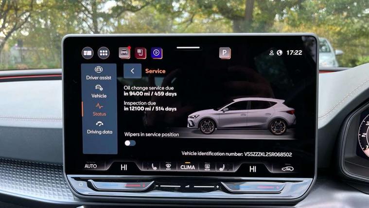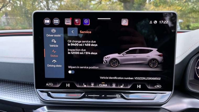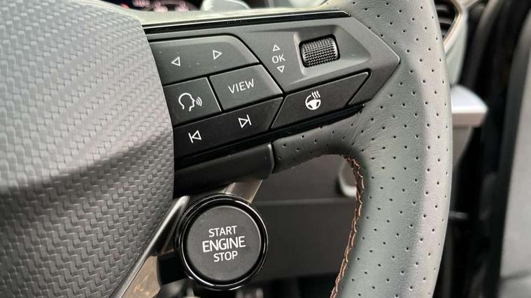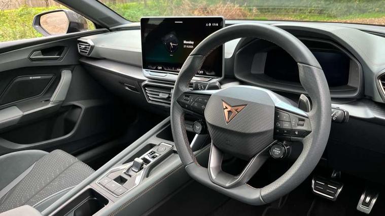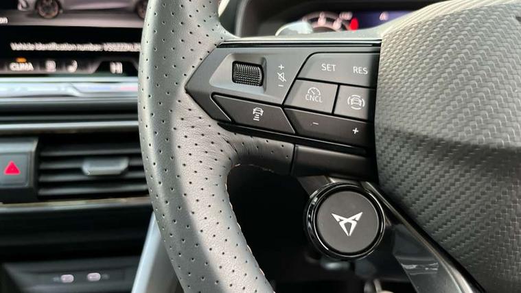 Adaptive cruise control with follow-to-stop and speed limiter, CUPRA drive profile selection with (Comfort/Sport/Individual), throttle response and gearshift mode, Digital cockpit, Dynamic road sign display, E-call, Four x USB Type C ports (2 in front and 2 in rear), Front and rear parking sensors, Front assist with forward collision warning braking reaction to vehicles, pedestrians and cyclists, Full link smartphone integration with Mirror Link, wireless Apple CarPlay and wired Google Android Auto, Intelligent park assist, Lane change assist with emergency assist, Lockable tailgate, Rear view camera, RPM, trip computer, outside temp gauge, instrument light brightness, low fuel warning light, lights on reminder, gearshift indicator, Service interval indicator, Side and exit assist, Start/stop system with regenerative braking, Wireless phone charger, Auxiliary input socket, Immersive by Sennheiser TM - 10 speakers, 1 central speaker, 1 subwoofer, Auto dimming rear view mirror, Body colour door handles, Body coloured bumpers, Cupra sports bumpers, Dark tinted rear windows, Electric front/rear windows, Electrically adjustable, heated and folding door mirrors, High beam assist, LED front fog lamps with cornering function, LED rear fog lamp, Matrix LED Headlights with variable light distribution, Matrix Beam and Dynamic headlight range control, Rain sensing wipers, Rear side wing doors, Rear wash/wipe, Separate daytime running light with automatic headlight control and coming home feature, Third brake light, Welcome light with logo projector in door mirrors, 12v power supply in centre console, 3 seat bench in 2nd row, 5 headrests, 60/40 split rear bench seat with armrest, Ambient lighting (glovebox, footwell, ambient lighting multicoloured), Black headlining, Cupra sports pedals, CUPRA Supersports, heated steering wheel with satellite buttons, Electrically adjustable driver seat and lumbar support with memory function + manually adjustable passenger seat, Folding boot cover, Front and rear reading lights X 4, Front centre armrest, Heated front seats, Height/reach adjust steering wheel, Illuminated interior front door sills, Interior wraparound lighting, ISOFIX points in outer rear seats with top tether anchorage points, Single front passenger seat, Sunvisors with illuminated mirror, Textile cloth upholstery, Three zone climate control, Dynamic and comfort pack - Leon Cupra, Media system plus with 12.9" display + navigation pack - Leon Cupra, 3 point seatbelts on all rear seats, ABS, Akebono performance brake calipers, Brake control system - ESC and brake booster, Child proof door locks, Driver and front passenger airbags with front passenger airbag de-activation, front side and curtain airbags, Electronic parking brake, Hill hold control, Pre-crash front and rear seat belt tensioner, window closure and hazard lights, Rear disc brakes, Seat belt reminder for front and rear seats, Tiredness recognition system, Tyre pressure monitoring system, Anti theft alarm system with interior monitoring in cab, backup horn and towing protection, KESSY Advanced - Keyless start, keyless entry, Locking wheel bolts, Chrome and copper interior detailing, 19" Hailstorm forged machined R black and copper alloy wheel with 91Y tyres, Breakdown kit, Tool kit,