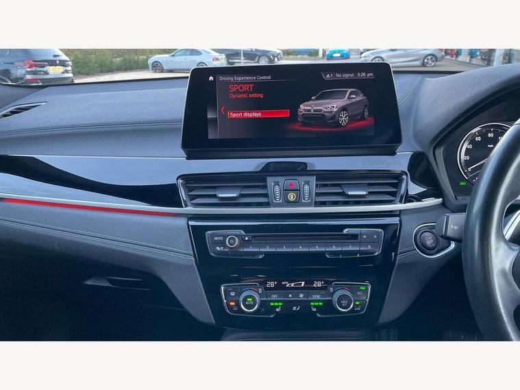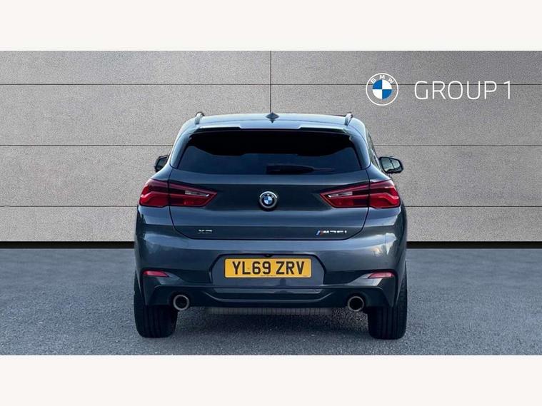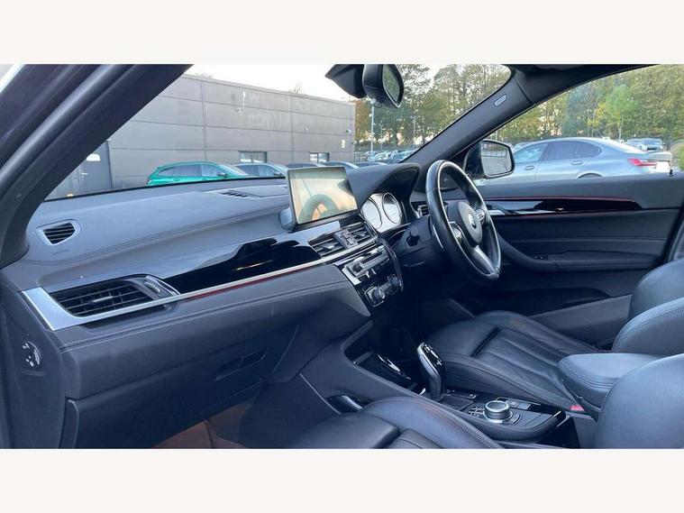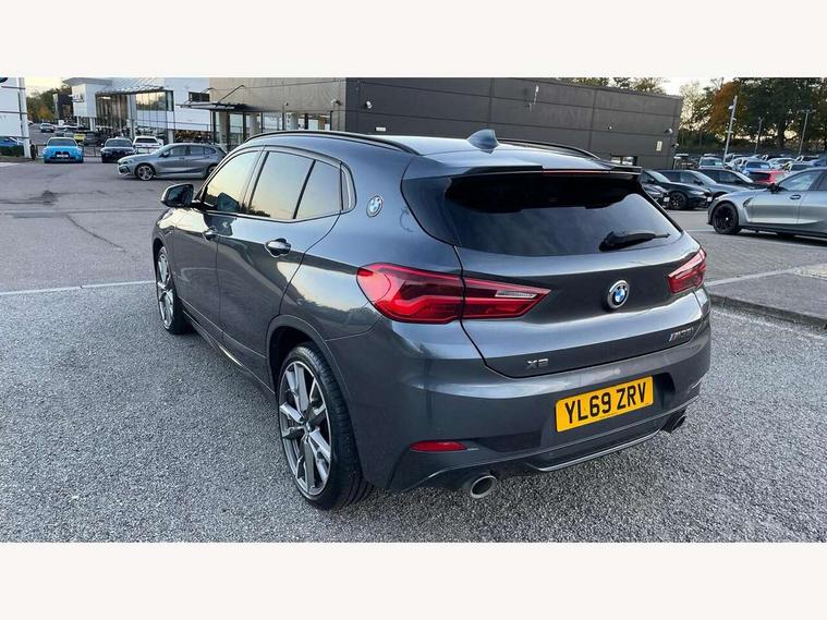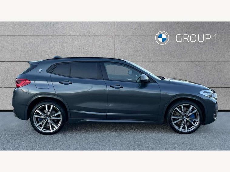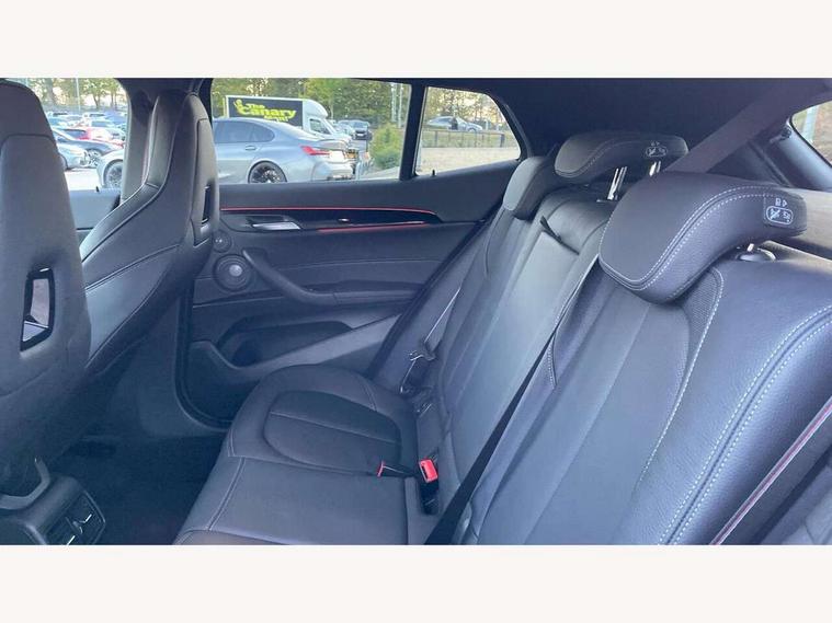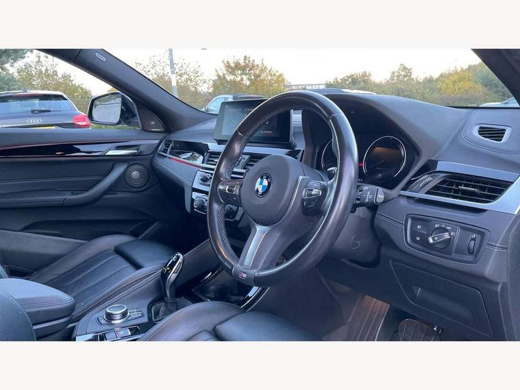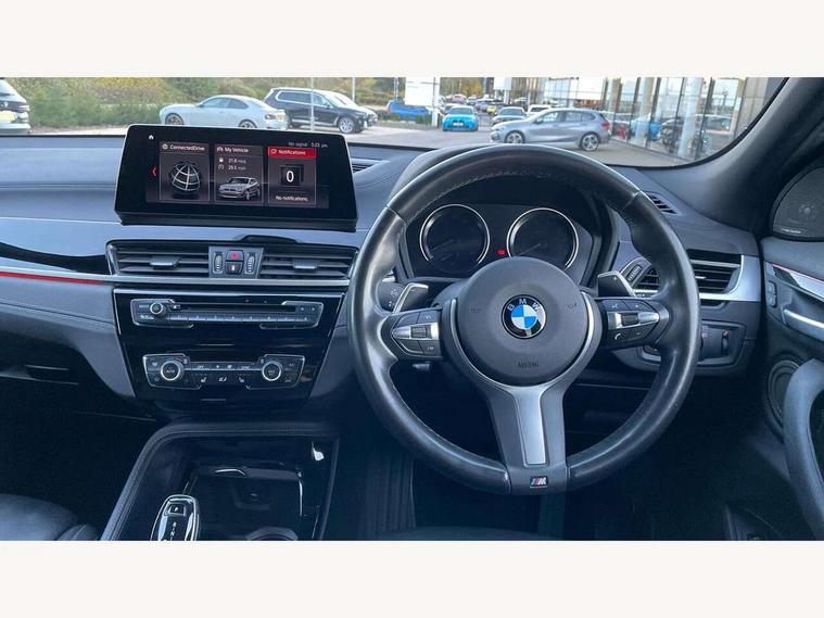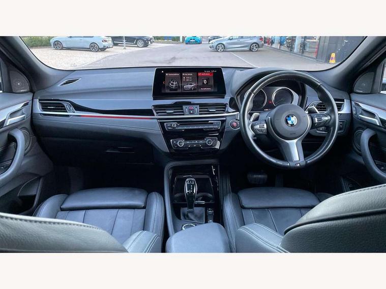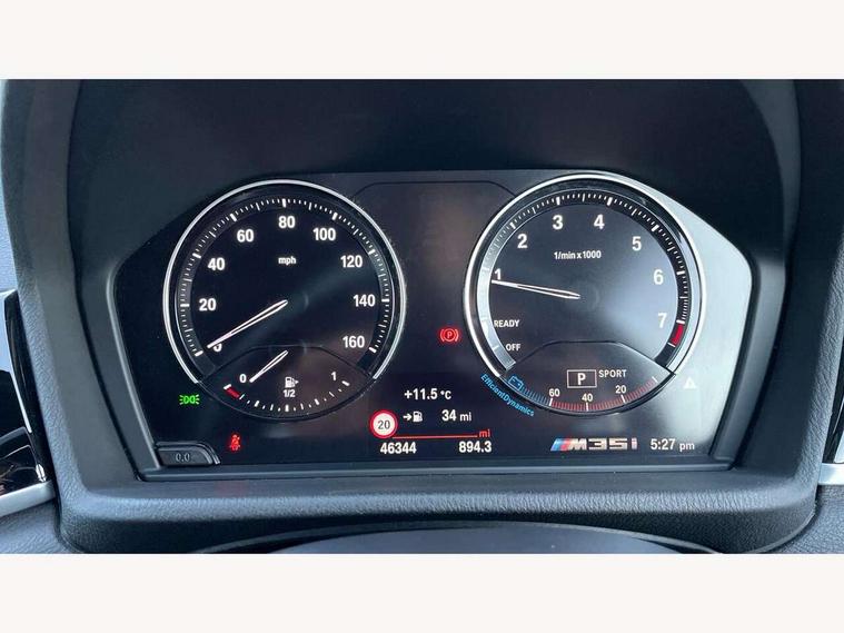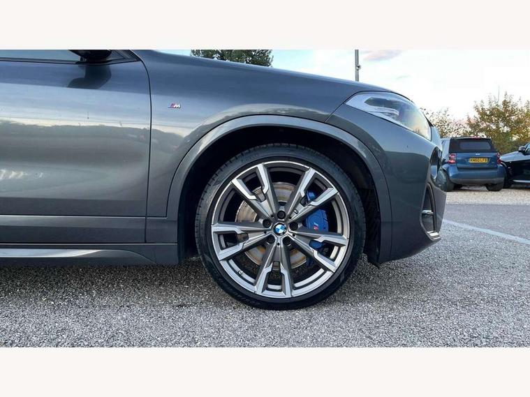 Active Guard incl speed limiting and lane departure functions with auto steering, and front collision warning with brake intervention, Automatic powered tailgate, Bluetooth hands free facility with USB audio interface, BMW Online services, BMW remote services, BMW Teleservices, Brake pad wear indicator in front and rear, Check Control warning system for monitoring of lights and door/luggage compartment open warning, Eco pro mode, Instrument cluster with black optic and 5.7" colour display + speedometer + tachometer + fuel gauge + instant fuel economy with M35i logo, Lights on warning by audio warning signal when ignition is switched off, M Sports steering, On board computer - average speed+fuel consumption, service interval, clock/date, odometer/trip meter, outside temperature display and ice warning, Optimum shift indicator, Personal Profile, Real time traffic information, Speed limiter, TMC for lifetime of vehicle, 12V compressor with integrated sealant injection bottle and hose, 61 Litre touring fuel tank, Anti roll bar front and rear, Balancer shaft, Drive performance control with ECO PRO comfort + sport mode, Electronic differential lock, Engine cover with M performance designation, M sport suspension, Performance Control, Sport automatic transmission, Twin tube gas filled shock absorbers with degressive characteristic curve, 2x USB sockets in front, Bluetooth audio streaming, BMW professional radio with CD player, DAB Digital radio, Steering wheel mounted audio/telephone controls, Adjustable headlights, Automatically dimming rear view mirror, BMW badge on bonnet, tailgate with integrated tailgate release and C pillars, Body colour door handles, Body colour roof trims, Chrome kidney grille with black vertical slats, Clear lenses direction indicator lights, Direction indicator side lights integrated in exterior mirrors using LED technology, Door mirror integrated indicators, Dynamic brake lights, Electrically adjustable and heated door mirrors glass aspheric on driver's side and convex on passenger side, Fingertip control / anti-trap function on electric window, Front and rear bumper system, Front and rear electric windows, Green tinted heat protection glazing, Halogen headlights, Heated windscreen washer jets, High gloss black front side air intake with matt black insert, High gloss black in window frame, recess covers and B-Pillar trim, High level third brake light, LED front fog lights, LED headlights with extended contents - cornering, high beam assist, LED day running lights with dynamic beams-through for urban and motorway, Lightweight engineering, M rear spoiler, Model designation in left tailgate, Model designation in right tailgate, Rain sensor with automatic headlight activation, Rear fog lights, Rear tail lights with LED technology and 3D design, Rear window aerial, Rear window wiper with wash/wipe function, Reversing light in rear light cluster, Round exhaust system with twin cerium grey tailpipes in left and right split, Satin aluminium roof rails, Shark fin antenna, Twin chrome exhaust tailpipes, Visible VIN plate, Welcome lighting, 40:20:40 manually split folding rear seat with two tilt positions for backrest, Ambient light in front centre console/cup holder area, Anthracite headlining, Armrest in centre section of rear seat backrest and folding, Automatic two zone climate control air conditioning, Child seat ISOFIX attachment for two outer rear seats and front passenger seat with anchorage points, Conditioned based service, Driver and front passenger seat heating, Driver/passenger sunvisors with ticket holders, Drivers folding storage compartment, Floor mats with black surround and M flag detail on front mats, Front and rear door armrests, Front armrest, Front door sill finishers with M35i designation, Front head restraints, Gearshift paddles on steering wheel, Glovebox with light, Interior light in front centre interior mirrors and rear centre auto interior light activation when door is opened when ignition switched off, LED ambient lighting in upper door trim and dashboard trim, Luggage compartment lighting, Luggage compartment loading edge with stainless steel insert, Luggage compartment with underfloor storage and four lashing eyes, M Sport multifunction leather steering wheel, Rake/reach adjustable steering wheel, Retaining strap on the left side of the luggage compartment, Three rear headrests, Two cupholders in front and rear centre console, Extended lighting pack - X2 M35i, Extended storage pack - X2, M Sport aerodynamic pack - X2 M35i, 3 point seatbelts on all seats, front pyrotechnic belt tensioners, stopper and belt force limiters, rear coded belt buckles, Airbags - Front driver and passenger, front and rear head, front side, curtain head protection, Anti lock braking system (ABS) with brake assist, ASC - Active stability control, BMW emergency call, Brake drying, Brake energy regeneration, Braking readiness, Child proof locking system in rear door, Crash sensor activating central locking release with hazard warning lights and interior lighting + battery safety cut-off, Driver and front passenger seat belt security check, DSC - Dynamic Stability Control, Dynamic Traction Control - DTC, Electrically operated parking brake with automatic drive release, Electronic parking brake, Front passenger airbag deactivation, Front ventilated brake disc, Hill descent control, Hill start assist, M Sport braking system, M Sport seatbelts, Multi collision braking system, Rear brake discs, Side impact protection, Twin horns, Tyre pressure monitor, Warning triangle and first aid kit, Auto door lock when driving, Central locking switch for all doors, fuel filler cap and luggage compartment, Engine immobiliser, Incorrect fuel protection system, Locking wheel bolts, Remote control including integrated key with M specific highlight, Remote control Thatcham category 1 alarm, Start/stop button with comfort go keyless engine start and auto start stop deactivation button, Dash top fi