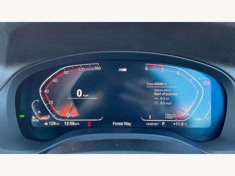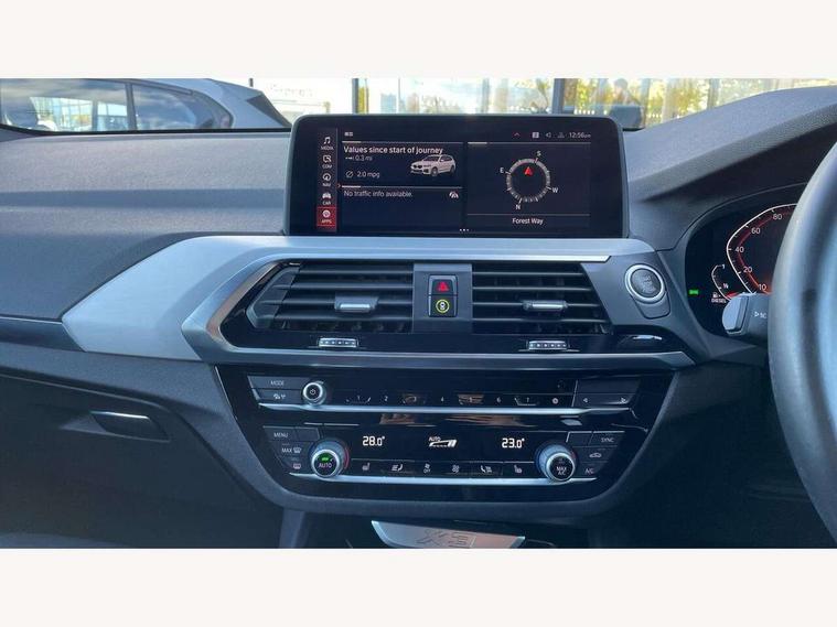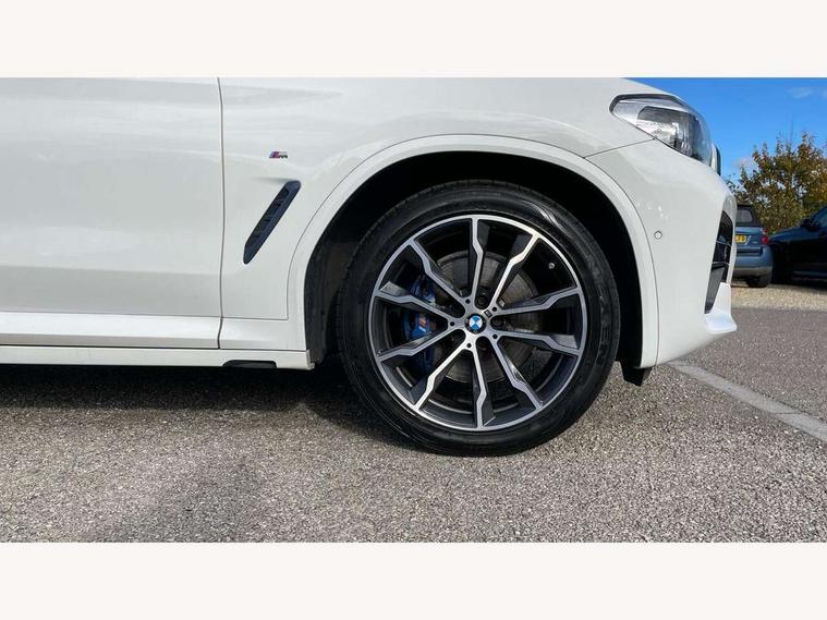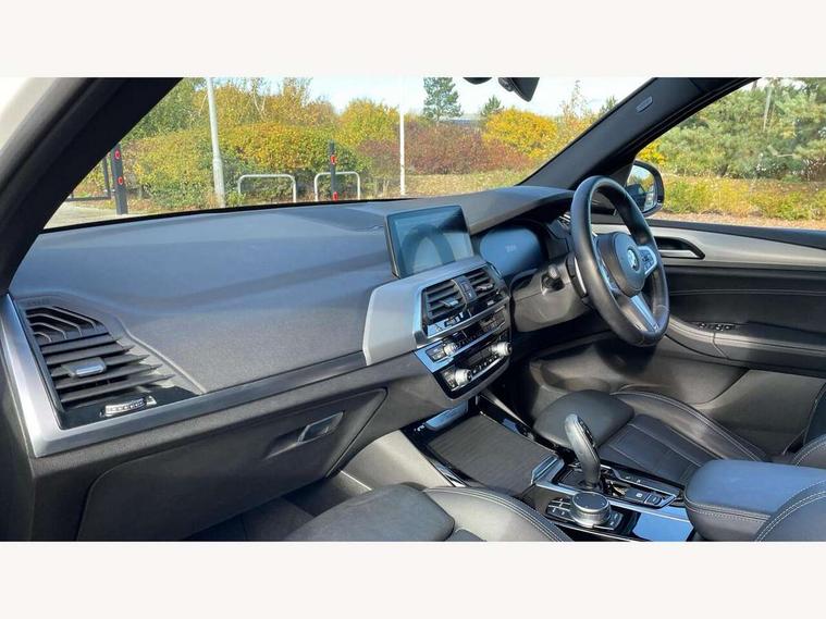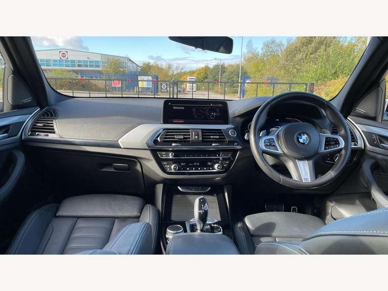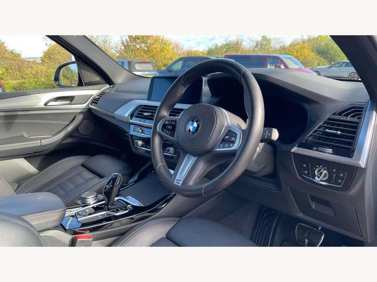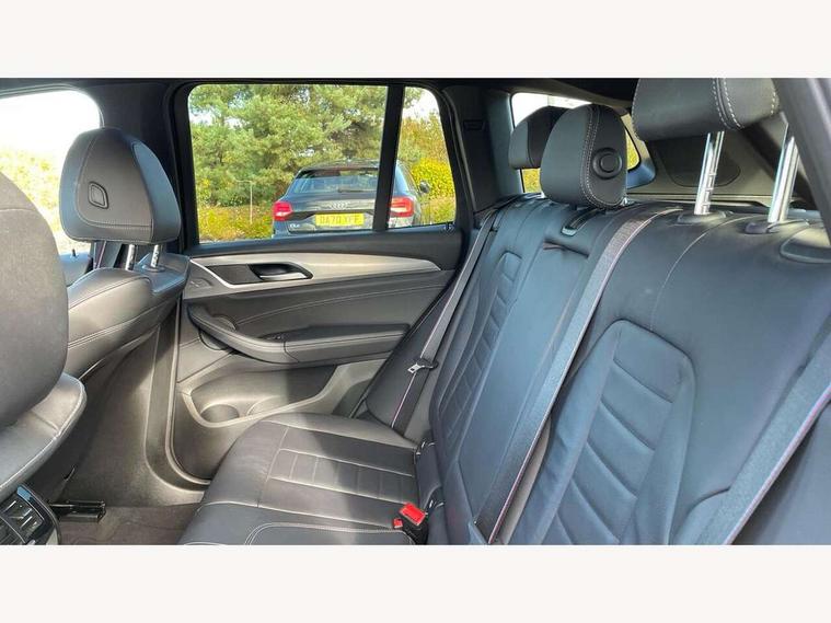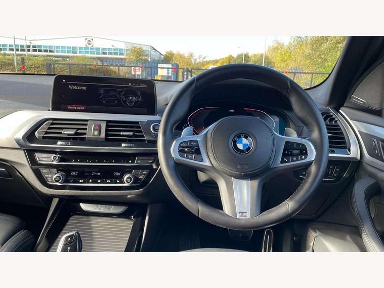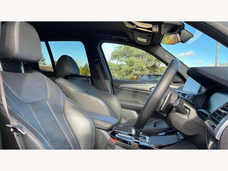 Attentiveness assist, Automatic tailgate operation, BMW Live Cockpit Professional sat nav system including 10.25" high resolution display and Intelligent Voice Assistant, BMW Online services, BMW Teleservices, Brake pad wear indicator in front and rear, Check Control warning system for monitoring of lights and door/luggage compartment open warning, Control display - 6.5" colour display screen, iDrive Controller with 8 favourite buttons, Lights on warning by audio warning signal when ignition is switched off, Navigation system - BMW Professional multimedia with Hard disc drive (HDD) and 10.25" touch display, Oil sensor for level and grade, warning by check control system, On board computer - average speed+fuel consumption, service interval, clock/date, odometer/trip meter, outside temperature display and ice warning, Optimum shift indicator, Personal Profile - automatic lock when driving away selectable, Semi digital instrument cluster, Stop/start system, Variable sports power steering, Diesel particulate filter, Drive performance control with ECO PRO comfort + sport mode, Incorrect fuelling protection, Larger capacity fuel tank, M sport suspension, Multi-link rear suspension, Performance Control, Sport automatic transmission, Auxiliary socket for external MP3 player, BMW professional radio/CD/MP3, DAB Digital radio, Acoustic glazing, Black finish on B pillars, Body colour door handles, Body colour electric adjust heated aspherical door mirrors, Body colour roof mouldings, Body coloured bumpers, Chrome kidney grille with high gloss black vertical slats, Direction indicator, side repeaters, integrated in exterior mirrors, Dual chrome exhaust, Dynamic brake lights, Exterior mirrors - electrically folding with anti-dazzle, Fingertip control / anti-trap function on electric window, Follow me home headlights, Front and rear bumper system with replaceable deformation elements, Front and rear electric windows, Green tinted heat insulating glass, Heated windscreen washer jets, Height adjustable headlamps, High gloss black door sill finishers, High gloss black shadow line roof rails, High gloss shadowline exterior trim in decorative moulding side frame/recess cover/guide rail/B, C pillars/mirror frame and triangle with mirror base, High level 3rd brake light incorporating LED Technology, Interior rear view electrochromatic mirror with automatic anti dazzle function, LED front fog lights, LED tail lights, Lightweight engineering, M aerodynamic bodystyling, Model designation, Rain sensor including auto headlights activation, Rear wiper, Shark fin antenna, Side exterior M designation badges, Visible VIN plate, Welcome lighting, Windscreen wipers with adjustable interval, 12V socket in centre console and luggage area, 3 rear headrests, 3 zone automatic air conditioning, 4 lashing points to secure luggage, Ambient lighting, Anthracite headlining, Anthracite Velour floor mats, Door sill finishers with BMW Individual designation, Driver/passenger sunvisors with ticket holders + illuminated vanity mirrors, Foldable boot floor with storage compartment, Four grab handles integrated in roof lining, Front and rear bottle holders integrated into door trim storage compartments, Front and rear side armrests integrated into door trim, Front centre armrest with storage compartment, Front footwell lights, Front sports seats, Front/rear courtesy lights with soft on/off dimming, Front/rear reading lights, Height adjustable front/rear head restraints, Isofix rear child seat preparation, Leather gear knob, Luggage area underfloor compartment, Luggage compartment lighting, M leather steering wheel, Parcel shelf removeable and storable under boot floor, Reach and rake adjustable steering column, Rear centre armrest with 2 cupholders, Removable / retractable luggage cover, Slope adjustable rear seats, Storage compartment in rear centre console and front/rear door trims, Through loading system with 40/20/40 split folding rear seat, Toolkit located in luggage compartment, Two front cupholders with removable oddments tray/lid, Vernasca leather upholstery, Connected pack professional - X3, ABS/EBD, ADB - Automatic Differential Brake, Automatic Stability Control (ASC), Battery safety cut-off, BMW emergency call, Brake assist, Brake drying, Brake energy regeneration, Braking pre-tensioning, Child locks on rear doors, Cornering brake control (CBC), Crash Sensor - activation of central locking release, hazard warning light and interior lighting, Deactivation of fuel pump in the event of a crash, Driver and front passenger front and side airbags with passenger deactivation and ITS front and rear head airbags, DSC+, Dynamic brake control, Dynamic Traction Control - DTC, Electromechanical parking brake, Front seat belts warning, Hill descent control, Hill start assist, Seatbelt security check for front seats, Side impact protection, Three point seatbelts to all seats with front and outer rear pyrotechnic belt tensioners and seat belt force limiters, Two tone horn, Tyre pressure monitoring system, Ventilated front and rear disc brakes, Warning triangle and first aid kit, Central locking switch for all doors, fuel filler cap and luggage compartment, Electronic engine immobiliser, Locking wheel nuts, Remote control including two integrated key - one button for open/close all lockable content, windows and separate button for open luggage compartment, Remote control Thatcham category 1 alarm, Start/stop button with Comfort Go keyless engine start and auto Start/stop deactivation button, Low rolling resistance tyres,