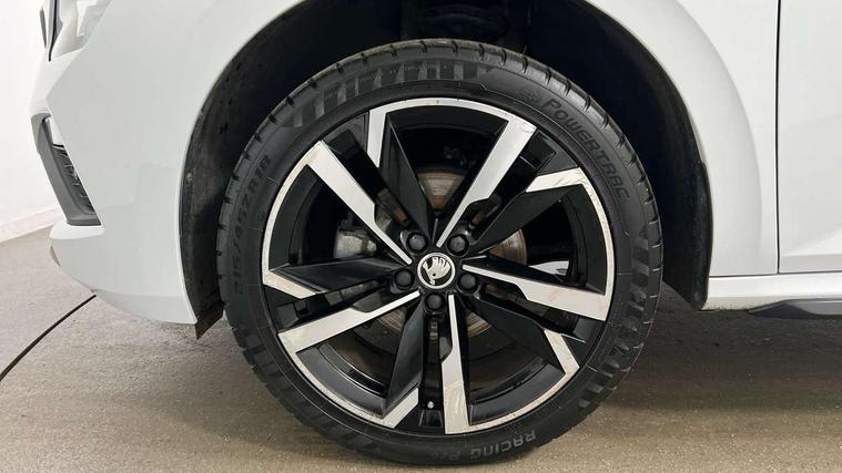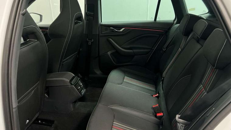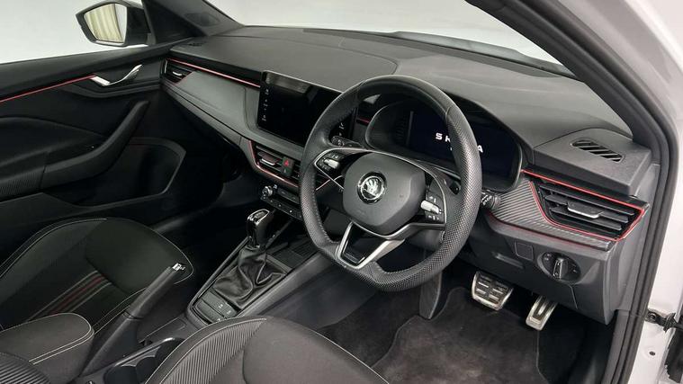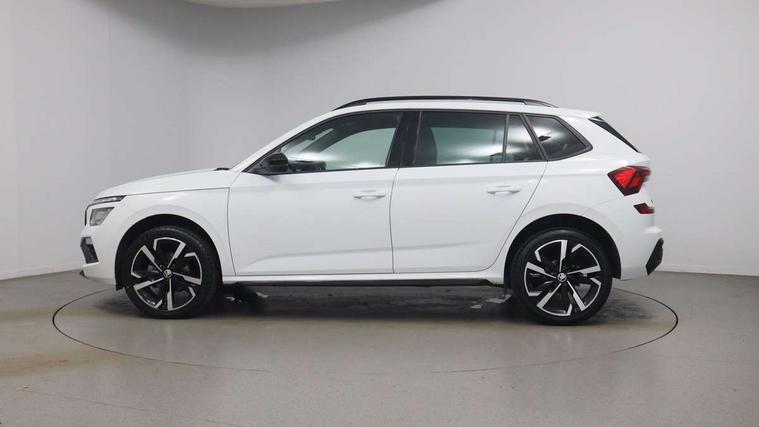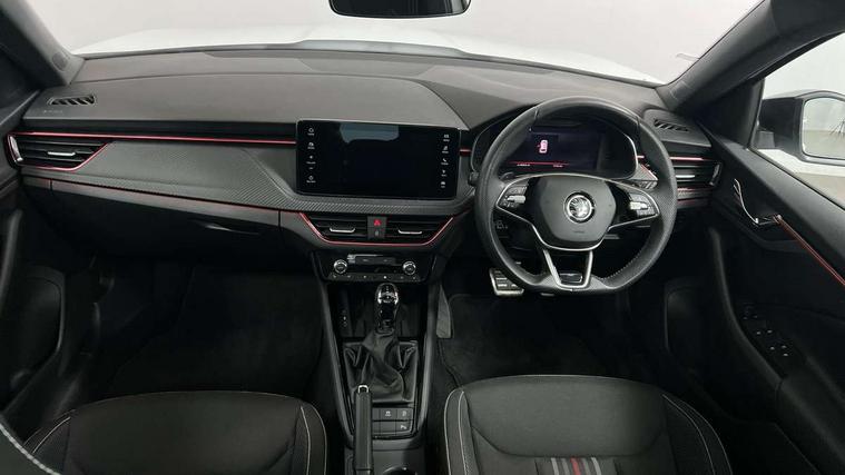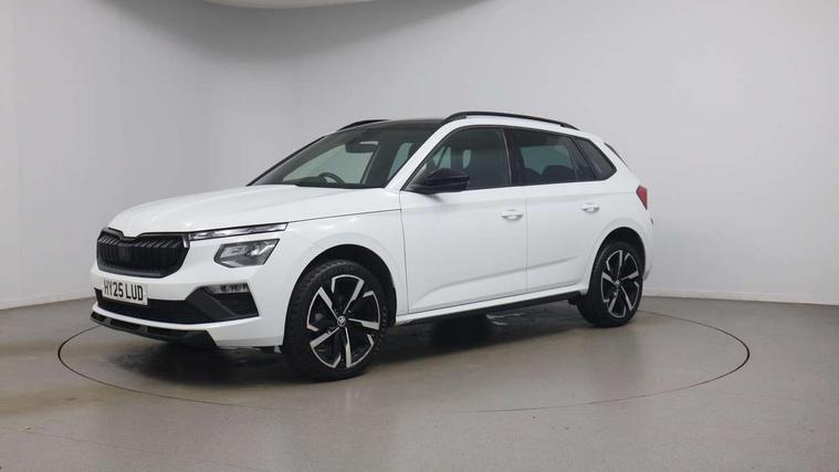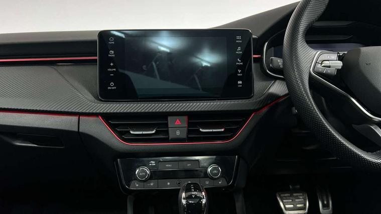 Advanced driver attention and drowsiness monitor, Bluetooth system, E-call, Front assist system, PAS, Rear parking sensors, Rear view camera, Service indicator, Speed limiter, Traffic sign recognition, Virtual cockpit with 10.25" display, Voice control system, Wireless smartlink, 4 USB C ports, 8 Speakers, 9.2" Skoda navigation display, DAB Digital radio, Auto dimming rear view mirror, Automatic headlight control with coming home and leaving home feature, Black door mirrors, Black radiator grille, Black rear diffuser, Black roof spoiler, Body colour bumpers, Body colour door handles, Boot lettering in black, Extended tailgate glass, Fixed panoramic sunroof with black roof rails, Front and rear electric windows, Heated rear window, LED daytime running lights, LED high beam, LED low beam, LED third brake light, Light sensors, Monte carlo plaque, Privacy glass, Rear side wing doors, Rear wiper, Ticket holder inside windscreen, 12V socket in luggage compartment, 3 seat bench in 2nd row, Aluminium pedals, Ambient lighting in white/red, Art leather carbon decor inserts, Art leather carbon door inserts, Black roof lining, Cargo elements, Chrome inner door handles, Driver and passenger sun visors with vanity mirror, Dual zone climate control, Front and rear roof lights, Front centre armrest, Front head restraints, Glove compartment with illumination, Height adjustable driver seat, Height adjustable front passenger seat, Ice scraper, Inner circulation control with pollen filter, ISOFIX on front passenger seat, Isofix preparation for back seats, Leather gearknob and handbrake lever, Manual lumbar support for front seats, Monte Carlo cloth upholstery, Net package and top tether hooks in boot space, Net under rear shelf, Pocket on the back of both front seats include mobile phone pockets, Rake/reach adjustable steering wheel, Reading lights, Rear centre armrests, Red hotstamping, Single front passenger seat, Sports seats, Textile floor mats, Third rear headrest, Top tether for front passenger seat, Umbrella in driver's door, Light and view plus package - Kamiq, 3x3 point rear seatbelts, Airbags - driver and front passenger, Disc brakes, ESP, Extended and predictive pedestrian/cyclist protection, Front passenger airbag deactivation switch, Front side airbags with curtain airbags, Hill hold control, Manual leather parking brake, Manual rear child locks, One tone horn, Seatbelt reminder for driver an co-driver, Traction control, Tyre pressure monitor, Anti-theft alarm system with interior monitoring, backup horn, towing protection and remote central locking with SAFE system, Anti-theft wheel bolts, Electronic engine immobilizer, 18" Ursa black diamond cut alloy wheels,