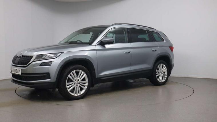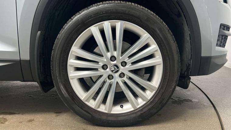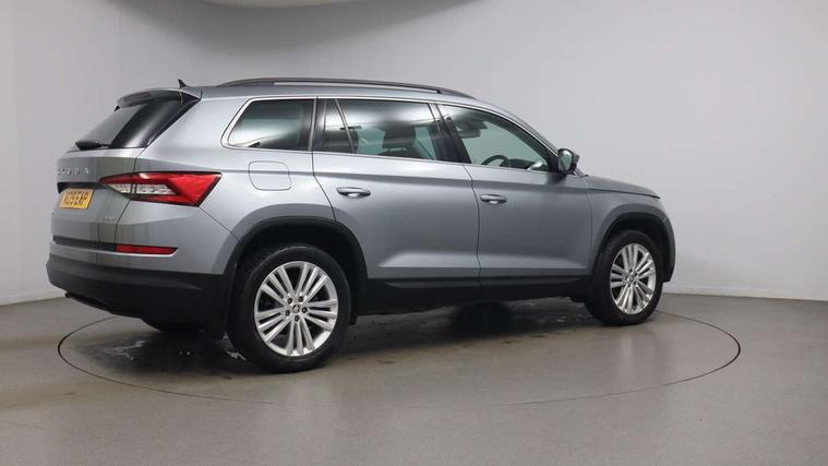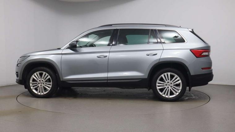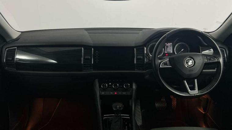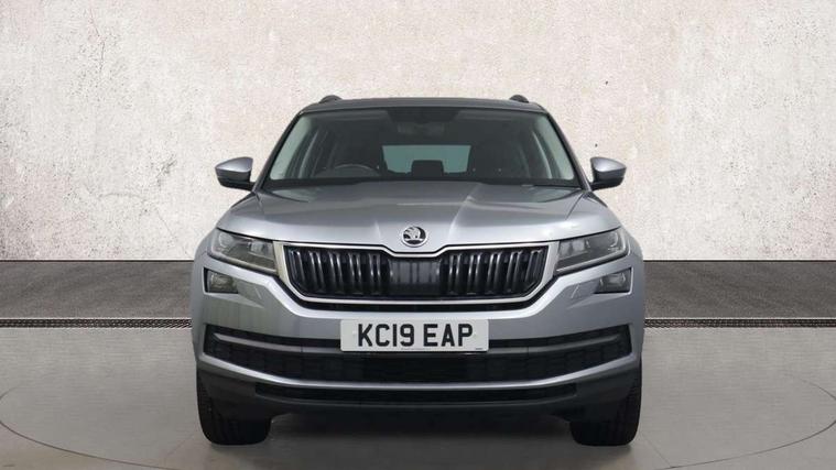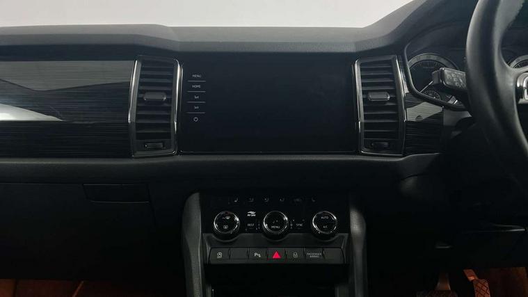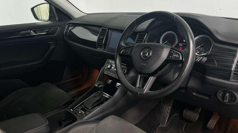 Bluetooth system, Colour multifunction trip computer, Columbus satellite navigation with 9.2" touch screen and integrated Wi-Fi + WLAN, Digital voice enhancement, ECO Stop/start function, Exterior temperature indicator, SmartLink plus, Speed limiter, Tailgate unlocking from outside, Bolero Radio, DAB Digital radio, DVD System, USB and SD card connectivity, Aero front windscreen wipers with intermittent function, Aero rear window wiper, Auto dimming rear view mirror, Automatic activation of hazard warning lights, Black wheel arch surrounds, Body colour bumpers, Body colour door mirrors and handles, Electric front and rear windows, Electrically adjustable heated foldable and auto dimming door mirrors with boarding spots, Front and Rear door steps, Full LED Headlights with adaptive front light system and LED daytime running lights, Headlight washers, Heated rear window, Invisible tailpipe, LED front fog lights with static cornering light function, LED rear fog light, LED third brake light in rear spoiler, Light assistant (coming home/tunnel light), Radiator grille frame in matt black with chrome strip, Rain and light sensors, Rear spoiler, Safety reflectors on front and rear doors, Sunset privacy glass, Tinted windows, 12V socket in boot, 2 rails with 2 hooks including 4 hooks for net programme, 4 foldable roof handles with rear coat hooks, 4 lashing points on luggage floor, 60:40 foldable rear seat with sliding adjustment and backrest angle adjustment, Bottle holders in door panel in the 1.5 litre front and 1 litre rear, Cargo storage compartments, Centre console with open storage box, cup holder and 12V socket, Chrome headlight control button, Chrome interior door handles, Coat hooks on B pillar, Covered storage compartment on driver side, Drawers under driver and front passenger seats, Front centre armrest with storage compartment, Front/rear courtesy lights, Gear shift lever with chrome frame and black gloss insert, Height adjustable front headrests, Illuminated and cooled glovebox, Illuminated luggage compartment, Isofix system on outer rear seats, Manually adjustable steering column, Net programme in boot (1x horizontal Net, 2x vertical Nets), Overhead glasses storage compartment, Passenger side net compartment on centre console, Pollen filter, Rear centre armrest with cupholders, Removable lamp in luggage compartment, Roll up luggage compartment cover with intermediate position, Small Bags on the inner sides of the front backrests, Small pockets on the inner side of the front backrests, Storage compartment in lower middle Instrument panel, illuminated with closing, Three rear height adjustable headrests, Ticket holder on A Pillar, Umbrella in door panel, Chrome pack - Kodiaq, Auto door release and activation of warning lights in the event of an accident, Driver and passenger airbags, Electronic parking brake with hill hold control, Emergency rear braking signal, ESC (incl. ABS+MSR+ASR+EDS+HBA+DSR+RBS+MKB), Front and rear three point safety belt on all seats, Front assist includes AEB city/urban, Front side airbags, Fuel cut off safety device, Head and knee airbags, Passenger airbag deactivate switch, Rear disc brakes, Safety vest holder in door, Seat belt reminder for all seats, Two tone horn, Tyre pressure monitor, Warning lights in front doors, Alarm with interior monitoring and tilt sensor with safe function, Immobiliser, Keyless entry and start system (KESSY), Remote central locking,