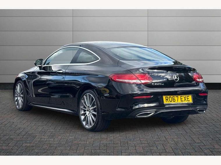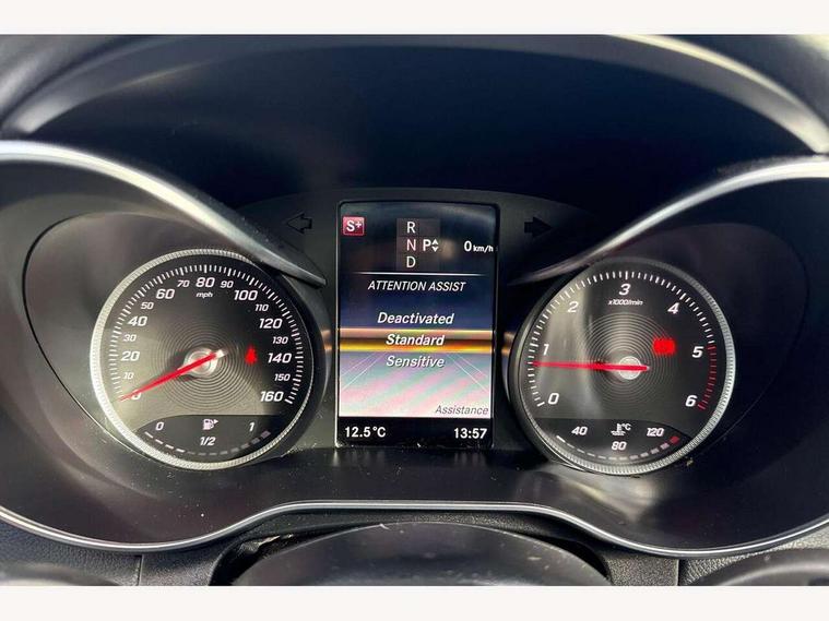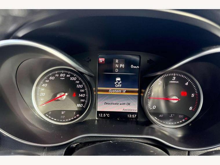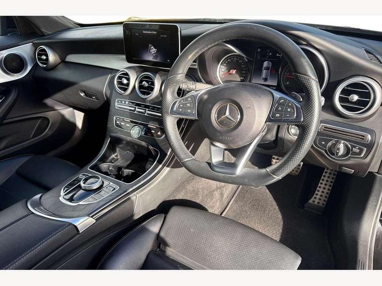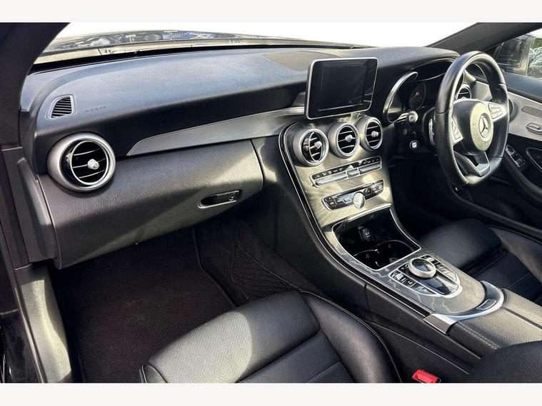 Active park assist with parktronic system, Attention assist, Bluetooth interface for hands free telephone, Collision prevention assist plus, DYNAMIC SELECT with a choice of driving modes (ECO, Comfort, Sport, Sport+ and Individual), Garmin Map Pilot navigation system with SD card, touchpad and voice control, Instrument cluster with 5.5-inch TFT multi-function display, Multi function trip computer, Outside temperature gauge, Remote boot release, Service indicator (ASSYST), Speed sensitive steering, Diesel particulate filter, 2 USB ports, Audio 20 radio/CD with 7" colour display with multi touch keypad, DAB digital radio module, Frontbass loudspeakers, Media interface, Steering column mounted multifunction controls, Adaptive brake lights, AMG front, rear apron and side skirts, Auto dimming driver's door mirror, Auto dimming rear view mirror, Body coloured bumpers, Chrome grille surround, Door sill plates with "Mercedes-Benz" lettering, Electric adjustable/heated/folding door mirrors, Electric front sliding and fixed rear panoramic glass sunroof, Electric windows one touch open/close, Green tinted glass, Heated windscreen washers, LED daytime running lights, LED tail lights, Radiator grille with integral star, Rain sensor windscreen wipers, Side windows surround in polished aluminium, Twin chrome exhaust tailpipes, 2 cupholders in front centre console, 2 rear head restraints, 3 spoke flat bottom multi-function leather AMG steering wheel, 4-way lumbar support for drivers seat, 4-way lumbar support for front passenger seat, 40:20:40 split folding rear seats, Advanced multicolour ambient light and LED interior light, AMG floormats, Auto dual-zone climate control system, Auto Mercedes-Benz child seat recognition sensor, Door courtesy lamps, Electric front seats, Electric height adjustable front seats, Front centre armrest with storage compartment, Front footwell illumination, Heated front seats, Height/reach adjustable steering column, Illuminated front/rear door handle recesses, Illuminated glovebox, Isofix rear child seat fastenings, LED reading lights, Sports pedals with stainless steel surfaces and rubber studs, Sports seats with integrated headrests, Steering wheel gearshift paddles, Sunvisors with illuminated vanity mirrors, Memory pack - C Class, Seat comfort pack - C Class, Stowage space pack - C Class, 2 rear seatbelts, ABS + BAS, Active bonnet, Adaptive brake system, Brake calipers with Mercedes-Benz lettering + perforated brake discs, Drivers knee airbag, Drivers pelvis airbag, Dual stage driver/passenger airbags, Electronic parking brake, ESP with ASR, Front side airbags, Hill hold control, Hill start assist, Tyre pressure monitoring system, Warning triangle and first aid kit, Window airbags, Alarm system/interior protection/immobiliser, Chrome surround in electric key, Keyless entry and keyless start, Remote central locking,