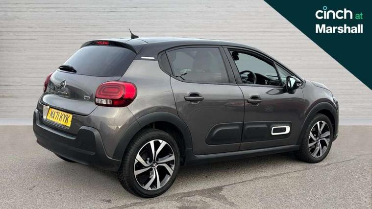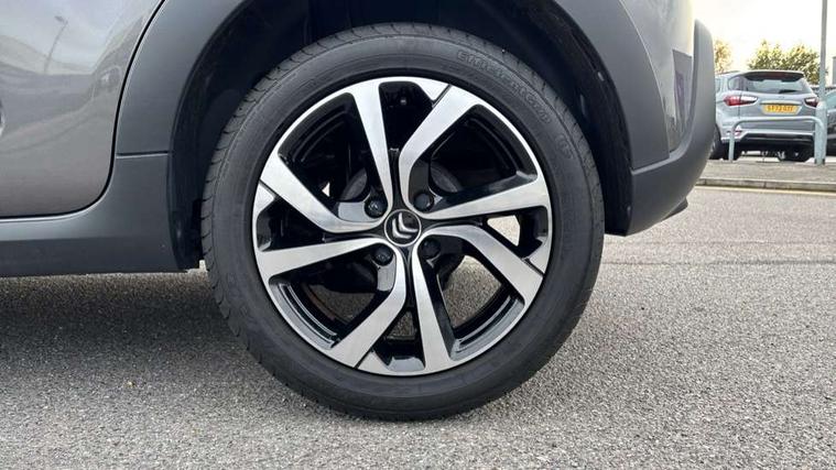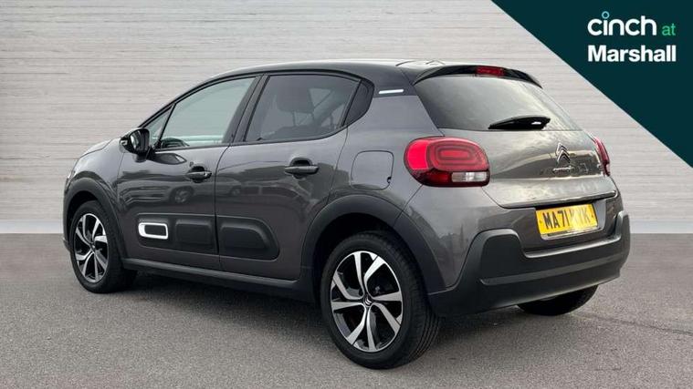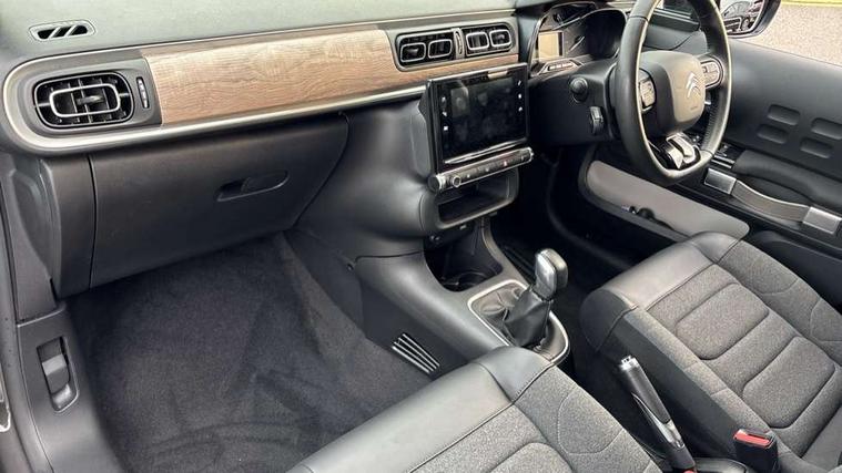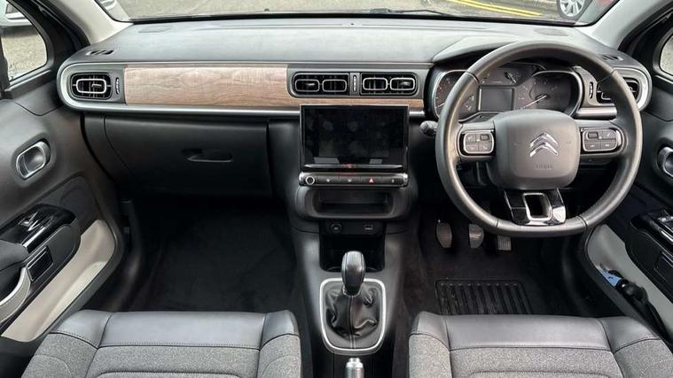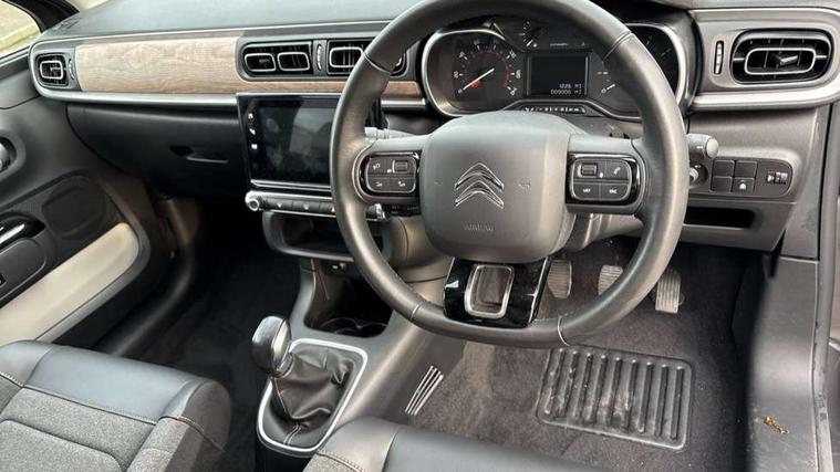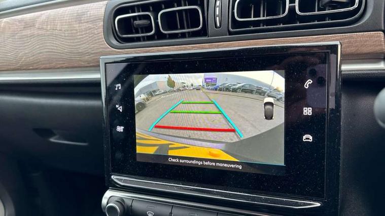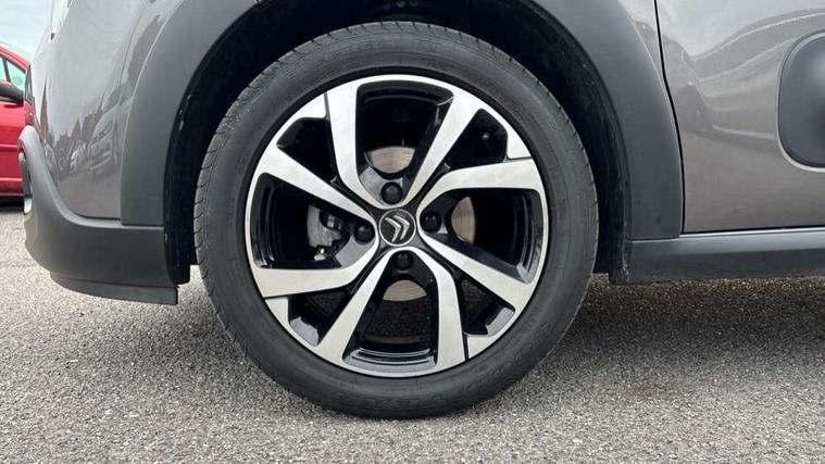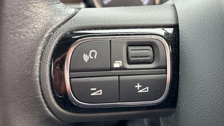 Citroen connect box emergency and assistance system, Coffee Break Alert, Cruise control + speed limiter, Exterior temperature display, Multi function trip computer, Rear parking sensors, Reversing camera, Satin chrome surround instrument cluster with white LCD and analogue gauges, Variable assistance power steering, USB connection, 3D rear light signature, Automatic activation of hazard warning lights, Body colour bumpers, Body colour door handles, Chrome decoration on front face, under chevrons and around daytime running lights, Citroen illuminated signature in LED headlights and LED daytime running lights, Dark tinted tailgate and rear side windows, Electric folding and heated door mirrors, Electrochrome auto dimming interior rear view mirror, Fog lights integrated into front bumper, Front sequential electric windows with one-touch open/close and anti-pinch system, Gloss black finish B pillar, LED Headlights, Rear sequential electric windows with one-touch open/close and anti-pinch system, Rear windscreen wiper with intermittent mode linked to vehicle speed and automatic activation when reverse gear selected, Roof colour rear view mirror caps, 1/3 to 2/3 split folding rear seat, 12V socket, Automatic air conditioning, Boot light, Cloth/leather effect upholstery, Driver and passenger's sun visor with courtesy mirror, Driver's central armrest, Driver's seat height adjustment, Front lighting panel with map reading lights, Front seats adjustable with forward back slide and adjustable backrest, Height adjustable front head restraints, Height/reach adjust steering wheel, ISOFIX mounting on outer rear seats with top tether and labels indicating fixing points, Leather steering wheel with gloss black + satin chrome elements and audio/telephone controls, Leather trimmed gear lever with leather effect gaiter and overstitching, Map pockets in back of driver and front passenger seats, Parcel shelf, Seatbelt unfastened on the move audible and visual alert for front and rear seats, Storage space under touchscreen with rubber mat, Three rear seats with head restraints, Upholstered armrest in front and rear doors, Safety pack 1 - C3, Safety Pack 2 - C3 Shine Plus, Shine Technology Pack - C3 Shine Plus, Visibility pack with automatic lights - C3, ABS with Electronic brakeforce distribution and Emergency braking assistance, Driver and front passenger seatbelts with pyrotechnic pretensioners and force limiters, Driver's airbag, Electric child locks, ESP with anti skid system, Front passenger airbag, Front passenger airbag deactivation, Front side airbags + front/rear curtain airbags, Hill start assist, Manual parking brake with leather handle and chrome finish button, Mono-tone horn, Outer rear seats with pretensioners and force limiters, Three rear 3-point seatbelts, Tyre pressure monitoring system, Anti theft alarm, Automatic door and boot locking when moving off with automatic unlocking in case of impact, Central locking with locked indicator and interior one touch lock button, Immobiliser, Remote control central locking with two plip keys, 17" Vector diamond cut alloy wheels, Tyre puncture repair kit,