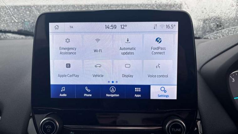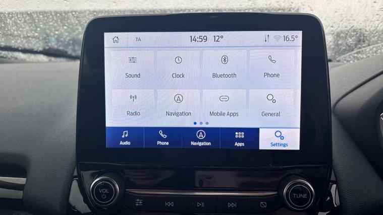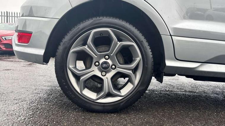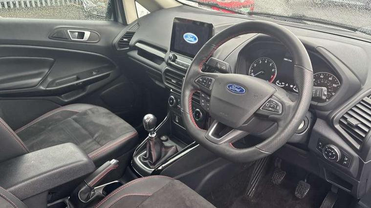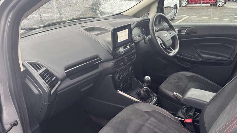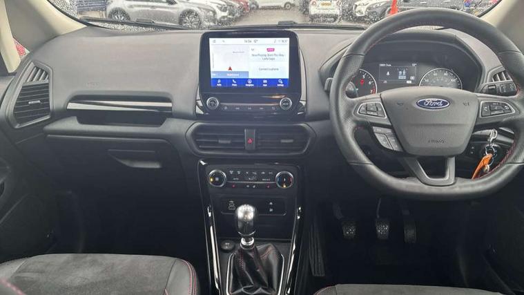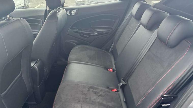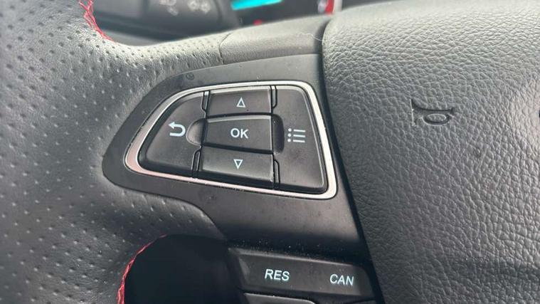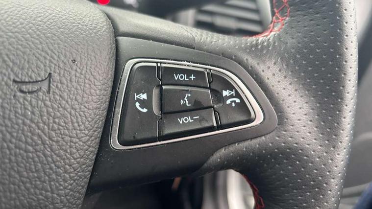 Cruise control, e-Call (emergency call), Easy fuel capless refuelling system, Ford SYNC 3 nav system with DAB radio, 8" screen, emergency assistance, Apple car play/Android auto, 2x USB, 6 speakers, Ford pass connect, Intelligent speed limiter, PAS, Rear parking sensors, Rear view camera, Traffic sign recognition, Trip computer, Sports suspension, Steering wheel mounted audio controls, Auto dimming rear view mirror, Automatic front wipers, Automatic headlights, Black roof rails, Body colour door handles, Body coloured bumpers, Chrome lower window surround, Electrically adjustable and heated door mirrors, Front fog lights, Front grille bars and surround in black, Headlight levelling control, Large rear roof spoiler, LED day running lights, LED third brake light, Power front and rear windows, Puddle lights, Quick-clear heated windscreen, Rear side wing doors, Rear wiper, ST Line body styling kit - Black headlamp bezel, front and rear sport bumpers, body colour lower door claddings, 12V socket in front and rear, 3 seat bench in 2nd row, 60/40 split rear seats, Ambient lighting, Centre console with sliding front armrest, Cooled glovebox, Courtesy lights with map reading light, Driver seat height/lumbar adjust, Driver's side glovebox, Driver/passenger sunvisors and lidded vanity mirrors, EATC - Electronic Auto Temperature control, Folding grab handles, Front head restraints, Front seat back map pockets, Illuminated glovebox, Illuminated luggage compartment, Isofix system on outer rear seats, Luggage compartment carpet, Neosuede/Partial sensico leather upholstery, Overhead console with sunglasses holder, Rake adjustable rear seats, Reach + rake adjustable steering column, Rear headrests, Sensico trimmed steering wheel, handbrake and gearshift gaiter with red stitching, Single front passenger seat, ST-Line Front floor mats with red stitching, Stainless steel sports pedals, Storage drawers under front seats, Tie down hooks, Variable boot floor, 3x3 point rear seatbelts, ABS, Autonomous emergency braking, Child locks on rear doors, Curtain airbags, Driver airbag, Drivers knee airbag, Electronic Stability Programme with hill launch assist, Front passenger airbag deactivation, Front side airbags, Passenger airbag, Pre collision assist system with AEB, Seatbelt reminder for driver and front passenger, Traction control, Tyre pressure monitoring system, Immobiliser, MyKey system, Remote central locking, Thatcham 1 volume sensing alarm, Low rolling resistance tyres, Tyre inflation kit,