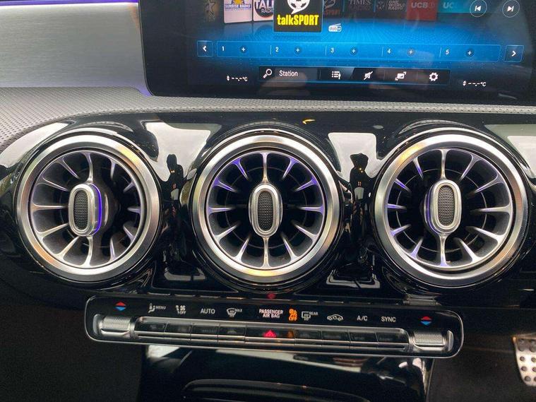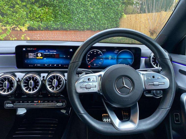10.25 inch Instrument display with digital cockpit, 10.25 inch touchscreen central media display, Attention assist - Monitors steering behaviour and long journey fatigue, Bluetooth connection, Car wash mode, DYNAMIC SELECT with a choice of driving modes (ECO, Comfort, Sport and Individual), ECO start/stop function, Fluid level warning indicator for fuel, oil, coolant and washer fluid, Hard-disk navigation, Hey Mercedes Voice activation, Lamp failure indicator, MBUX augmented reality for navigation, Mercedes me connect including emergency call system, accident recovery, breakdown and maintenance management, Outside temperature gauge, Owners manual and service booklet in English, Pre-installation for Vehicle Monitoring, Pre-installation for Vehicle Setup, Pre-installation of private car share, Preinstallation for Mercedes Benz link, Radio aerial integrated into front and rear windshields, Service indicator (ASSYST), Smartphone integration with Apple CarPlay and Android auto, Traffic sign assist, Trip computer in multifunction display with current consumption indicator, Wireless charging, 7G-DCT 7 speed automatic transmission, Lowered comfort suspension, Rear axle multi-link, DAB digital radio tuner, MBUX multimedia system with DAB digital radio and touchpad including satellite navigation, Mercedes Benz advanced sound system (225 W) with 10 speakers, 1 central speaker, speakers on doors, a tweeter on door, one sub woofer + boost amplifier, USB (type C) ports (2) in stowage compartment and 1 in front of centre console, Adaptive brake lights, AMG body styling with AMG front apron and rear apron and visible exhaust tailpipe in chrome trim elements, AMG bodystyling side skirts, Body colour bumpers, Body colour door handles, Chrome beltline strips, Chrome weather strip, Diamond radiator grille pins in chrome with silver painted louvres and chrome insert, Electric panoramic sliding sunroof, Electric windows, Electrically adjustable and heated door mirrors with integrated LED indicators, Exhaust system with 2 Visible tailpipe trim elements and rear apron with trim in chrome, Headlamp assist automatic headlamp activation, Heated glass rear windscreen + timer control, High level LED third brake light, Integrated LED daytime running lights, Interior mirror with black reading lamps and frameless, LED tail lamp, Multibeam LED headlamps with adaptive highbeam assist plus, Privacy glass with dark tinting on rear side windows and rear window, Rain sensing windscreen wipers with two sensitivity settings, Rear fog lamp, Window line trim strip in chrome, 3 spoke flattened bottom nappa leather multifunction steering wheel with perforated leather in grip area, 40:20:40 split folding rear seat backrests, Air conditioning - Two zone thermotronic luxury automatic climate control with display, Air vents with surround in silver chrome, Automatic child seat recognition sensor, Black roof lining, Brushed stainless steel sports pedals with rubber studs, Electrically adjustable front memory seats including lumbar support, Floor mats with stitched AMG lettering, Front centre armrest with stowage, Galvanished gear shift paddles on steering wheel, Heated front seats, Illuminated glove compartment stowage, Illuminated Mercedes benz door sills with Mercedes Benz lettering, Interior lighting - 64 colour Ambient lighting, Luggage net on driver/front passenger seat backrest, Manually height and reach adjustable steering column, Rear armrest with two integral cup holders for drinks, Rear head restraints, Sport seats with fixed head restraints, Stowage compartment in centre console with retractable cover, Sunvisors with illuminated vanity mirrors, Touchpad on center console, Twin front cupholders, Two outer rear seat isofix and top tether child seat fixing points, Keyless go pack - CLA, Light and sight pack - CLA, Mirror pack - CLA, Parking package - CLA, Seat comfort pack - CLA, Active bonnet pedestrain safety measure which detects an impact and raises bonnet by 65mm, Adaptive brake assist with hold function and hill start assist, Anti-lock braking system (ABS), Black seat belts, Bonnet with power domes, Brake pad wear warning indicator, Childproof locks manually operated for rear doors and electrically operated for rear power windows, Crash responsive emergency lighting, Driver and front passenger head and sidebags, Driver and front passenger windowbags, Drivers knee airbag, Dual stage driver and front passenger airbags, Electric parking brake, Electronic stability programme with acceleration skid control, ESP curve dynamic assist, Front and rear seatbelt reminder, Front passenger seat occupancy sensor, Three point rear seat belts, Tyre pressure monitoring system, Warning triangle and first aid kit, Remote central locking and crash sensor with emergency opening function, Urban guard vehicle protection system with immobiliser and interior protection, Light aluminium with longitudinal grain interior trim, 18" 5 twin spoke design alloy wheels painted in titanium grey with high sheen finish, Summer tyres, Tirefit tyre sealant kit,