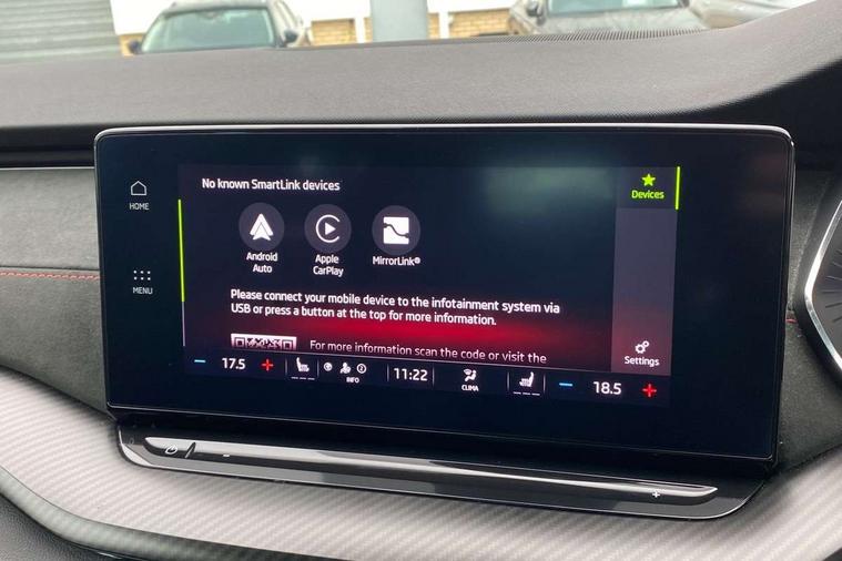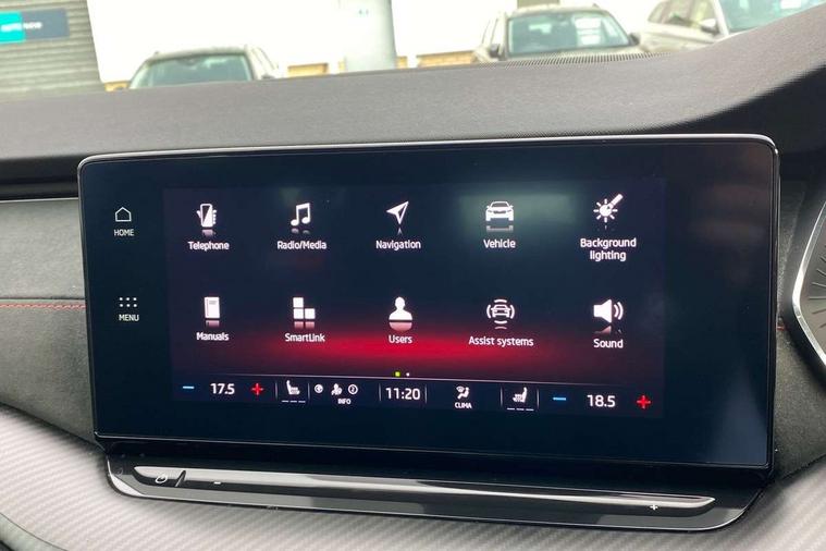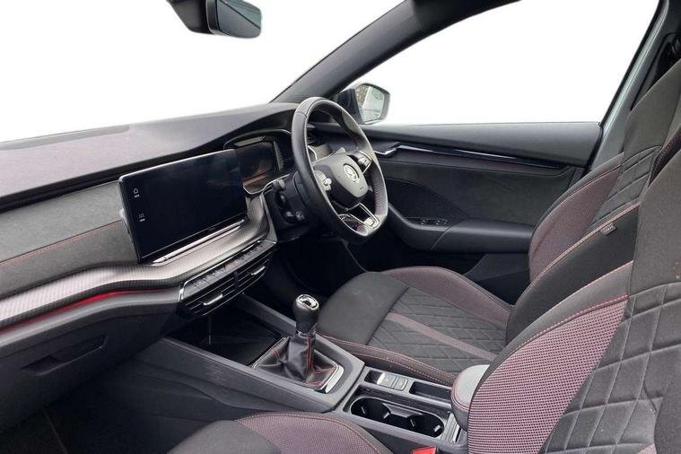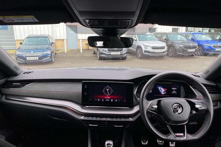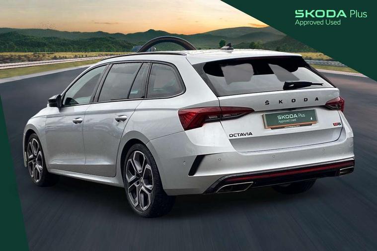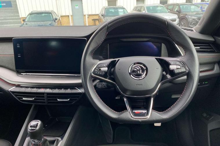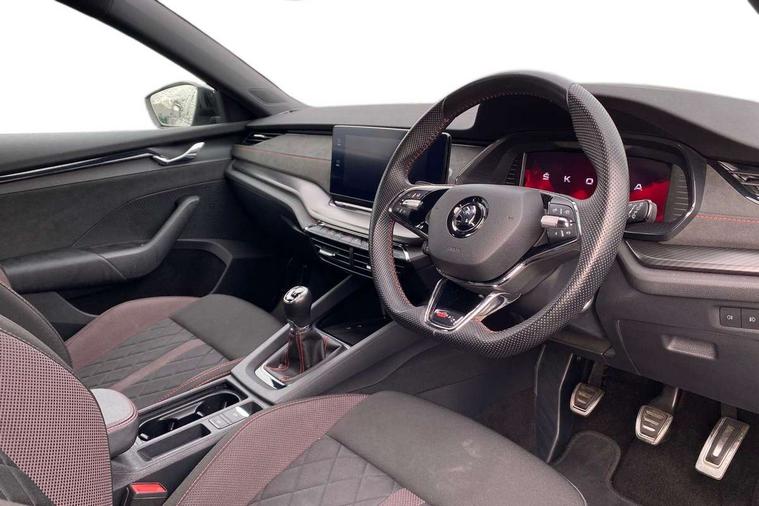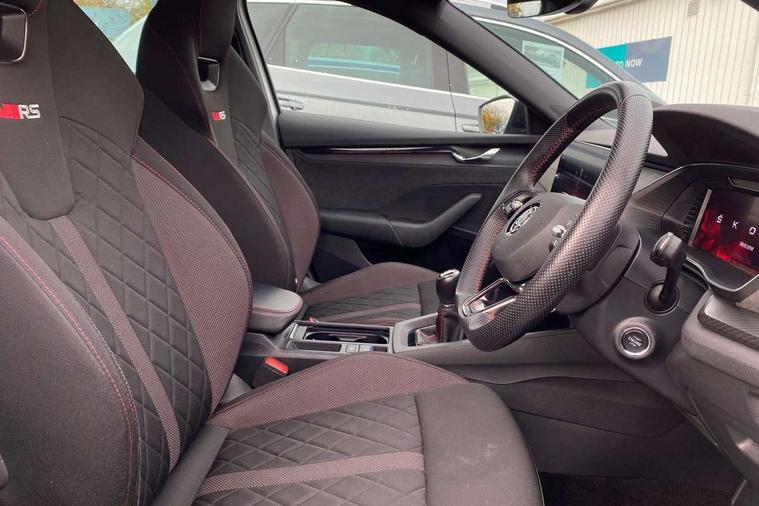1x USB Type C port in rear view mirror (charging only), 2x USB Type C ports in rear of front centre armrest (charging only), Bluetooth system, Columbus satellite navigation with 10" touchscreen display, Front assist system, Progressive dynamic steering, Smartlink (includes android auto and mirrorlink), Speed limiter, Turn Assist, Virtual Cockpit - 10.25" digital display, Voice control system, Wireless SmartLink for Apple Car Play, Electronically controlled limited slip differential, Front and rear stabilizers, 2x USB Type C ports (for charging and data transfer), DAB Digital radio, Aero front windscreen wipers with intermittent function, Auto dimming rear view mirror, Black roof rails, Body colour door handles, Chrome exhaust tailpipes, Door sills with vRS logo, Electric front and rear windows, Exterior gloss black sports styling including front grille, side strip, window surrounds, door mirror and badging, Full LED Matrix headlights with AFS and cornering front fog lights, Headlight washers, Heated rear windscreen, High level third brake light, Ice scraper in fuel cap, LED daytime running lights, Rain and light sensors, Rear fog light on one side, Rear privacy glass, Rear spoiler, Rear window wiper, 3 rear headrests, 4 foldable roof handles, Aluminium pedals, Black headlining, Black microsuede padded dash panel with red contrast stitching, Chrome inner door handles, Front centre armrest, Front head restraints, Heated front seats, Illuminated air conditioned glovebox, Leather trimmed gearshift lever, Luggage compartment lighting with two side lamps, Mechanical rear seat release, Parcel shelf - rolling, Sunglasses storage, Textile floor mat set, Three spoke leather sports multifunction steering wheel, Ticket holder, Umbrella in door panel, Unsplit rear bench seat and split folding backrest, LED interior light pack - Octavia, 3 point front/outer rear seatbelts+pre-tensioners, Alarm with interior monitoring, tilt sensor and back up horn, Automatic door unlocking in case of crash, Automatic fuel cut off in case of crash, Automatic warning lights in case of emergency braking, Curtain airbags and front side airbags, Driver and front passenger airbags, Drivers knee airbag, Electronic parking brake, Emergency call and proactive services, ESC including ABS, EBV, MSR, ASR, EDS, HBA, DSR, Front and rear disc brakes, Hill hold control, Hill start assist, ISOFIX on front passenger seat and outer rear seats, Passenger airbag deactivate switch, Red brake calipers, Two tone horn, Tyre pressure monitor, Visual and acoustic seat belt reminder, Warning reflectors in front door, Door locks with immobiliser, Keyless entry and start/stop including rear doors, Remote central locking, Carbon optic decorative inserts, Gloss black air vent surrounds, 19" Altair anthracite alloy wheels,