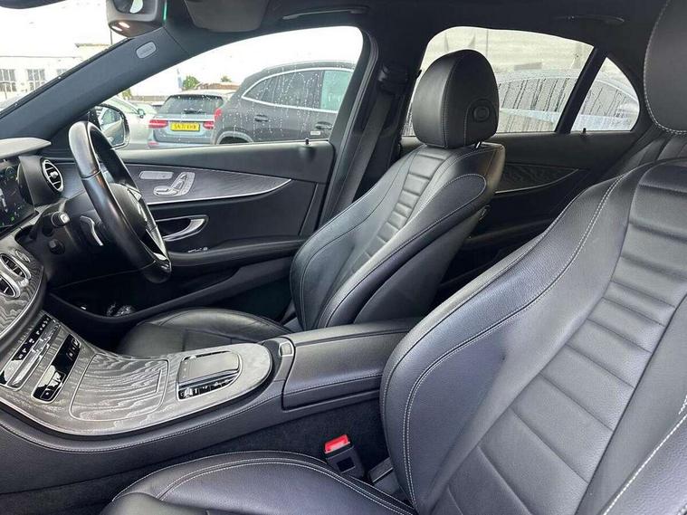 Attention assist, Brake wear warning display, Cockpit display 10.25" widescreen digital instrument cluster, Direct steer speed sensitive steering, DYNAMIC SELECT with a choice of driving modes (ECO, Comfort, Sport, Sport+ and Individual), ECO start/stop function, Emergency services call system, High resolution 10.25" multimedia colour display, MBUX voice control activated by keywords "Hey Mercedes", Mercedes connect me, Outside temperature display, Remote boot release, Service indicator (ASSYST), Smartphone integration via Android Auto/Apple CarPlay, Media Interface, USB and Bluetooth interface, Status display for rear seat belts in instrument cluster, Touchpad with controller, Traffic sign assist, Trip computer in multifunction display showing current fuel consumption, Wireless charging, 25 litre AdBlue tank, 66 litre fuel tank, 9G TRONIC 9 speed automatic transmission, Agility control sports suspension with selective damping system and lowered by 15mm, Diesel particulate filter, Incorrect fuelling protection, 2 USB ports in centre console, 2 USB ports in the rear, Burmester surround sound system with 13 speakers and a 9 channel amplifier with total output of 590 watts, MBUX multimedia system with DAB digital radio and touchpad including satellite navigation, 3rd brake light, Adaptive brake lights, Aerial integrated in rear window, AMG bodystyling front and rear aprons and side sill panels, Electric windows with one touch opening/closing and obstruction sensors, Electrically adjustable and heated door mirrors, Front apron in high gloss black, High gloss black exterior mirror housing, High gloss black rear bumper with chrome trim, Illuminated front door sill panels with Mercedes-Benz lettering, LED High Performance headlamps including integral LED daytime running lamps, LED rear lights, Panoramic electric glass sunroof, Pre-installation for roof rail systems, Privacy glass Includes rear side windows and rear windscreen, Radiator grille with integral star and 2 louvres in high gloss black, Rain sensor with automatic headlight activation, Rear boot, Rear side wing doors, Tail lights, Top surround of side windows in polished aluminium, Visible twin pipe exhaust system integrated into bumper, Waistline trim strip in high gloss black, 3 seat bench in 2nd row, 3 spoke multifunction flat bottom AMG steering wheel with chrome inserts and touch control buttons, trimmed in black nappa leather, 40:20:40 split folding rear bench seat, Artico man-made leather upper dashboard and beltlines with contrast stitching, Automatic child seat recognition sensor, Black door pins, Black roof lining, Central stowage compartment with 12 V socket in centre console, USB socket for use with Android Auto and Apple CarPlay, Courtesy lights in rear grab handles with reading light functionality, Floor mats with AMG lettering, Four way partially front electric seat adjustment, Front centre armrest with stowage compartment, Glasses compartment in overhead control panel, Glove compartment - lockable, air conditioned and illuminated, Head restraints for driver and front passenger (four-way adjustability) and in rear (two-way), Heated front seats, Interior lighting - 64 colour Ambient lighting, ISOFIX child seat attachment points two outer rear seats, Leather upholstery, Seat occupancy sensor for front passenger seat, Single front passenger seat, Sports pedals in brushed stainless steel with black rubber studs, Steering column electrically adjustable for height and reach, Steering wheel multifunction with gearshift paddles, Steering wheel touch control buttons for audio and onboard settings, Sunvisors with illuminated vanity mirrors, THERMOTRONIC automatic climate control system with 3 climate zones, Mirror pack - E Class, Parking package including 360 degree camera - E Class, Seat comfort pack - E Class, Stowage pack - E Class, 3x3 point rear seatbelts, Active bonnet pedestrian safety measure which detects an impact and raises bonnet, Adaptive brake system with HOLD function and brake drying in the wet, Airbags - sidebag for driver and front passenger with combined thorax/pelvis bag, Anti-lock braking system (ABS), Childproof locks manually operated for rear doors and electrically operated for rear power windows, Driver and adaptive front passenger airbags, Drivers knee airbag, Electronic parking brake, Electronic Stability Programme, Hill start assist, Perforated brake discs with Mercedes Benz lettering, Pre-Safe anticipatory safety system, Tyre pressure monitoring system, Warning triangle and first aid kit, Window airbags, Alarm system/interior protection/immobiliser, Central locking with interior switch, automatic locking and crash sensor with emergency opening function, Chrome surround electric key, Keyless entry go starting function, Grey open pore ash wood trim and centre console in grey open pored ash wood, 20" AMG multi spoke light alloy wheels painted in high gloss black with high sheen finsih, Summer tyres, TIREFIT with tyre inflation compressor,