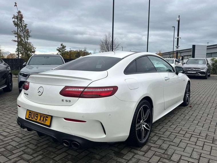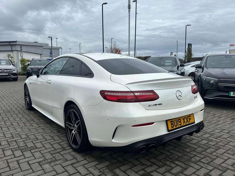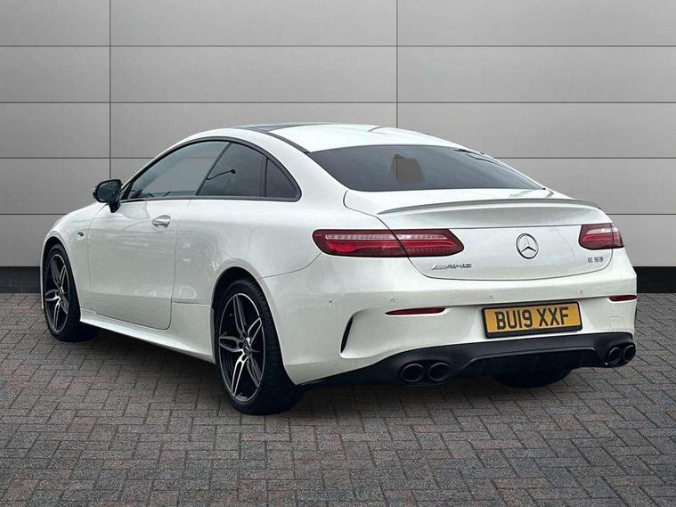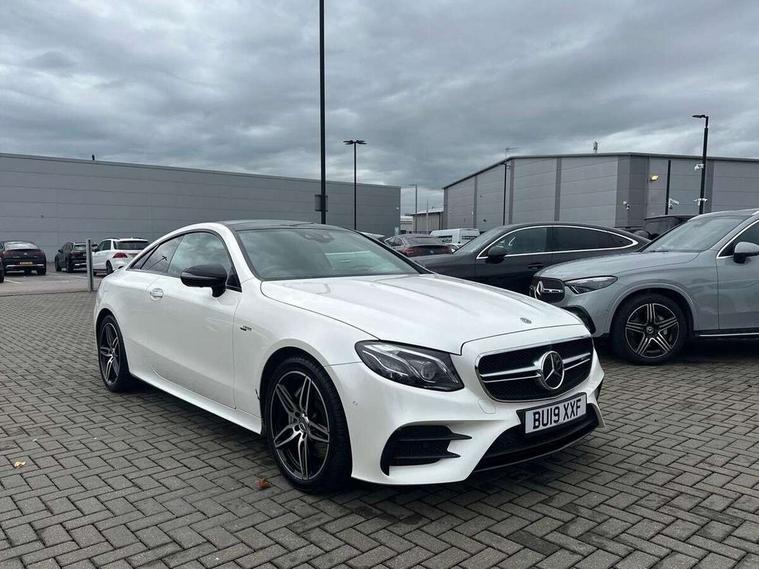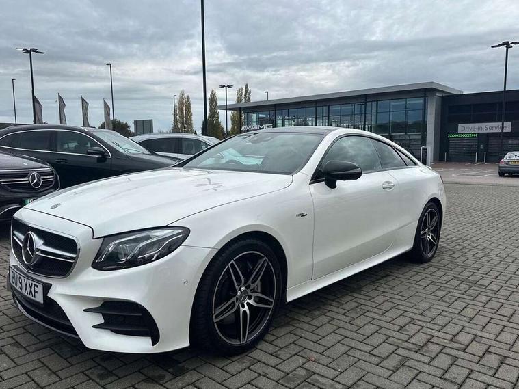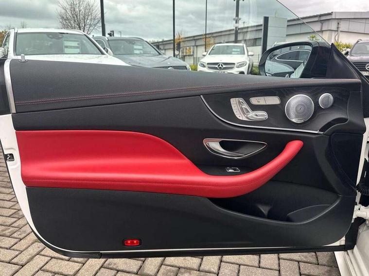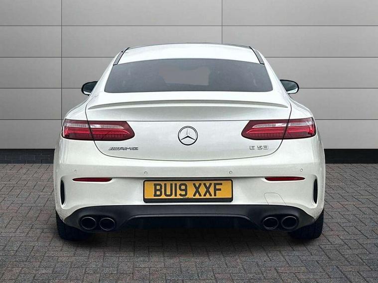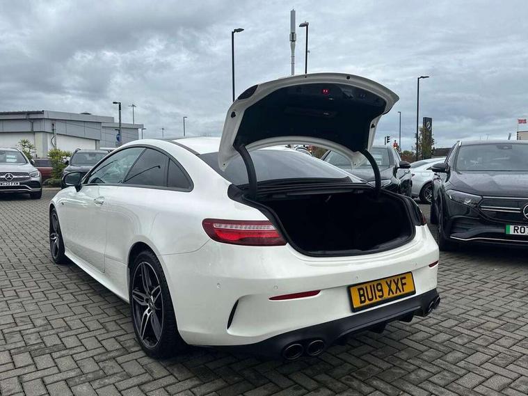 360 degree parking camera, Active parking assist including front and rear parking sensors, AMG DYNAMIC SELECT with a choice of driving modes (ECO, Comfort, sport, sport+ and Individual), Analogue clock, Attention assist, Blind spot assist, Bluetooth interface for hands free telephone, Brake wear warning display, Cockpit display 12.3" widescreen digital instrument cluster, Collision prevention assist plus, COMAND online HDD navigation with Radio/Media interface, linguatronic + smartphone integration/Apple CarPlay/Android Auto and 12.3" Cockpit display, Direct steering, ECO start/stop function, Engine start/stop button, Instrument cluster with AMG menu including RACETIMER and AMG start-up display, Mercedes connect me, Multi function trip computer, Outside temperature display, Remote boot release, Service indicator (ASSYST), Status display for rear seat belts in instrument cluster, Touchpad with control wheel, Traffic sign assist, Wireless charging, 66 litre fuel tank, AMG ride control+ sports suspension based on Air body control air suspension with Adaptive damping system, EQ Boost starter alternator, 2 USB ports in centre console, DAB Digital radio, Smartphone integration via Android Auto/Apple CarPlay, Media Interface, USB and Bluetooth interface and touchpad with control wheel, Adaptive brake lights, AMG bodystyling front and rear aprons, side skirts, AMG boot lid spoiler in body colour, AMG front, rear apron and side skirts, Badging BITURBO 4MATIC+ lettering on front wings, Body colour door handles, Body coloured bumpers, Chrome pins diamond radiator grille with integrated stars, Electric windows with one touch opening/closing and obstruction sensors, Exterior mirrors heated and electronically adjustable, Illuminated front door sill panels with "AMG" lettering, Magic Vision Control heated windscreen wiper system, Multibeam LED Intelligent Light System with Adaptive Highbeam Assist, Pre-installation for roof rail systems, Privacy glass Includes rear side windows and rear windscreen, Rain sensing windscreen wipers, Rear LED lights, Top surround of side windows in polished aluminium, Visible two twin pipe exhaust system integrated into the bumper, 3-spoke flat bottom steering wheel in silver chrome trim with "AMG" lettering, aluminium gearshift paddles, 12 o'clock mark and Touch Control buttons, 4 way adjustable front head restraints and 2 way rear head restraints, 40:20:40 split folding rear seats, Aluminium gear shift paddles, AMG sports seats, Artico man-made leather upper dashboard and beltlines with contrast stitching, Automatic child seat recognition sensor, Automatic two zone climate control, Bag hook in luggage compartment, Belt feeder driver and front passenger seat belt automatically positioned within easier reach, Black roof lining, Central stowage compartment with USB socket for use with Android Auto and Apple CarPlay, Centre armrest and door handle illumination, Chrome door pins, Easy entry seats, Electric height/reach adjustable steering column, Floor mats with AMG lettering, Front and rear door pockets, Front centre armrest with stowage compartment, Front footwell lights, Glasses compartment in overhead control panel, Glove compartment - lockable, air conditioned and illuminated, Heated front seats, Interior lighting - 64 colour Ambient lighting, Interior rear light/integral reading lights, Isofix rear child seat fastenings, Multi function steering wheel, Nappa leather upholstery, Rear centre armrest with 2 cupholders + storage, Seat occupancy sensor for front passenger seat, Sports pedals in brushed stainless steel with black rubber studs, Steering column electrically adjustable for height and reach, Steering wheel gearshift paddles, Steering wheel touch control buttons for audio and onboard settings, Storage net in luggage compartment, Sunvisors with illuminated vanity mirrors, Twin front cupholders, Memory pack - E Class, Mirror pack - E Class, Stowage pack - E Class, Active bonnet, Active brake assist, Adaptive brake system, Adaptive driver and front passenger airbags, Anti-lock braking system (ABS), Crash sensor (auto door unlocking), Drivers knee airbag, Electric parking brake, Electronic Stability Programme, Front and rear window airbags, Front seatbelt pretensioners, Front side airbags, Head airbags, Hill hold function, Perforated front brake discs and anodised silver brake calipers with "AMG" lettering, Red seat belts, Seatbelt warning, Three point rear seat belts, Tyre pressure monitoring system, Warning triangle and first aid kit, Alarm system/interior protection/immobiliser, Central locking with interior switch, automatic locking and crash sensor with emergency opening function, Chrome surround in electric key, Keyless entry go starting function, Black open pore ash wood, Open pore black ash wood centre console, TIREFIT with tyre inflation compressor,