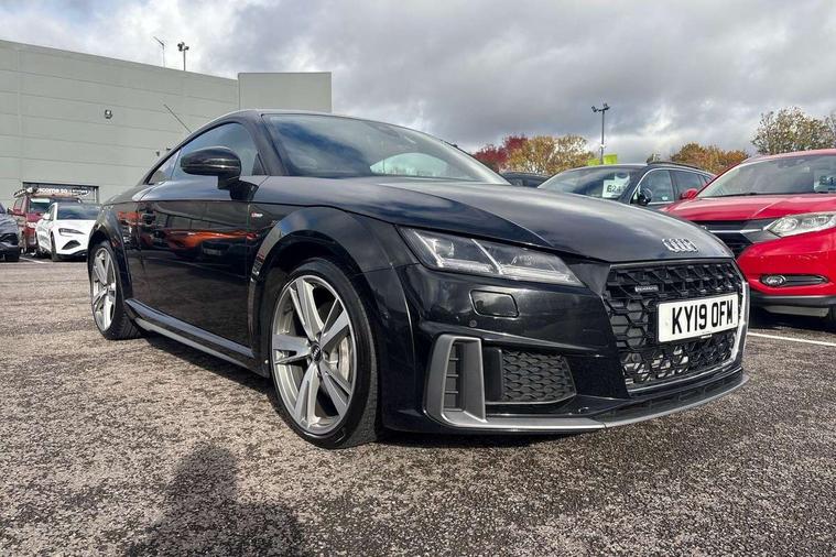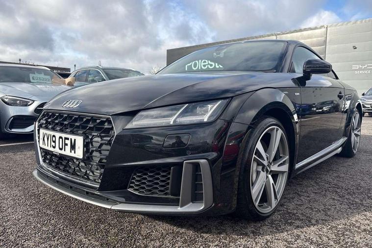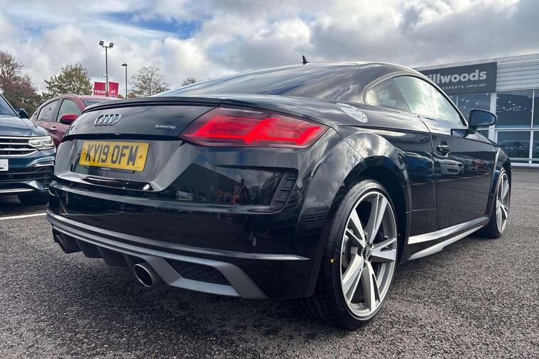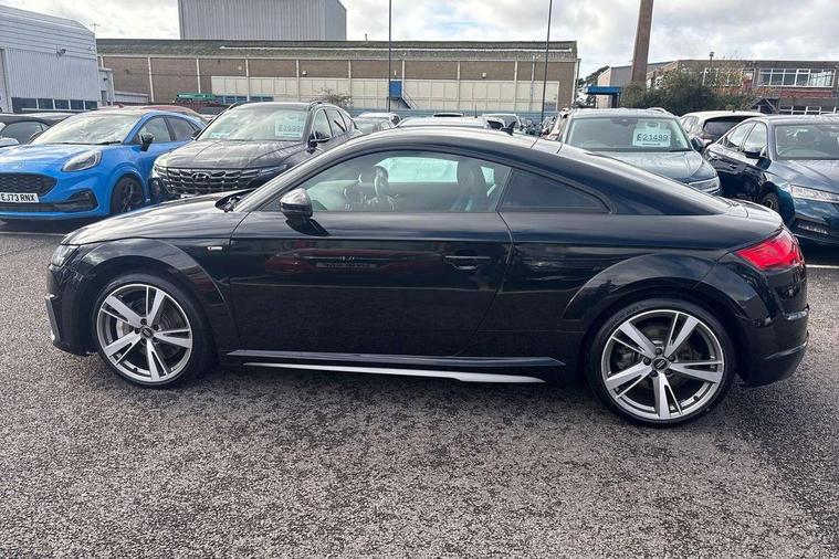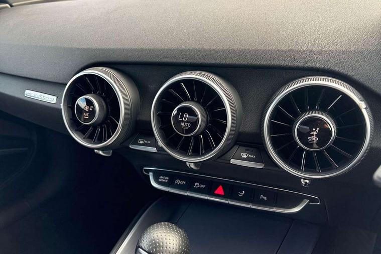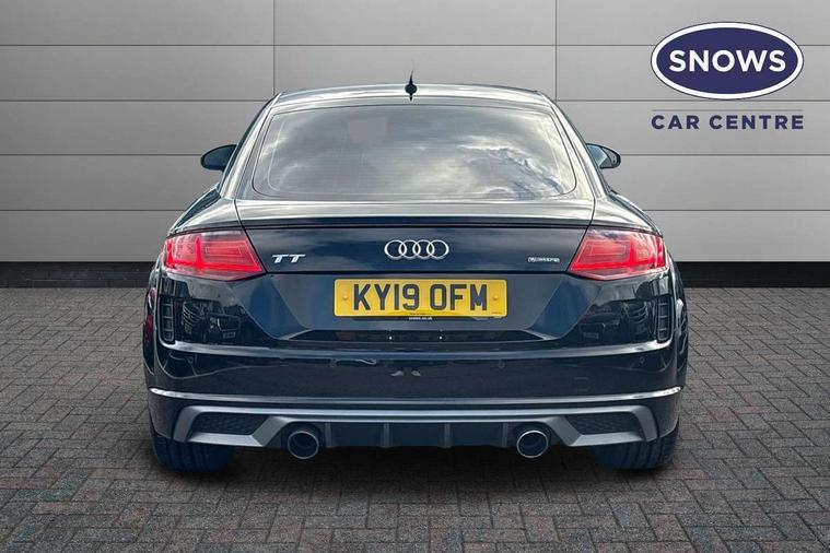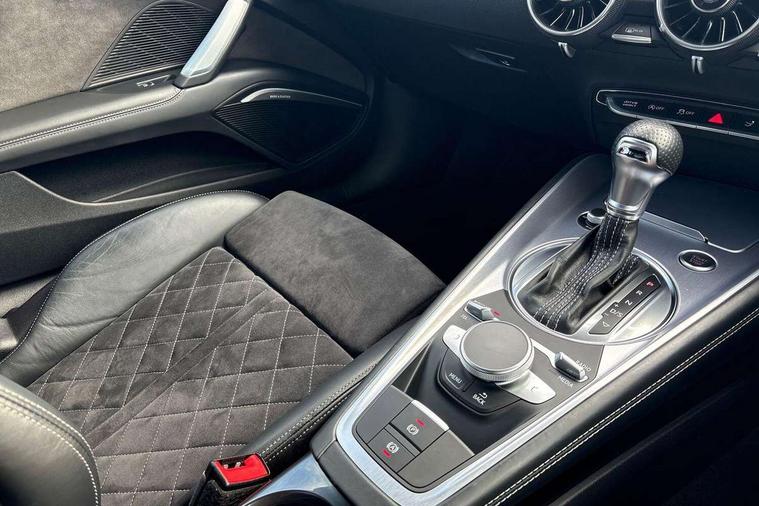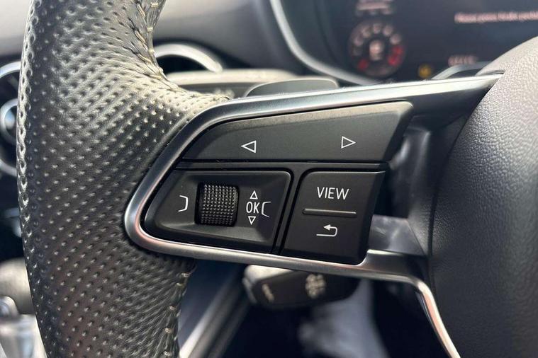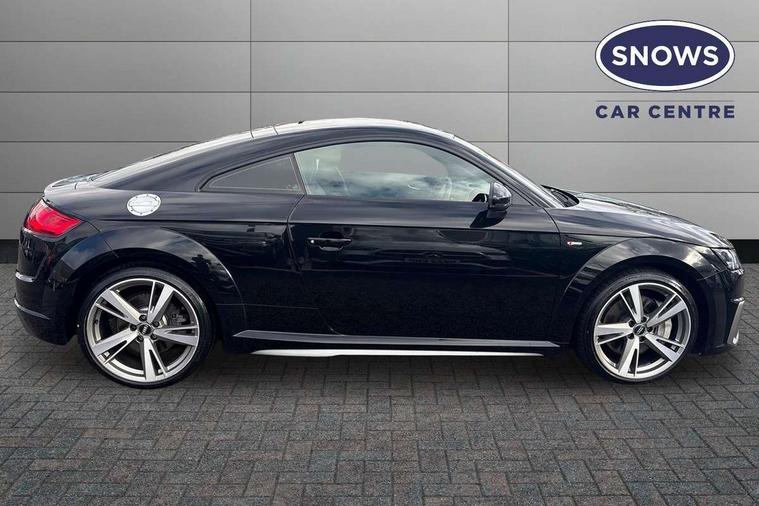 Audi active lane assist, Audi drive select with 4 Pre configured modes, Cruise control + speed limiter, MMI touch panel, Progressive power assisted steering, Rear parking sensors, Service interval indicator, Start/Stop system with energy recuperation, TP memo, 8 speakers, AM/FM radio, Audi music interface, Bluetooth audio streaming, DAB Digital radio, MMI Radio with CD player and SD/XC card slot, Auto dimming rear view mirror, Auto headlight range control, Body colour bumpers, Dynamic rear indicators, Electric front windows, Front fog lights, Green tinted heat insulating glass, Headlight wash system, High gloss black radiator grille, LED daytime running lights, Light and rain sensors, Retractable rear spoiler, S line badges on front wings, S Line body styling, S Line front and rear bumpers, S line rear diffuser with platinum grey insert, S line sill plates, Sunband for windscreen, 12V socket, 3 spoke flat bottomed high multi-function leather sport steering wheel with gearshift paddles, 4 way electric lumbar support for driver and front passenger, Black headlining, Door sill trims with S line logo, Extended aluminium look with stainless steel pedals, Front centre armrest, Front super sports seats, Heated front seats, Height adjustable driver's seat, Height adjustable front head restraints, Height/reach adjust steering wheel, ISOFIX child seat mounting for front passenger seat with airbag deactivation, Perforated leather gearknob, Rear top tether child seat ISOFIX attachment, S Line badge on steering wheel, Split folding rear seat, Tool kit, Top tether anchor plate for isofix child seat, Non smoking pack - TT/TT RS, 3 point front seat belts, ABS, ASR traction control, Brake energy regeneration, Curtain airbags, Driver and front passenger airbag with front passenger airbag deactivation, EDL traction control, Electromechanical parking brake, ESP, First aid kit, Front side airbags, Head airbags, Hill hold assist, Seatbelt warning, Tyre pressure warning, Warning triangle, Anti theft alarm, Anti theft wheel bolts, Immobiliser, Keyless Go, Remote central locking, Matt brushed aluminium inlays, Tyre repair kit,