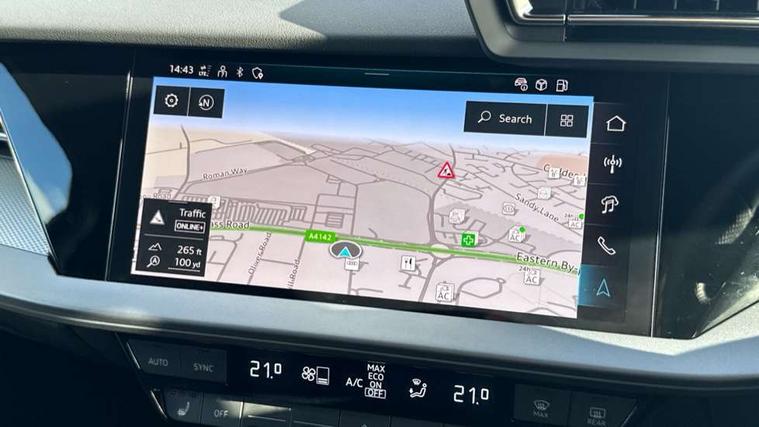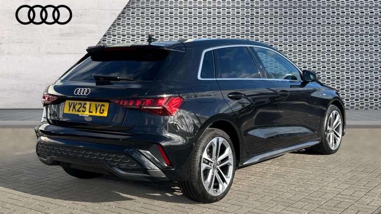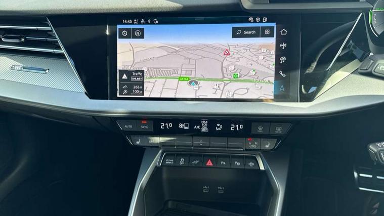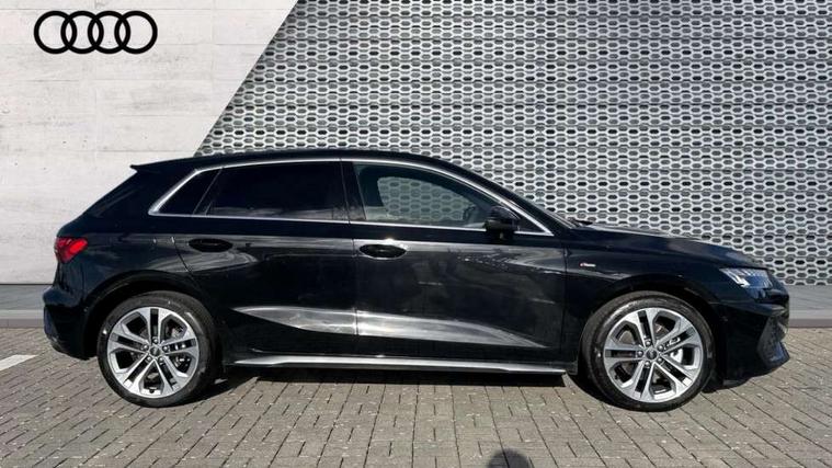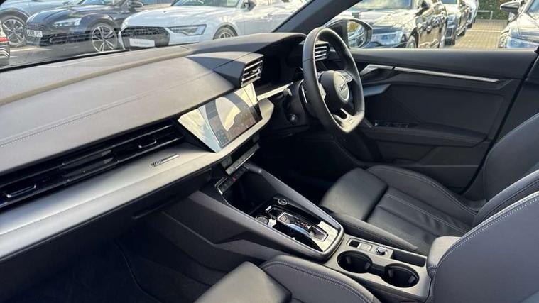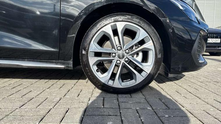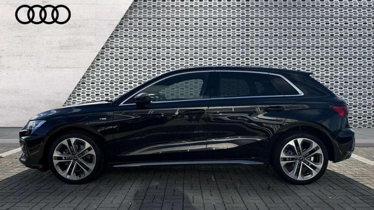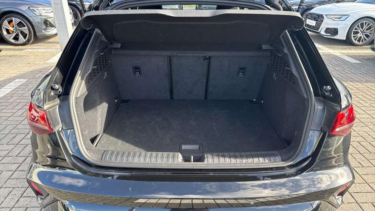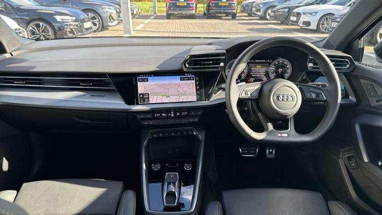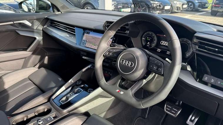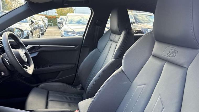 Adjustable speed limiter, Audi drive select, Audi smartphone interface with app store includes wireless Apple carplay, Android auto and Amazon alexa integration, Audi virtual cockpit plus - 12.3" full HD resolution dynamic digital instrument cluster, Automatic start/stop system with recuperation, Bluetooth interface, Camera based traffic sign recognition, Collision avoidance assistant, Cruise control, Distraction and Fatigue warning, e-Call (emergency call), Electromechanical power speed sensitive steering, Emergency assist, Lane departure warning system, MMI Navigation Plus with high resolution 10.1" colour touch screen display, Park Assist with parking system Plus, Service indicator, Trip computer, Voice control system with natural language interaction, 3 pin 10 amp domestic charging cable, CCS socket for DC charging, Charging cable for public charging, mode 3 (type 2), 32 A, Compact charging system, Industrial connector CEE 32 A, 230 V, length 1.6 m, Standard suspension, Type 2 socket for AC charging, Audi Phonebox light with wireless charging, Audi sound system - 10 loudspeakers including centre loudspeaker and subwoofer, DAB Digital radio, USB ports with charging function in the rear, Acoustic glass windscreen, All weather light, Aluminium window trim, Auto dimming frameless rear view mirror, Automatic dynamic range control, Body colour exterior mirrors, Chrome exhaust tailpipes, Dipped beam, main beam, position light and turning light, Electrically adjustable/heated/folding/auto dimming door mirrors with integrated LED indications + kerb view function for passenger side, Exterior model badging, Front and rear side air inlets in grained matt black with dark liquid chrome frame, Front electric windows, Front radiator grill in high gloss dark chrome, Heat insulating glass windscreen, Illuminated door sills with aluminium inserts at the front with S logo, Intersection light, LED 3rd brake light, LED brake lights, LED daytime running x3, LED headlights with LED rear lights and dynamic rear indicators, LED rear number plate lights, LED reverse light, LED tail lights, Light and rain sensors, Manoeuvring light, Motorway light, Privacy glass - dark tinted rear window, rear door and side windows, Rear diffuser and grill in grained matt black with inlay in dark liquid chrome, Rear electric windows, Rear side wing doors, Rear wiper, S line bumpers, S roof spoiler, Side S line emblems on front wings, Side sill trim in dark liquid chrome, Static Cornering lights, 12V socket and storage compartment in front centre console, 3 seat bench in 2nd row, 3 spoke flat bottomed leather multifunction sport steering wheel with gear shift paddles, 3-zone deluxe automatic air conditioning, 4 way electrically adjustable lumbar support for driver and front passenger, 40/20/40 split folding rear seat bench, Black cloth headlining, Black front and rear floor mats, Convenience auxiliary air conditioning, Front and rear centre armrest in artificial leather with contrasting stitching on armrests and instrument panel, Front and rear headrests, Heated front seats, Height and reach adjustable steering wheel, Manual boot compartment lid, Manually adjustable front seats, Rear centre armrest with cupholder, S badging on the steering wheel, Seat side bolsters, Single front passenger seat, Stainless steel pedals and front footrest in black, Twin leather upholstery with front sports seats S embossed logo, Aluminium interior elements pack - A3, Multi-coloured LED interior lighting package with Multi-coloured contour lighting of instrument panel - A3, 3x3 point rear seat belts, Acoustic vehicle alerting system, Driver and front passenger airbag with passenger airbag deactivation, Electronic Stabilisation Control (ESC) including ABS, ASR and EDL, First aid kit with warning triangle and 2 safety vests, Front side airbags with head airbags and interaction airbag, Hill hold assist, Pre-sense front with pedestrian and cyclist detection, Seatbelt monitoring, Tyre pressure loss indicator, Anti theft alarm, Anti-theft wheel bolts, Electronically operated child locks, Immobiliser, Remote central locking with safelock, Black dashboard, Inlay in dark aluminium spectrum, Tyre repair kit,