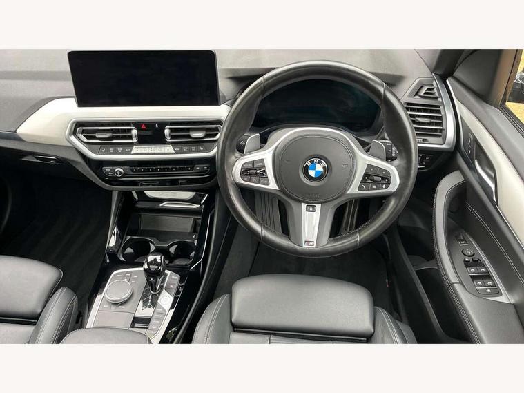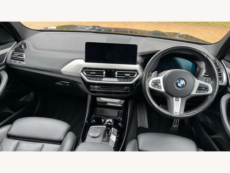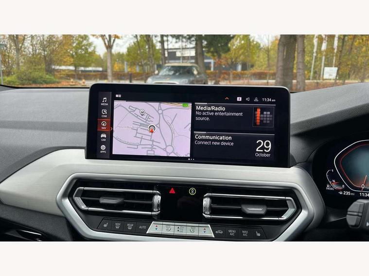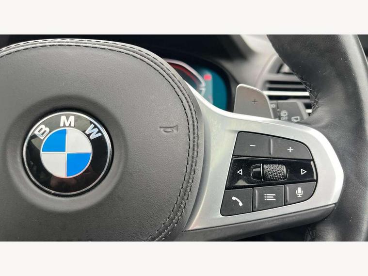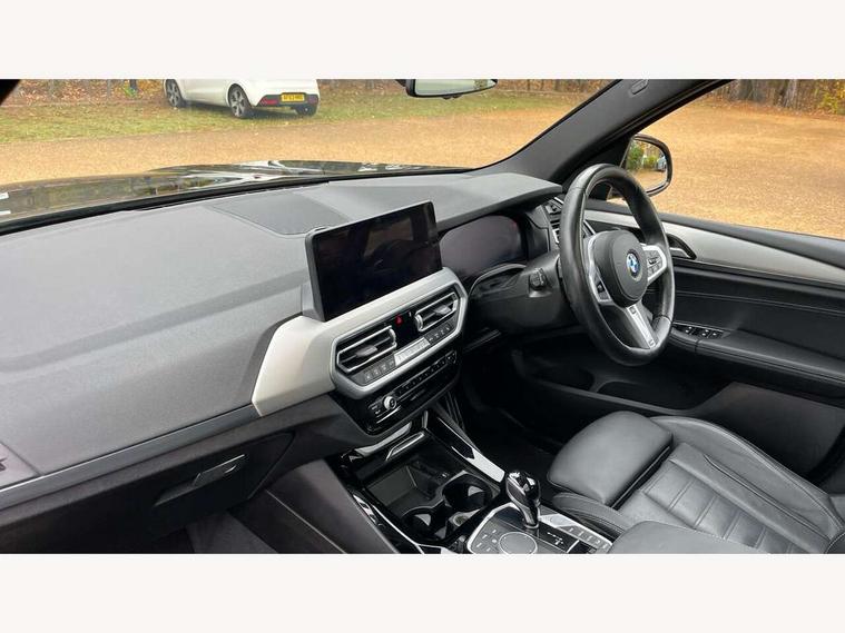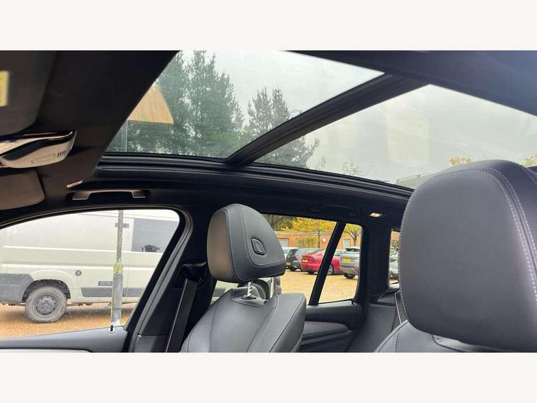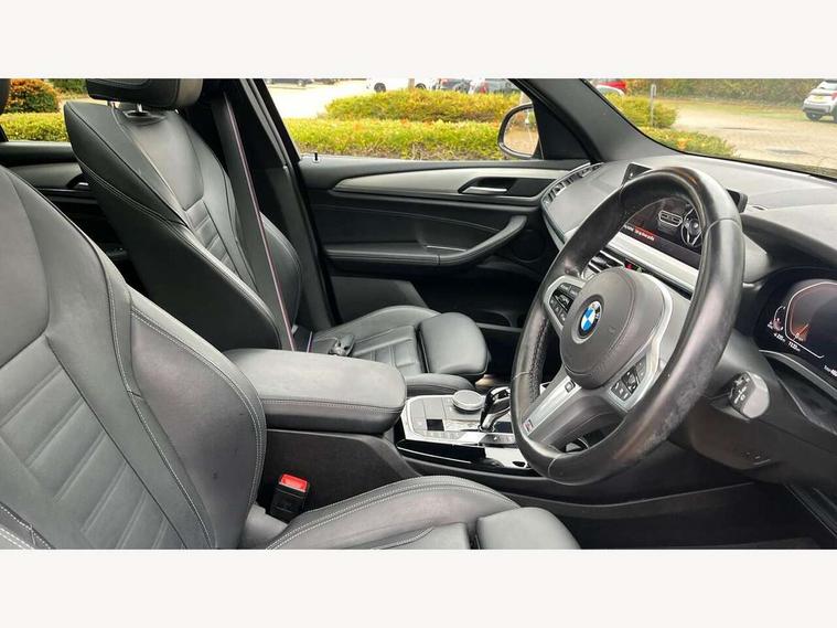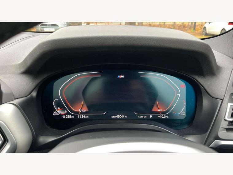 Active Guard, Attentiveness assist, BMW Live Cockpit Professional nav system including 12.3" instrument display + 12.3 high resolution control display, BMW Online services, BMW Teleservices, Brake pad wear indicator in front and rear, Check Control warning system for monitoring of lights and door/luggage compartment open warning, Condition based service - BMW service history, electronic service booklet, integrated owner's handbook, Connected drive services, Cruise control with brake function + speed limiter, Electric boot lid, Front/rear Parking distance control, iDrive Controller with 8 favourite buttons, Instrument cluster with speedometer with mph readout, tachometer, fuel gauge and oil temperature gauge, Lights on warning by audio warning signal when ignition is switched off, Oil sensor for level and grade, warning by check control system, On board computer - average speed+fuel consumption, service interval, clock/date, odometer/trip meter, outside temperature display and ice warning, Optimum shift indicator, Personal Profile - automatic lock when driving away selectable, Stop/start system, Variable sports power steering, Automatic transmission with gearshift paddles, Diesel particulate filter, Drive performance control with ECO PRO comfort + sport mode, Incorrect fuelling protection, Larger capacity fuel tank, M sport suspension, Multi-link rear suspension, Performance Control, BMW professional radio/CD/MP3, DAB tuner, Acoustic glazing, Automatic windscreen wipers and automatic headlight, Black finish on B pillars, Body colour door handles, Body colour electric adjust heated aspherical door mirrors, Body colour roof mouldings, Body coloured bumpers, Direction indicator, side repeaters, integrated in exterior mirrors, Dynamic brake lights, Exhaust tailpipes - dual, round, split left and right with chrome finisher, Fingertip control / anti-trap function on electric window, Folding wing mirrors with auto dimming, Follow me home headlights, Front and rear bumper system with replaceable deformation elements, Front and rear electric windows, Gloss chrome tailpipes finishers, Green tinted heat insulating glass, Heated windscreen washer jets, High beam assistant, High gloss black shadow line roof rails, High gloss shadowline exterior trim in decorative moulding side frame/recess cover/guide rail/B, C pillars/mirror frame and triangle with mirror base, High level 3rd brake light incorporating LED Technology, Interior rear view electrochromatic mirror with automatic anti dazzle function, LED tail lights, Lightweight engineering, M aerodynamic bodystyling, Model designation, Rear side wing doors, Rear wing door, Rear wiper, Shark fin antenna, Side exterior M designation badges, Visible VIN plate, Welcome lighting, Windscreen wipers with adjustable interval, 12V power socket in front centre console, 3 rear headrests, 3 zone automatic air conditioning, 4 lashing points to secure luggage, 40:20:40 split folding rear seat with loading system, 5 seats, Ambient lighting, Anthracite headlining, Automatic interior light when door is opened/ignition switched off or via remote key, Foldable storage floor with compartment, Four grab handles integrated in roof lining, Front and rear bottle holders integrated into door trim storage compartments, Front and rear side armrests integrated into door trim, Front centre armrest with storage compartment, Front footwell lights, Front head restraints, Front sports seats, Front/rear courtesy lights with soft on/off dimming, Front/rear reading lights, Heated front seats, Isofix rear child seat preparation, Leather gear knob, Luggage area underfloor compartment, Luggage compartment lighting, M sport leather steering wheel, Multifunction steering wheel, Parcel shelf removeable and storable under boot floor, Reach and rake adjustable steering column, Rear centre armrest with 2 cupholders, Removable / retractable luggage cover, Seat backrest width adjustment, Slope adjustable rear seats, Storage compartment in rear centre console and front/rear door trims, Sun visors with vanity mirrors and ticket pocket, Toolkit located in luggage compartment, Two front cupholders with removable oddments tray/lid, Vernasca leather upholstery, Connected pro pack - X3, Driving assistant pack - X3, ADB - Automatic Differential Brake, Anti-lock braking system (ABS) with brake assist, Automatic Stability Control (ASC), Battery safety cut-off, BMW emergency call, Brake drying, Brake energy regeneration, Braking pre-tensioning, Child locks on rear doors, Cornering brake control (CBC), Crash Sensor - activation of central locking release, hazard warning light and interior lighting, Deactivation of fuel pump in the event of a crash, Driver and front passenger front and side airbags with passenger deactivation and ITS front and rear head airbags, DSC+, Dynamic brake control, Dynamic Traction Control - DTC, Electromechanical parking brake, Hill descent control, Hill start assist, Seatbelt security check for front seats, Side impact protection, Three point seatbelts to all seats with front and outer rear pyrotechnic belt tensioners and seat belt force limiters, Two tone horn, Tyre pressure sensor, Ventilated front and rear disc brakes, Warning triangle and first aid kit, Central locking switch for all doors, fuel filler cap and luggage compartment, Electronic engine immobiliser, Locking wheel nuts, Remote control including two integrated key - one button for open/close all lockable content, windows and separate button for open luggage compartment, Remote control Thatcham category 1 alarm, Start/stop button with Comfort Go keyless engine start and auto Start/stop deactivation button, Low rolling resistance tyres,