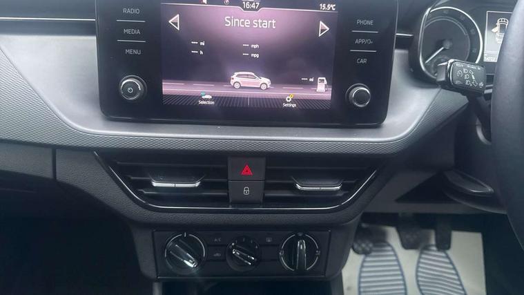 Bluetooth system, E-call, Front assist system, PAS, Service indicator, Speed limiter, Wireless Smartlink for Apple CarPlay (wired for Android Auto), 8 Speakers, Auxiliary input socket, DAB Digital radio, Body colour bumpers, Body colour door mirrors and handles, Chrome grille surround, Dimming rear view mirror with black surround, Electrically adjustable and heated door mirrors, Front and rear electric windows, Headlight range control, Heated rear window, LED rear lights - low functionality, LED third brake light, Light sensors, Rain sensor, Rear fog lights, Rear side wing doors, Rear wiper, 12V Accessory socket in centre console, 3 seat bench in 2nd row, Chrome inner door handles, Cloth upholstery, Front head restraints, Glove compartment with illumination, Ice scraper, Isofix child seat fittings on outer rear seats, ISOFIX on front passenger seat, Manual lumbar support for front seats, Rake/reach adjustable steering wheel, Reading lights, Single front passenger seat, Sun visors with illumination on front passenger, Textile floor mats, Third rear headrest, Top tether for front passenger seat, Umbrella in driver's door, 3x3 point rear seatbelts, Airbags - driver and front passenger, ESP, Front passenger airbag deactivation switch, Front side airbags with curtain airbags, Hill hold control, Manual parking brake, Manual rear child locks, One tone horn, Rear disc brakes, Seatbelt reminder for driver an co-driver, Traction control, Tyre pressure monitor, Anti-theft alarm system with interior monitoring, backup horn, towing protection and remote central locking with SAFE system, Anti-theft wheel bolts, Electronic engine immobilizer,