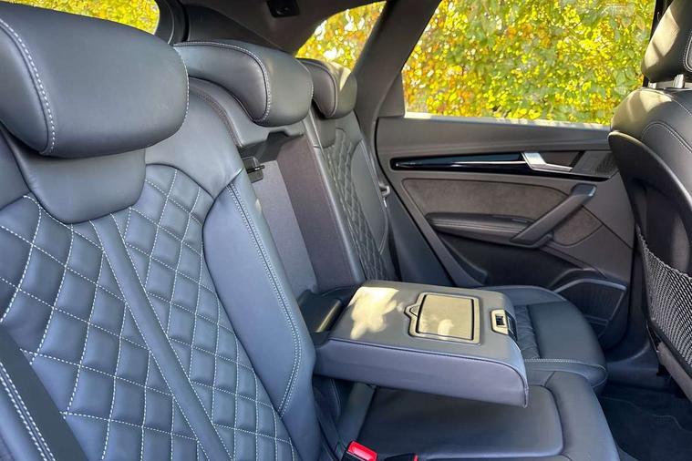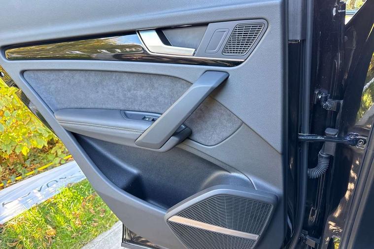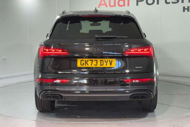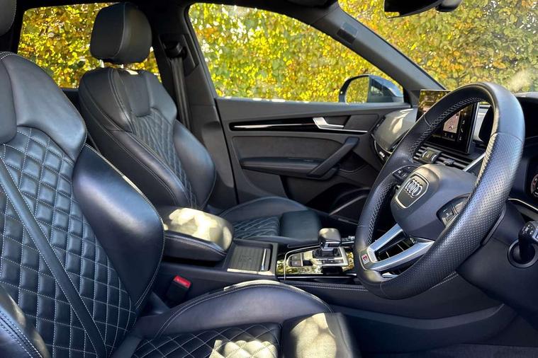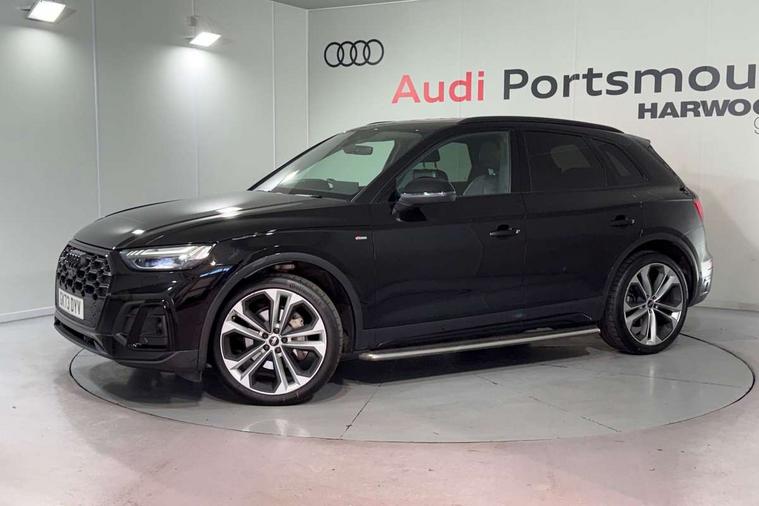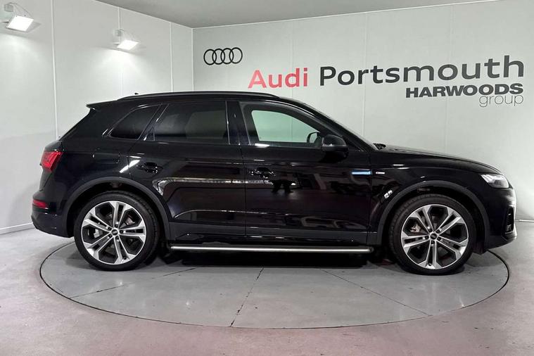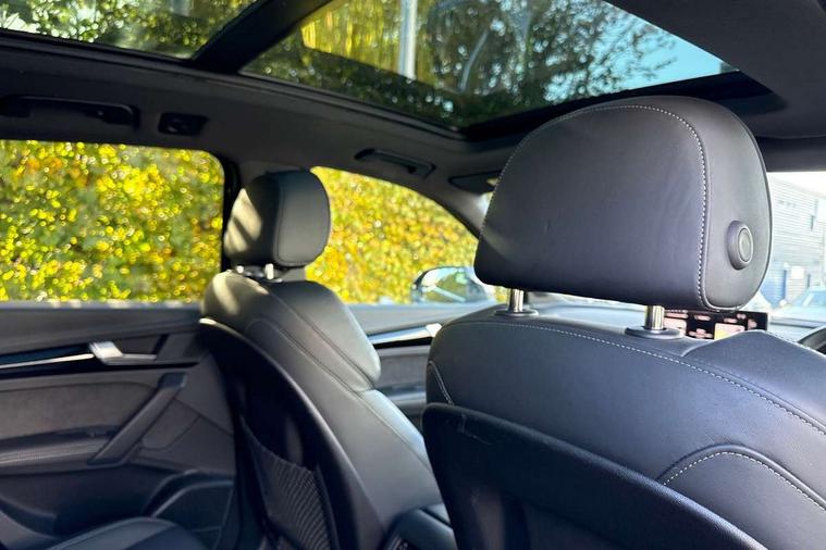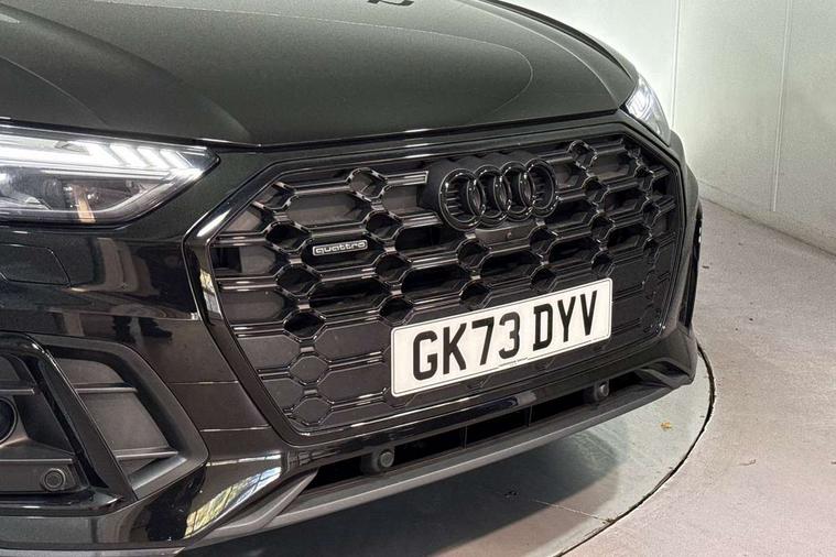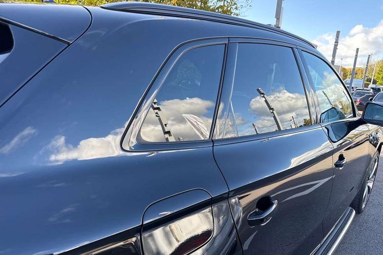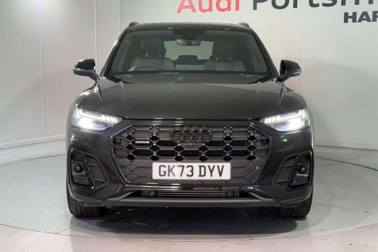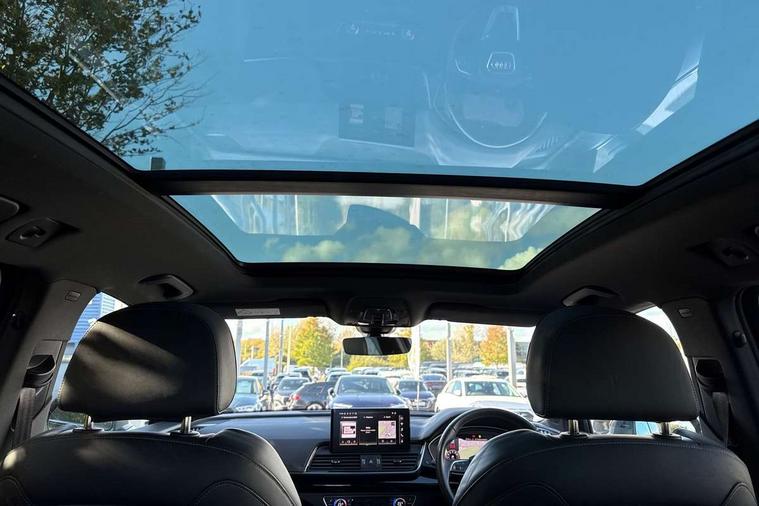 360 degree camera with top view, Advanced key with electric hands free boot opening system, Audi connect safety and service (e-call), Audi connect with Amazon Alexa Integration, Audi drive select, Audi Phone Box with wireless charging - Qi enabled compatible phone and additional bluetooth interface, Audi virtual cockpit plus with 12.3" screen and three different layout designs, Audi wireless smartphone interface, Automatic start-stop system with coasting functionality and efficiency programme, Electro - mechanical power assisted steering, Head up Display, MMI navigation plus with 10.1" touch screen, Mobile telephone preparation - bluetooth interface, Park assist with parking aid plus, Power tailgate, Service interval indicator, Voice control system with Audi hotword activation "Hey Audi", Adaptive air suspension, Quattro on demand, 2 x USB charging port with aux input socket, Bang + Olufsen sound system, DAB Digital radio, 3rd brake light, Acoustic windscreen, Audi beam with 'Vorsprung' logo, Audi matrix LED headlights with OLED rear lights + dynamic front and rear indicators, Auto dimming door mirrors, Auto dimming rear view mirror, Automatic headlight adjustment, Automatic headlights and windscreen wipers, Black roof rails, Body colour bumpers, Body colour underbody protection, Chrome plated exhaust trims, Daytime running lights, Door sills in Selenite silver, Electric adjustable/heated/folding door mirrors, Front air inlet surrounds in titanium black, Front and rear electric windows, Gloss black finish for Audi rings and Q5 logos without engine badging, Headlight washers, High gloss black B pillar trims and triangular rear door trim, Lower bumpers painted in contrast Manhattan grey, Panoramic sunroof, Rear chrome trim strip below lights, Rear privacy glass and rear side windows, Rear side wing doors, Rear wiper, Roof bars, Running boards, S Line rear spoiler, 3 rear headrests, 3 spoke heated leather multi-function steering wheel, 4 way electric lumbar support for driver and front passenger, 40:20:40 split folding 3 rear bench seat in 2nd row with rear centre armrest, Black cloth headlining, Comfort front centre armrest, Contrast stitching on seats, steering wheel and gear lever gaiter, Deluxe 3 zone electronic climate control, Electrically adjustable front seats with driver memory, Fine Nappa leather upholstery with diamond pattern contrast stitching + front sport seats with S embossed logo, Front/rear floor mats, Gear lever in black leather, Heated front and outer rear seats, Height adjustable front head restraints, Illuminated door sill trims with aluminium inlays, ISOFIX child seat mounting and top tether, Luggage compartment cover, Massage function for front seats, Rear seat bench plus, Removable luggage compartment floor, Single front passenger seat, Stainless steel pedals, Sunvisors with vanity mirrors, Black styling package - Q5, City Assist pack - Q5, Extended interior upholstery pack - Q5, Extended LED Interior multi coloured Lighting Pack - Q5, Tour pack - Q5, 3 point seatbelts on all seats, 6 airbags - Driver, front passenger, curtain and side airbags, Electrically operated child locks on rear doors, Electromechanical parking brake, Electronic stabilisation control including ABS, ASR and EDL, Front passenger airbag deactivation, Hill descent control, Hill hold assist, Multi collision brake assist, Pop-up bonnet for pedestrian protection, Pre sense city, Seat belt force limiter, Seatbelt monitoring, Tyre pressure warning, Warning triangle and first aid kit, Anti theft alarm, Anti-theft wheel bolts, Keyless Go access/ignition system, Remote central locking, Piano black finish inlay, Tool kit, Tyre repair kit,