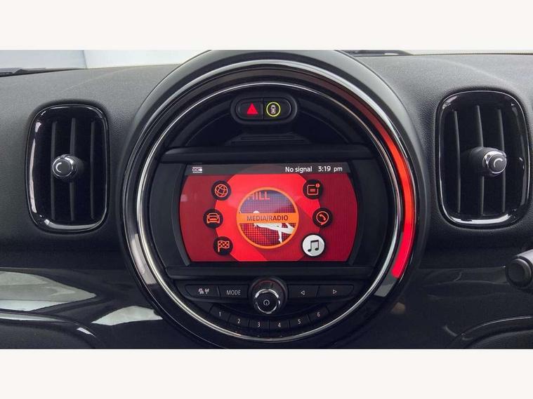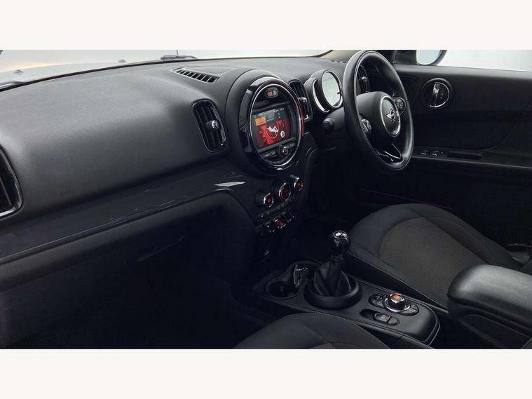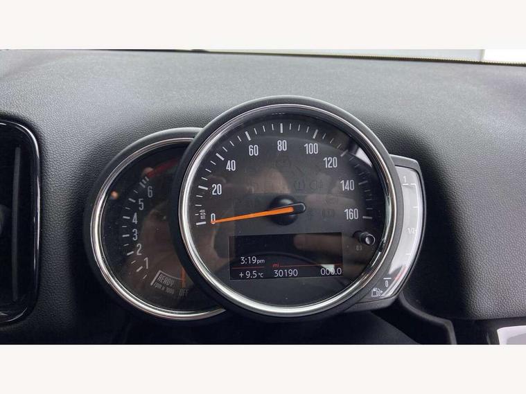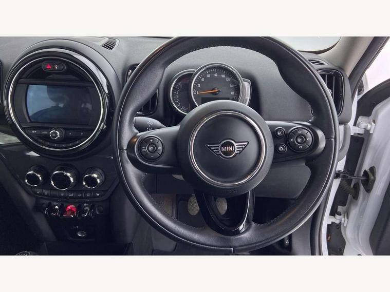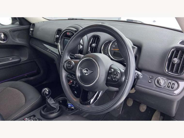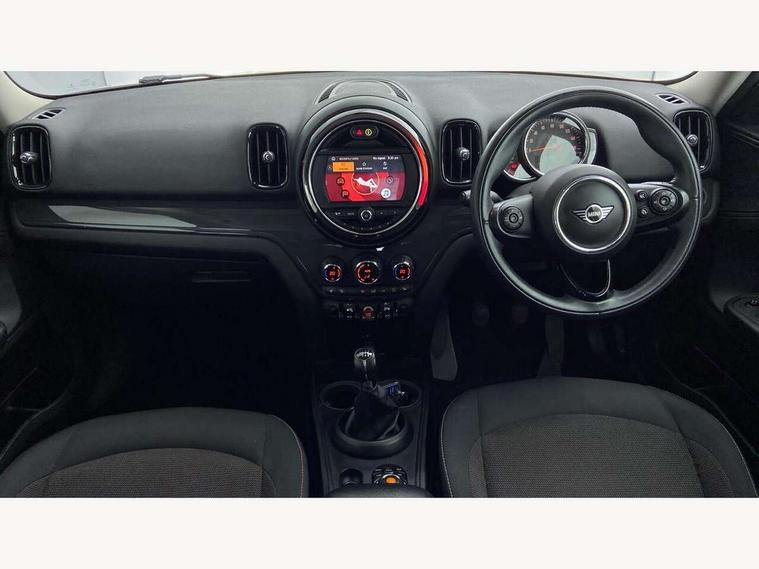 Active Guard incl speed limiting and lane departure functions with auto steering, and front collision warning with brake intervention, Automatic start/stop function with brake energy recuperation, Compatible mobile phone bluetooth with audio streaming, Electro-mechanical speed dependant steering assistance, Instrument cluster, Mini E-call, MINI TeleServices, On board computer, Rear parking distance control, Double Vanos system, Fully variable valve control, High precision injection, FM tuner and DAB digital radio, Body colour fuel filler cap, Day time driving lights, Door sill strips, Dynamic brake lights, Electric windows, Heated rear window, Heated windscreen washer jets, Left exhaust tailpipe with chrome finisher, Model logo, Model logo on Tailgate, Radiator grille, Rain sensor with auto headlights, Rear fog lights, Rear window wiper, Side scuttle panel with integrated indicator, Split rear doors, Sun/heat protection glass, White indicator lenses, 12V Accessory socket in centre console, 360L luggage compartment capacity, 4 lashing eyes in luggage compartment, 40:20:40 split folding rear seats, Chrome interior highlights, Colour line - Carbon black, Cupholders, English handbook, Front headrests, Glove compartment, Headliner with grab handles and clothes hooks, Height and length steering column adjustment, Interior lighting with 12 basic colours selectable via toggle switch in roof, Isofix rear child seat preparation, Leather gearshift lever and handbrake gaiters, LED reading lights, vanity mirror lights, front foot well light and spotlight on front seats, Manual air conditioning, Mechanical seat adjustment, driver seat height adjust, forward/back and front seats backrest, Multifunction steering wheel, Passenger seat height adjuster, Rear headrests, Storage compartments in doors, Sunvisors with vanity mirrors, Tool kit, Excitement pack - Countryman, Navigation pack - Countryman, 2 tone horn, 3 point seatbelts on all seats, 6 Airbags - front, side, head and seat belt tensioners, Anti-lock braking system (ABS), DSC - Dynamic Stability Control, Electronic handbrake, Front and rear disc brakes, Hill start assist, Tyre pressure monitoring system, Alarm system with tilt sensor, monitoring doors, bonnet interior and tailgate, Auto drive away locking, Deadlocking function, Electronic vehicle immobiliser, Locking wheel bolts, Start/stop toggle with keyless go,