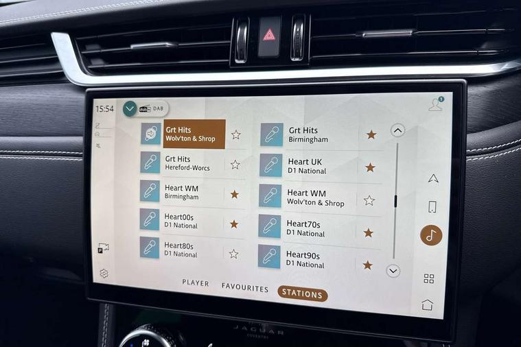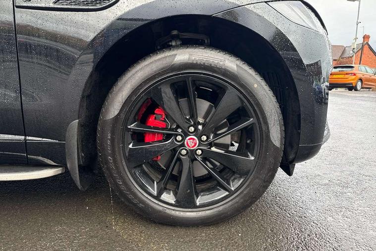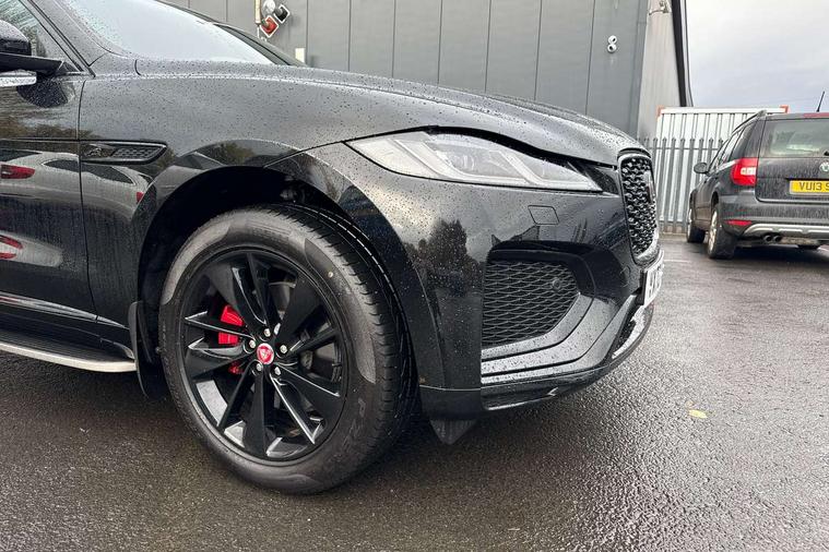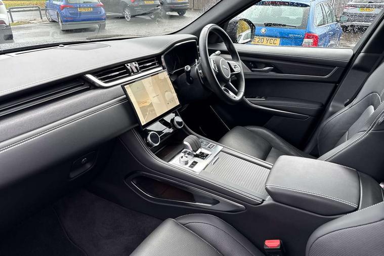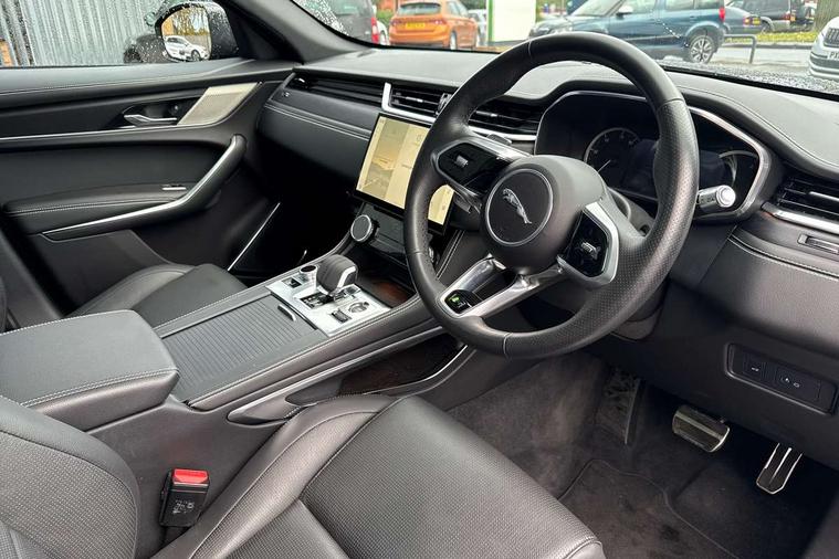 11.4" touchscreen, Android Auto, Apple car play, Bluetooth connectivity, Driver alert system, Driver condition monitor, eCall emergency call system, Eco driving style assistant, Electric power assisted steering, InControl remote, Jaguar Toggle shift selector, Lane departure warning system, Lane keep assist, Outside temperature gauge, Personalisation profile management, Pivi pro connected navigation system with app interface and media storage, Pro services and wifi hotspot, Push button starter, Service interval indicator, Speed proportional steering, Start up sequence with movement in dials and lighting, Traffic sign recognition with adaptive speed limiter, Trip computer, Voice control system, 8 speed automatic transmission, All terrain progress control, All Wheel Drive (AWD), Open differential with torque vectoring by braking, AM/FM radio, Bluetooth streaming, DAB Radio (Digital Audio Broadcasting), Dynamic volume control, InControl apps, InControl protect, iPod integration, 3 flash lane change indicators, Animated directional indicators, Approach Illumination, Auto dimming rear view mirror, Automatic headlights, Electric windows with one touch open/close and anti trap, F-Pace and R Dynamic badge, Gloss black door mirrors, Gloss black roof rails, Green tinted glass, Heated front windscreen + heated washer jets, Heated rear window with timer, Jaguar script and leaper, LED High level third brake light, LED tail lights, Non acoustic front windscreen, Privacy glass, R Dynamic badge on side door, Rain sensor windscreen wipers, Rear fog lights, Rear metal tread plates, Rear side wing doors, Rear wiper, Trailer stability assist, Variable front intermittent wipers, 12V power point front, 3 rear headrests, 3 seat bench in 2nd row, Air distribution speed, Bright metal foot pedals, Centre armrest console, Centre console with side storage, Deletion loadspace storage rails, Door sill tread plates, Fold flat front seats, Front centre armrest with storage compartment, Front door storage space, Glovebox finisher with jaguar script, Heated steering wheel, Hooks in loadspace, Illuminated glovebox, Interior front door handles with separate locking switches, ISOFIX on outer rear seats, Jaguar sense, Luggage tie downs in loadspace, Mist sensing, Multifunction steering wheel, Overhead lighting console, Overhead stowage for sunglasses, Passive front head restraints, Premium cabin lighting, Premium carpet mats, R-Dynamic branded leather steering wheel, Rear air vents, Rear armrest with twin cupholders, Rear centre headrest, Rear door storage space, Reversible boot floor, Satin chrome gearshift paddles, Shopping bag hook, Single front passenger seat, Sunvisors with illuminated vanity mirrors, Twin front cupholders with cover, Black Exterior pack - F Pace R-Dynamic/Sport, Exterior pack - F Pace R-Dynamic, Online Pack with data plan - F-Pace, 355mm front brakes and 325mm rear brakes, 3x3 point rear seatbelts, ABS, All surface progress control (ASPC), Brake pad warning light, DSC - Dynamic Stability Control, Electric parking brake (EPB), Emergency brake assist, Front airbags with passenger seat occupant detector, Front and rear seatbelt reminder, Front side airbags, Full length side window curtain airbag, Hill launch assist, Power operated child locks, Torque vectoring brake, Traction control, Tyre pressure monitoring system, Immobiliser, Keyless Start, Locking wheel nuts, Perimeter alarm, Remote central locking, Valet mode,