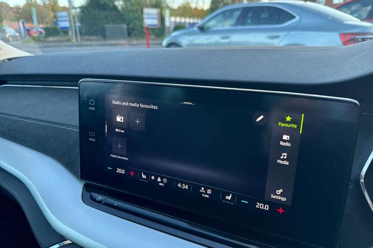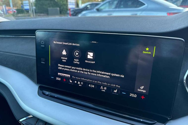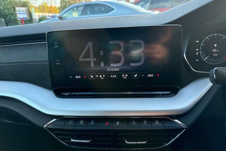 1x USB Type C port in rear view mirror (charging only), 2x USB Type C ports in rear of front centre armrest (charging only), Adaptive cruise control, Blind Spot Detection (BAS), Bluetooth system, Columbus satellite navigation with 10" touchscreen display, Drive mode selector, Electro-mechanical power steering, Front assist system, Lane assist, Smartlink (includes android auto and mirrorlink), Speed limiter, Virtual Cockpit - 10.25" digital display, Voice control system, Wireless SmartLink for Apple Car Play, 2x USB Type C ports (for charging and data transfer), DAB Digital radio, Aero front windscreen wipers with intermittent function, Auto dimming rear view mirror, Body colour door mirrors and handles, Chrome grille surround, Chrome strip in lower front bumper, Chrome window surround, Electric front and rear windows, Electrically adjustable, heated and folding door mirrors with memory function, Heated rear windscreen, High level third brake light, Ice scraper in fuel cap, Rain and light sensors, Rear fog light on one side, Rear privacy glass, 3 rear headrests, 4 foldable roof handles, Chrome inner door handles, Electrically adjustable driver's seat with memory and lumbar support, Front centre armrest, Front head restraints, Illuminated air conditioned glovebox, Leather trimmed gearshift lever, Luggage compartment lighting x1 light, Sun visors with mirrors, Sunglasses storage, Textile floor mat set, Ticket holder, Two-spoke leather multi function steering wheel, Umbrella in door panel, Unsplit rear bench seat and split folding backrest, LED interior light pack - Octavia, 3 point front/outer rear seatbelts+pre-tensioners, Alarm with interior monitoring, tilt sensor and back up horn, Automatic door unlocking in case of crash, Automatic fuel cut off in case of crash, Automatic warning lights in case of emergency braking, Driver and passenger front and side airbags, Drivers knee airbag, Electronic parking brake, Emergency call and proactive services, ESC including ABS, EBV, MSR, ASR, EDS, HBA, DSR, Head and curtain airbags, Hill hold control, Hill start assist, ISOFIX on front passenger seat and outer rear seats, Manual rear child locks, Passenger airbag deactivate switch, Rear disc brakes, Two tone horn, Tyre pressure monitor, Visual and acoustic seat belt reminder, Warning reflectors in front door, Door locks with immobiliser, Keyless entry and start/stop including rear doors, Remote central locking, Chrome air vent surrounds,