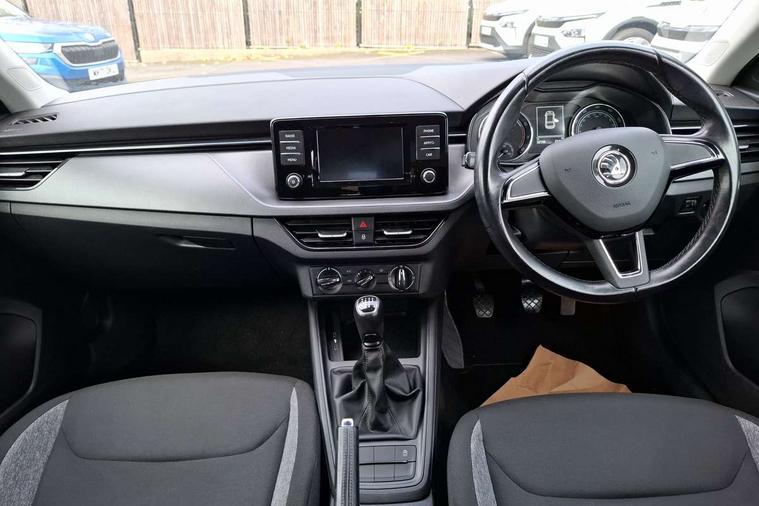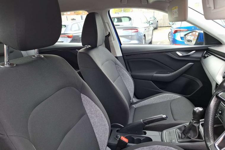 Bluetooth system, Easy light assist, Front assist system, Lane assist, Multi function trip computer, PAS, Speed limiter, 2 USB - C ports, 4 speakers, DAB Digital radio, Radio Swing with 6.5" colour display, Basic LED headlights with LED daytime running lights, Body colour door mirrors and handles, Chrome grille surround, Electrically adjustable and heated door mirrors, Front and rear electric windows, Tinted windows, 12V Accessory socket in centre console, Chrome inner door handles, Cloth upholstery, Front head restraints, Height adjustable drivers seat, ISOFIX for rear passenger seat, Leather gearknob and handbrake lever, Leather steering wheel, Manual air conditioning + Pollen filter, Third rear headrest, 3x3 point rear seatbelts, Curtain airbags, Emergency call and proactive services, Front head and side airbags, Hill hold control, Passenger airbag switch off function, Seat belt reminder for all seats, Two tone horn, Anti-theft wheel bolts, Remote central locking with 2 remote folding keys, Grained black decorative insert with black hot stamping, 16" Alaris alloy wheels, Temporary space saver wheel,