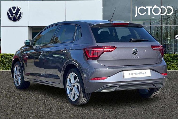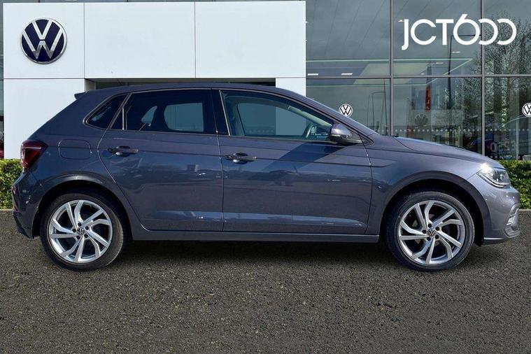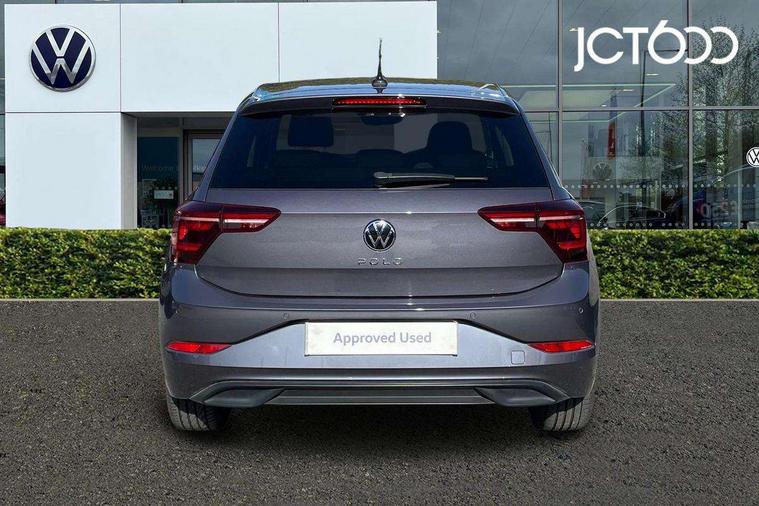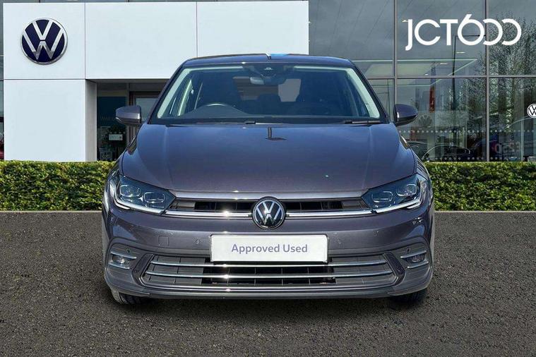 Adaptive cruise control without follow-to-stop and speed limiter, Bluetooth mobile phone interface, Digital Cockpit Pro with 10.25" Display, Driver alert system, Dynamic road sign display, Emergency call service, Power assisted speed sensitive steering, Preparation for We connect and We connect plus, Speedo and rev counter, electronic odometer, trip, service interval display and fuel gauge, Standard rear axle, Travel Assist - Lane keeping system and traffic jam assist, Travel assist including emergency assist, Trip computer, Warning signal and warning light for front and rear seatbelts not fastened, Washer fluid level indicator, Wireless app connect, Front wheel drive, Rear shock absorpion, Start-stop system with battery regeneration (recuperation - energy recovery during braking), DAB Digital radio, Diversity antenna for FM reception, Front and rear 6 speakers, Automatic dimming interior rear view mirror, Automatic headlights, Body colour door handles, Body coloured bumpers and radiator grille with chrome trims, Electric front windows, Heat insulating darkened glass in side and rear windows, Heat insulating glass windscreen, LED separate daytime running lights with coming/leaving home function, Power folding adjustable/heated exterior mirrors and front passenger exterior mirror lowering function, Rain sensor, Rear electric windows, Rear fog light, Rear side wing doors, Rear windscreen washer and wiper with interval delay, Third brake light, 12V power socket in centre console, 2 USB-C ports in the front, 2 USB-C charging sockets on the center console in the rear, 3 rear head restraints, 60/40 split folding rear seat and rear seat bench not split, Air care climatronic air conditoning system with active combination filter and 2-zone temperature control, Ambient lighting, Ceramique headliner, Chrome plated radiator grille inserts, air vent surrounds and light switch surrounds, Door and side trim panel, Driver and front passenger seat height adjustment, Driver/passenger sunvisors with illuminated vanity mirrors, Front + rear carpet mats, Front centre armrest, Front footwell illumination, Front seat backrest storage pockets, Front sports comfort seats, Handbrake lever handle in leather, Isofix child seat preparation easy-fit (for two outer rear seats, and front passenger seat) compatible with I-size, Leather trimmed gear knob, LED interior light with switch off delay and dimmer, 2 reading lights front and rear, Luggage compartment cover, Luggage compartment floor, Luggage compartment lighting, Lumbar adjustment for front seats, Multifunction steering wheel, Single front passenger seat, Standard pedal cluster, IQ LED matrix headlights pack - Polo, Light and vision pack - Polo, 3 point height adj front seatbelts + pretensioners, 3x3 point rear seatbelts, ABS, Driver and front passenger airbag with front passenger airbag deactivation, Drivers and front passengers safety optimised head restraints, ESC (Electronic stability control) + EDL (Electronic Differntial lock) and ASR (Traction control), Extended and predictive pedestrian/ cyclist protection, Front curtain and side airbags with center airbag, Front disc brakes, Hill hold control, Manual child lock in rear doors, Rear drum brakes, Single tone horn, Tyre pressure loss indicator, Alarm with interior protection, Anti-theft alarm system with interior monitoring, backup horn, and towing protection, Anti-theft wheel bolts, Electronic engine immobiliser, Chrome applications on rotary light, mirror adjustment, window regulator switches, outlet with frame in black, Deep iron gloss decorative inserts in dash and front door panels, Low rolling resistance tyres,