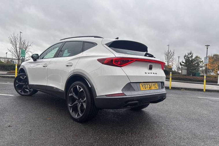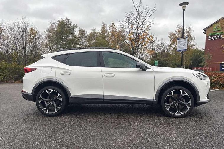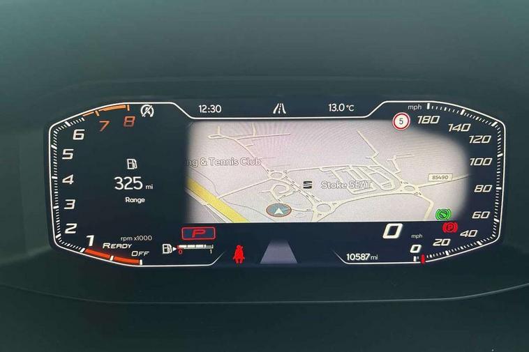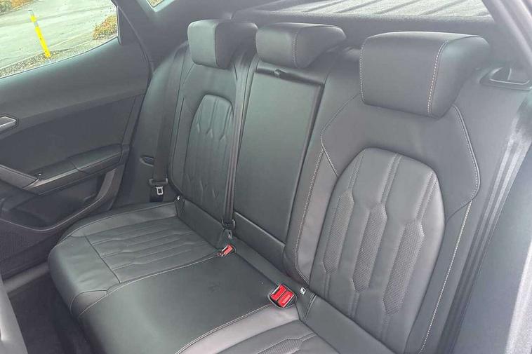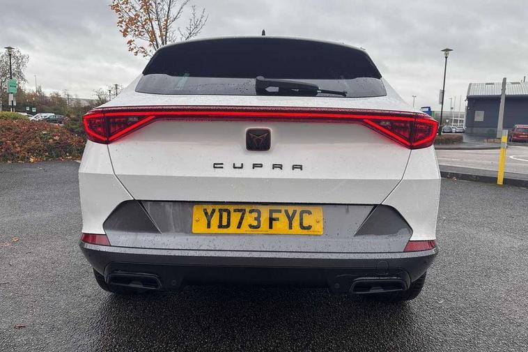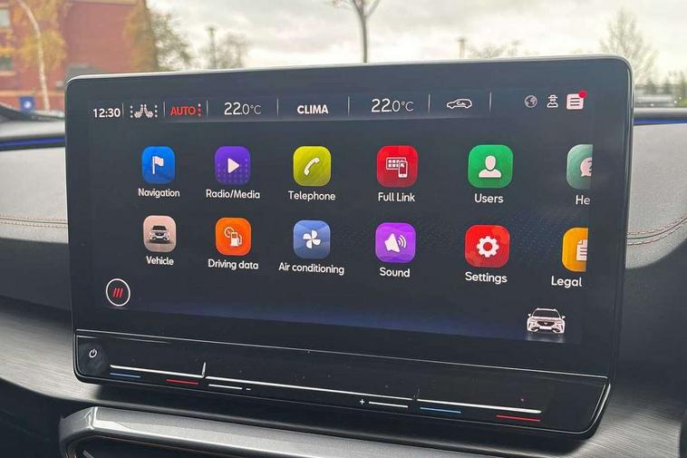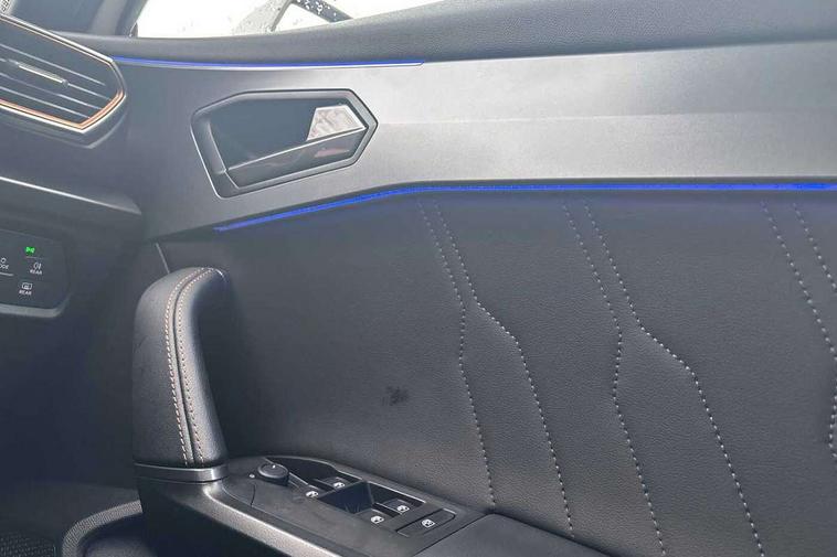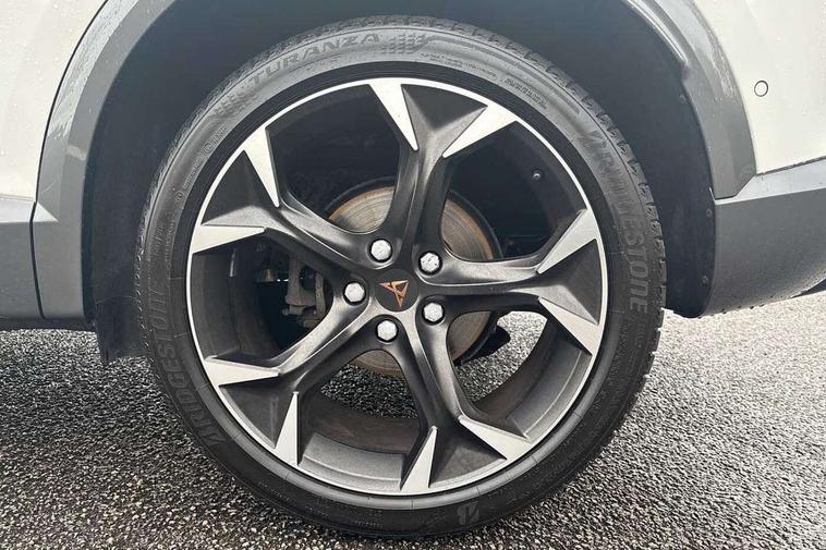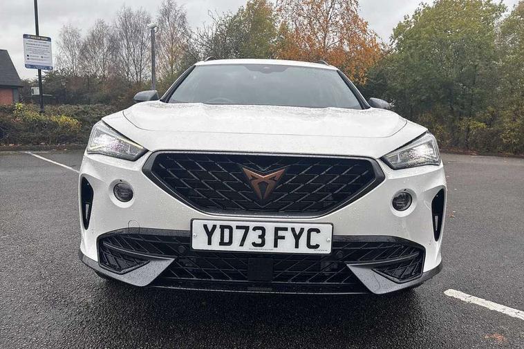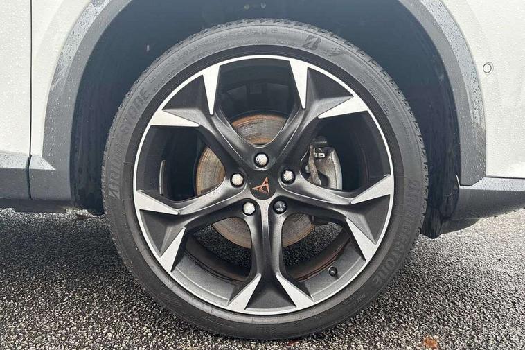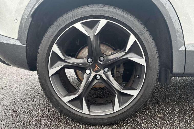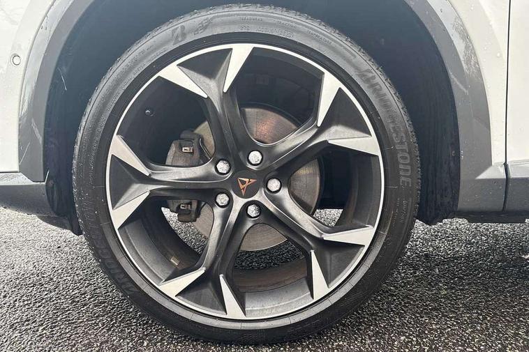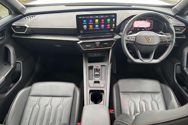 Digital cockpit and configurable dashboard, Driver alert system, Driving profile selection, Forward collision warning with automatic braking, Lane assist, Navigation system with 12'' Touchscreen Display, Park assist (inc front/rear parking sensors), PAS, Predictive adaptive cruise control with speed limiter, Rear view camera, RPM, trip computer, outside temp gauge, instrument light brightness, low fuel warning light, lights on reminder, gearshift indicator, Service interval indicator, Start/stop system with regenerative braking, Voice control system, Wired Android Auto, Wireless apple carplay, Wireless phone charger, Electronic locking differential and dynamic traction support, Standard suspension, 2 front and 2 rear USB type C sockets, Auxiliary input socket, DAB radio, Auto dimming rear view mirror, Body colour door handles, Body coloured bumpers, Dark grey wing mirror, Daytime running light with automatic headlight control and coming home feature, Dynamic headlight range control, Electric front/rear windows, Electrically adjustable heated and folding door mirrors with memory function, Front fog lamps with cornering function, Gloss black roof rails and window surrounds, LED Headlights, LED Taillights with dynamic indicator, Rain sensing wipers, Rear diffuser with black simulated exhaust pipes, Rear side wing doors, Rear wash/wipe, Third brake light, Tinted rear windows, Welcome lights, 12v power supply in centre console, 12V socket, 12v socket in loadspace, 2 front and 2 rear reading lights, 230V socket, 3 seat bench in 2nd row, 60/40 split rear bench seat with armrest and mechanical seat release, Black headlining, Dust/pollen filter, Front and rear head restraints, Front centre armrest, Height/reach adjust steering wheel, Illuminated interior front door sills, Illuminated sunvisor with mirror, Isofix, Leather multi function heated steering wheel with gear shift paddles, Luggage tie-down hooks, Single front passenger seat, Three zone climate control with control panel in rear, Variable luggage/load compartment floor, Wraparound lighting, Genuine Nappa leather Pack - Cupra, 3 point seatbelts on all rear seats, ABS, Brake control system - ESC and brake booster, Child proof door locks, Driver and front passenger airbags with front passenger airbag de-activation, Electronic parking brake, Front and rear disc brakes, Front side curtain airbags, Hill hold control, Public e-call, Seat belt reminder for front and rear seats, Tyre pressure monitoring system, Anti theft alarm system, Keyless entry and start system (KESSY), Locking wheel bolts, Copper and aluminium interior detailing, 19" 'Exclusive' machined sport matte black and silver alloy wheels,
