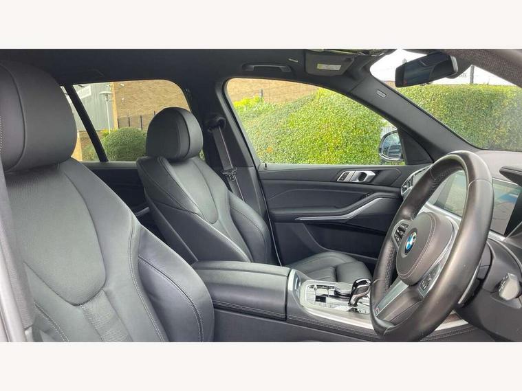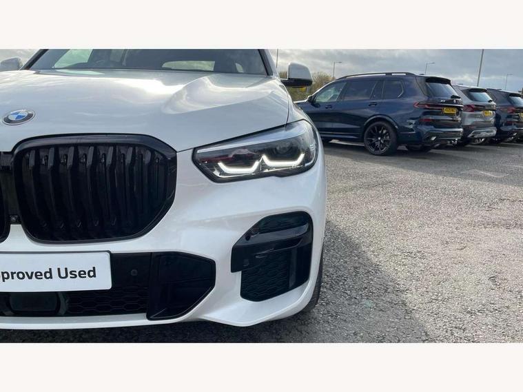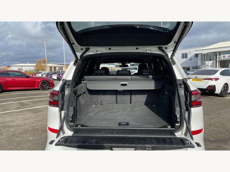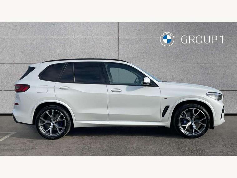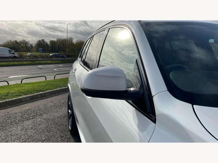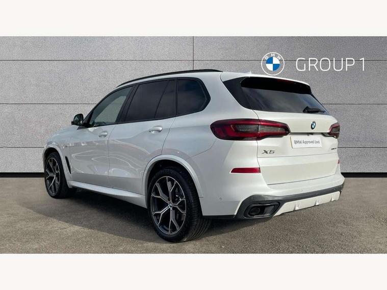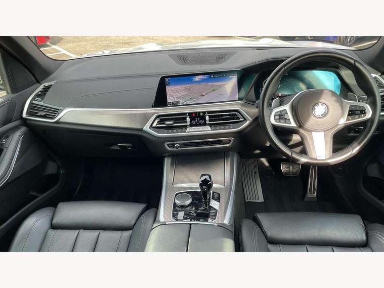 20GB hard disc drive (HDD) memory, Active guard plus, Attentiveness assist, Automatic tailgate with top hinged section open and manual bottom hinged section, BMW ConnectedDrive online services, BMW digital live cockpit professional - 12.3" digital instrument panel and 12.3" CID, with touch/voice command, BMW legal emergency call, BMW Teleservices, Brake force display, Brake pad wear indicator warning light, Cruise control with brake assist, Enhanced bluetooth with wireless charging, Front/rear park distance control, iDrive touch controller with shortcut buttons, Lights on warning, Oil sensor for level and grade, On board computer inc. average speed, fuel consumption, liquid crystal Info display, journey computer, outside temperature display, personal profile, Service interval indicator, Speed limit info display, Speed limiting function, Wi-Fi hotspot, 48V Mild hybrid technology, Adaptive 2-axle air suspension, Common rail technology, Diesel particulate filter, Double wishbone front axle, Drive performance control with ECO PRO comfort + sport mode, Eight speed steptronic sport automatic transmission and gearshift paddles on the steering wheel, Safety battery terminal clamp, Variable vane geometry, DAB Tuner enables digital radio reception, Favourite buttons, Hi-Fi loudspeaker system, USB connection, USB type A 1.5A in cupholder, USB Type C 3A in centre armrest, Active Air Stream kidney grille with high-gloss chrome, Adaptive air flap control bar in high-gloss black, Automatically dimming rear view mirror, BMW Individual high gloss black shadow line roof rails, Body colour bumpers, Body colour door handles, Dynamic brake lights with LED technology, Exhaust tailpipes - single, left and right with Chrome finisher, Follow me home headlight function, Front and rear electric windows with open and close fingertip control, anti trap facility and comfort closing, Heated windscreen washer jets, High beam assistant, High gloss black outer and central air intakes on front bumper with pearlescent chrome finish, High gloss black Side elements, LED daytime running lights, LED rear lights, M aerodynamic body styling, M designation on left and right front side panels, Pearlescent chrome front grille bars, Rain sensor with automatic headlight activation and windscreen wiper control, Rear side wing doors, Satin aluminium side window graphic, Third brake light in rear spoiler, Variable intermittent rear wash/wipe, Welcome light carpet, X5 on left tailgate, xDrive designation on right tailgate, 12V - Power sockets with 2x centre console and 1x luggage compartment, 3 seat bench in 2nd row, 40:20:40 split folding rear seats, Ambient interior lighting with 6 pre-designed selectable lights including dynamic function, Centre and rear interior light, Child seat ISOFIX attachment with rear outer seats includes top tether, Compartment in front of cupholder, Electric front seat adjustment with driver and front passenger memory function, Electrical steering column with adjustable height and length with activation and control on the steering column, Foldable rear centre armrest with 2 cupholders and storage compartment, Front and rear cupholders x 2, Front and rear door pockets, Front and rear door sill inlays with illuminated BMW M designation, Front and rear side armrest integrated into door trim, Front footwell lights, Front reading lights, Light inside glove compartment, Lockable glove compartment, Luggage compartment floor panel with integral storage tray, Luggage compartment lighting, M leather steering wheel, M specific key, M specific steering wheel, M specific velour floor mats, Make-up mirror lights, Multifunction controls for leather steering wheel, Multifunctional hooks, Rear head restraints, Seat back with flap pocket, Securing rings in luggage compartment, Single front passenger seat, Storage bins on all doors, Storage tray and compartment with cover in centre console, Sunvisors with illuminated vanity mirrors, Toolkit located in luggage compartment, Connected Package Professional - X5, Expanded exterior mirror pack - X5/X5 M, Non-smokers pack - X5, Airbags - driver/front passenger, rear and side, first and second row seats head airbags, front passenger seat airbag deactivation + knee airbag, Anti-lock braking system (ABS), Automatic Stability Control (ASC), Brake drying, Brake energy regeneration, Brake fade compensation, Braking pre-tensioning, Cornering brake control (CBC), Crash sensor activating central locking release, hazard warning lights, fuel cut off, interior lighting + activation of safety battery terminal clamp, Deformation zones - front and rear with door reinforcements and bumpers up to 2.5 mph, DSC - Dynamic Stability Control, Dynamic brake control, Dynamic Traction Control - DTC, Electromechanical parking brake with automatic drive away release and auto hold function, Electronic brake force distribution, Front and rear seatbelts with seatbelt stopper, seatbelt tensioner for front and outer rear seats and belt force limiter, Front head restraints with anti-whiplash, Height adjustable front seatbelts, Hill start assistant, Integrated brake system, M Sport braking system in blue high gloss + blue painted brake calipers with M designation, Mechanical child proof lock on rear doors, Passive protection for pedestrians, Seat occupancy detection for driver and passenger side, Side impact protection, Three 3 point inertia reel seatbelts, Two tone horn, Tyre pressure monitoring system, Ventilated front and rear disc brakes, Warning triangle and first aid kit, Closing system with central locking, Driver and front passenger door centre lock switch, Locking wheel bolts, Thatcham 1 alarm system with remote control and engine immobiliser, Start/stop toggle diamond shaped trim finisher in pearl chrome,