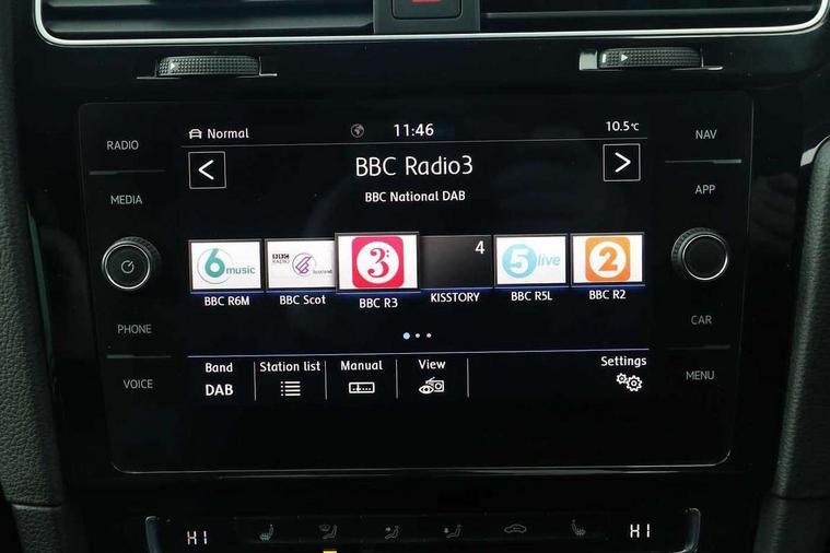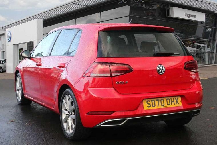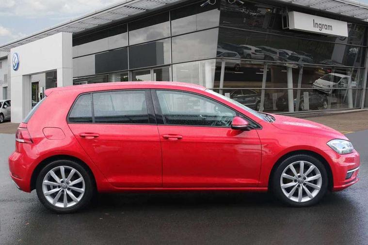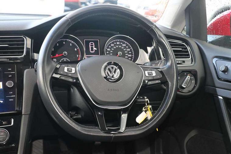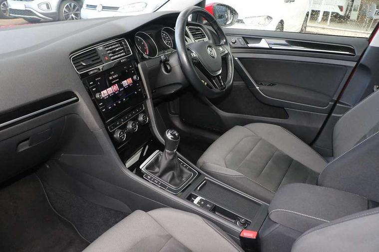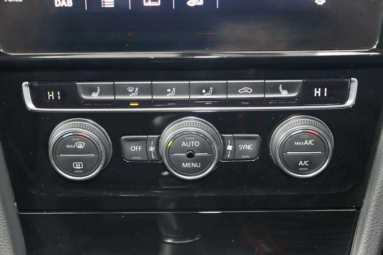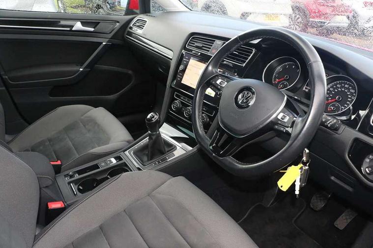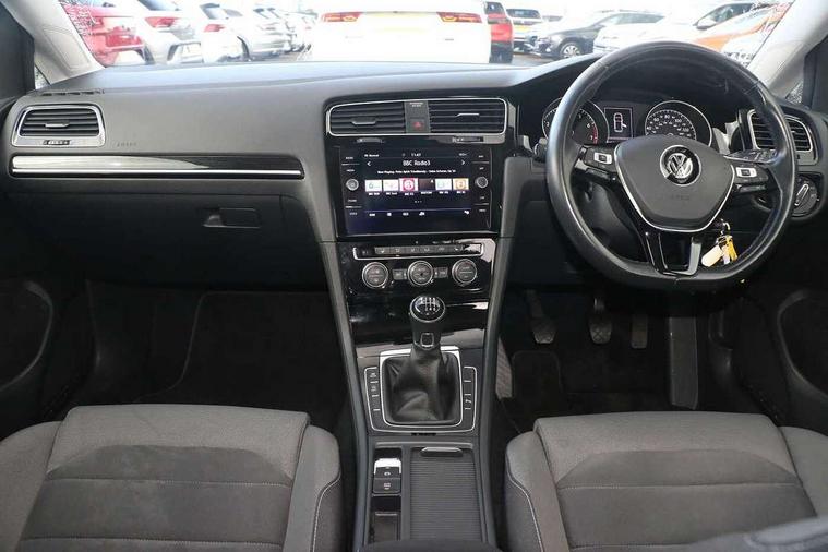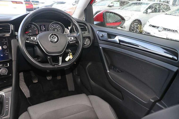 'Lights On' Reminder warning buzzer, ACC - Adaptive cruise control with front assist, forward collision warning, distance monitoring, city emergency brake and speed limiter, Bluetooth telephone and audio connection for compatible devices, Brake pad wear indicator warning light, Driver alert system, Driving Mode Selection with four preset modes - Eco, normal, sport or individual modes, Multifunction computer with visual gear change recommendation for fuel consumption, Power assisted speed sensitive electro-mechanical steering, Push tank flap, Speed limit display, Speedo, rev counter, electronic odometer, trip, service interval display, exterior temperature and fuel gauge, Stop/start system, Think blue trainer driver tips and journey analysis, Warning buzzer and light for front seatbelts unfastened, Battery regeneration during braking, XDS electronic differential lock, Composition media system, DAB Digital radio receiver, Driver Personalisation profile selection, MP3/WMA compatability, Multi device interface (MDI) via USB connection, Premium USB cable in choice of either Apple or Android smartphone compatibility, SMS Functionality, Title and cover art display, USB and SD card connectivity, Volkswagen media control, Black front air intake and radiator grille with chrome insert, Black rear diffuser, Body colour bumpers, Body colour door handles, Body colour door mirrors with integrated indicators, Chrome trimmed front air intake surrounds, Dusk sensor + automatic driving lights, Electric front windows, Electric rear windows, Electrically adjustable and heated door mirrors, Fully galvanised body, Heated rear windscreen, High level 3rd brake light incorporating LED Technology, LED front fog lights with static cornering light function, Range adjustable headlights via infotainment system with LED daytime running lights, Rear fog lamp, Rear number plate lights incorporating LED technology, Rear tinted glass 65% light absorbing from B pillar backwards, Rear window aerial, Rear window wash/wipe with intermittent wipe, Reflectors in all doors, Tailgate with integrated rear roof spoiler, Windscreen wipers/ intermittent wipe + 4 position delay, 12V socket in luggage compartment, 3 rear headrests, 4 load lashing points in luggage compartment, 60/40 split folding rear seat backrest, Bag hook in luggage compartment x 2, Climate control - 2 zone electronic air conditioning with automatic air recirculation and allergy filter, Cooled glovebox, Cover for storage compartment in centre, Dust/pollen filter, Front + rear carpet mats, Front centre armrest with storage compartment and two rear air vents, Front seat back storage pockets, Grab handles front x 2, rear x 2 with integrated coat hooks, Height and reach adjustable steering wheel, Illuminated vanity mirrors, Instrument lighting white adjustable panel illumination, Interior light delay, Isofix preparation for 2 rear child seats, Load through provision with rear centre armrest and cupholders x2, Luggage compartment lighting, Overhead storage box, Pearl grey headlining, Storage box in luggage compartment, Storage compartment in roof console with cover, Storage compartments in centre console, Storage compartments in front doors, Storage compartments in rear doors, Stowable luggage compartment cover, Sun visors, Variable boot floor, height adjustable and removable, Ambient lighting pack - Golf, Convenience Pack - Golf, Mirror pack - Golf, Winter pack - Golf, 3 rear three point seatbelts, Airbags - Driver's and front passenger's, curtain airbag, Driver's knee, front side impact and passenger's airbag deactivation switch, Anti-lock Braking System (ABS) with Hydraulic Brake Assist (HBA), Automatic post collision braking system, Child locks on rear doors, Driver/Passenger optimised head restraints, Electronic parking brake with auto hold, Electronic stability control (ESC) including Electronic differential lock (EDL) and ASR (Traction control) with deactivation via infotainment system, Front ventilated disc brakes and rear disc brakes, Pre crash preventive occupant protection, Three point height adjustable front seatbelts with tensioners, Tyre pressure loss indicator, Alarm with interior protection and deactivation via infotainment system, Electronic engine immobiliser, Chrome plated air vent surround, Chrome plated electric mirror adjustment switch surround, Chrome-plated light switch surround, Piano black decorative inserts in centre console, Tumbler decorative inserts, Steel space saver spare wheel,