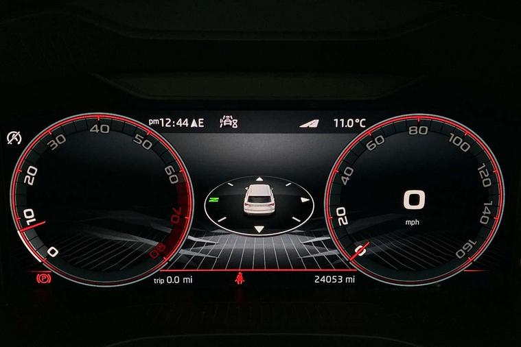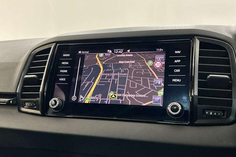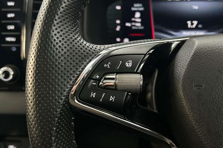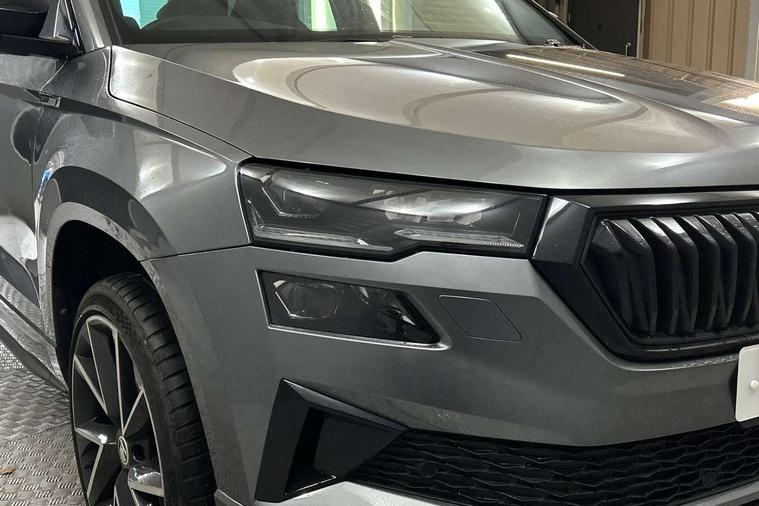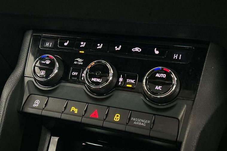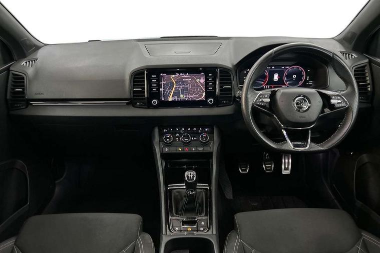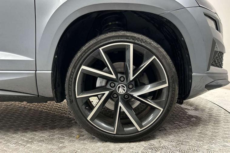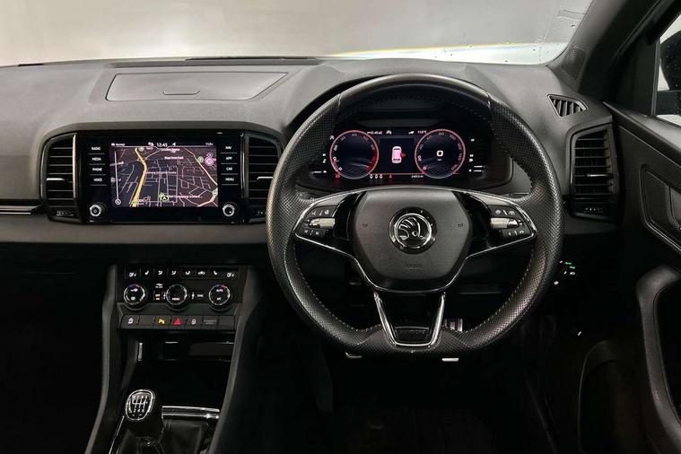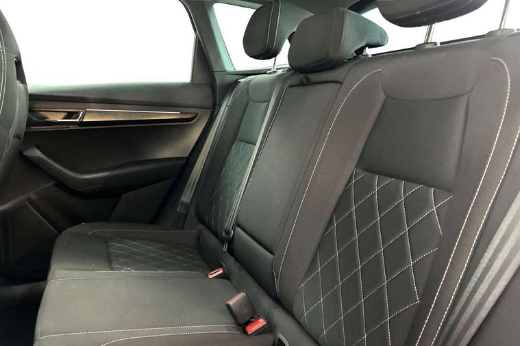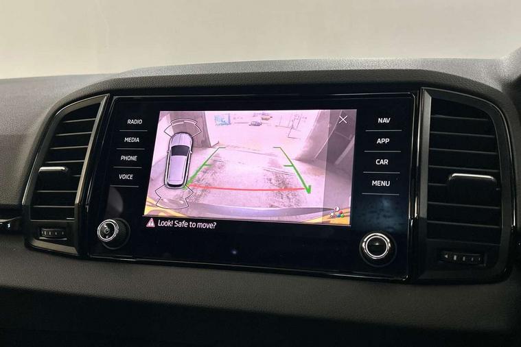 8" Digital display, Care connect, Driver fatigue sensor, Emergency services call system, Outside temperature gauge, Service interval indicator, SmartLink wireless for Apple and wired for Android, Start/stop system with regenerative braking, USB C Port x 2 in front centre console, Virtual cockpit, Virtual pedal with electrically operated boot door, 8 speakers, DAB radio with Bluetooth, USB connection, Wireless charging without wireless aerial connection, Acoustic glass, Aero front windscreen wipers with intermittent function, Auto dimming rear view mirror with light and rain sensors, Black door mirrors, Black electric window control buttons, Black radiator grille, Black roof rails, Body colour door handles, Electric front and rear windows with child proof lock, Front door steps with SportLine logo, Heated rear windscreen, LED daytime running lights, LED rear lights with high functionality welcome effect and dynamic indicators, Light assistant (coming/leaving home/tunnel light), Panoramic sliding sunroof, Plastic scuff plates, Privacy glass, Protective door side sills in body colour, Rear diffuser, Rear side wing doors, Rear spoiler, Rear window wiper with washer system and intermittent control, Safety reflectors on front doors, Skoda lettering on tailgate in black, Sportline badge on front fender, Sportline decorative inserts with badging, Sports front and rear bumpers, 1.5 litre bottle holders in driver and front passenger door panels, 12V socket in boot, 12v socket in front centre armrest with storage compartment and rear air vents, 3 rear height adjustable headrests, 3 seat bench in 2nd row, 3 spoke leather sports multifunction steering wheel and silver stitching, 4 foldable roof handles with rear coat hooks, Black floor carpet, Black roof headlining, Chrome inner door handles, Double sided boot floor, Foldable hooks in the boot, Front head restraints, Height adjustable front three point seats belts with tensioners, Height/reach adjust steering wheel, Ice scraper, Illuminated glovebox, Illuminated luggage compartment, Isofix child seat preparation outer rear, Manual lumbar support for front seats, Pen holder, Pollen filter, Rear boot cover, Rear reading lights, Rear seats fixed folding and divided 60:40, Rubbish bin door, Safety vest holder, Single front passenger seat, Storage box in upper central dashboard closed, Sunvisors with illuminated vanity mirrors, Textile floor mats, Ticket holder, Titan black interior ceiling, Tool kit, Welcome animation with sportline logo, Boot pack - Karoq, Light Pack - Karoq, Parking pack - Karoq, Automatic door unlocking in case of crash, Automatic fuel cut off in case of crash, Child locks on rear doors, Driver airbag, Electronic parking brake with auto hold function, Emergency rear braking signal, ESC including ABS, MSR, ASR, EDS, HBA, DSR, RBS, MKB and traction control, Front side airbags, Hill hold control, Knee airbags, Passenger airbag with switch-off function, Pedestrian monitor, Seatbelt reminder signalisation and pretensioner for all seats, Three point seatbelts rear, Two tone horn, Tyre pressure display, Tyre pressure monitor, Alarm with interior monitoring, back up horn and tilt sensor with safe function, Electronic engine immobiliser, Keyless entry and start/stop, Remote central locking with 2 remote folding keys, Black air vent surround, Black centre console, Satin black dashboard, Satin black door trim, 19" Sagitarius anthracite alloy wheels with matt black aero inserts, Anti-theft wheel bolts protection, Matt black aero hub caps, Storage on wheel cover,