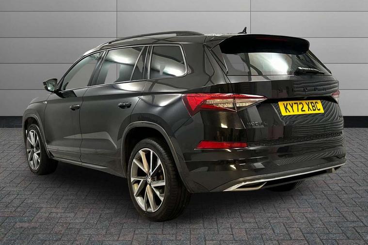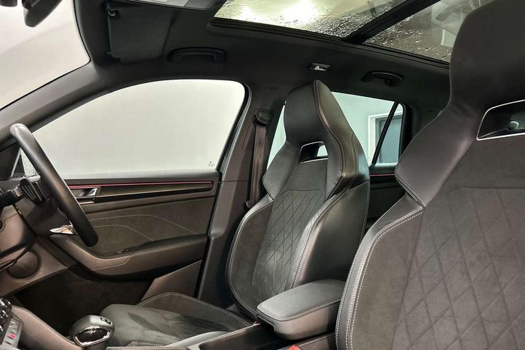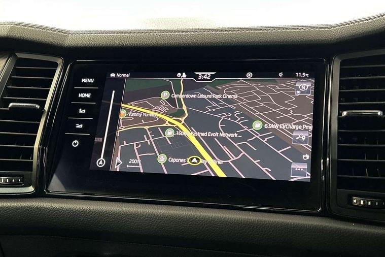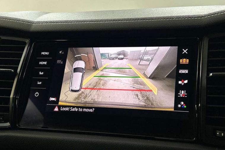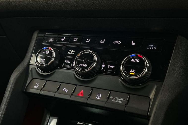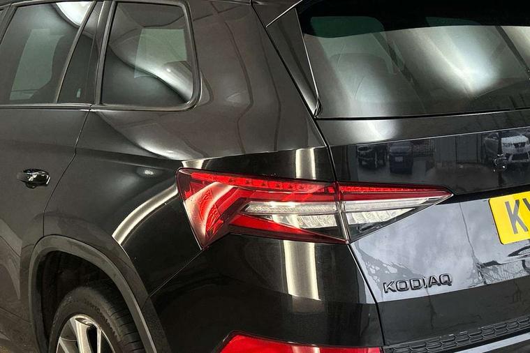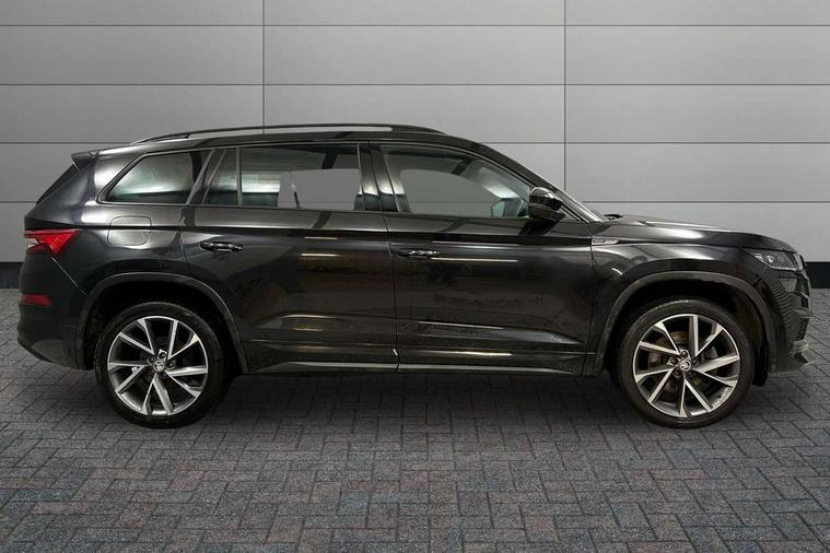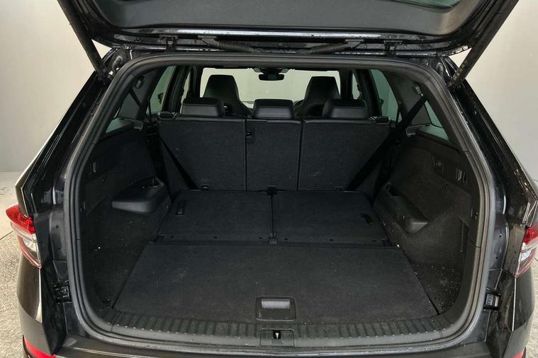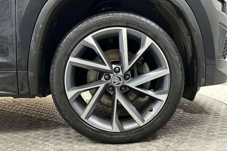 Bluetooth system, Columbus satellite navigation with 9.2" touchscreen, integrated Wi-Fi, web radio, Digital voice enhancement, E-call, ECO Stop/start function, Exterior temperature indicator, Progressive steering, Rear view camera, Smartlink wireless for apple carplay and wired for android auto, Speed limiter, USB C Port x 2 in front centre console, Wireless charging, 8 speakers, DAB Digital radio, Aero front windscreen wipers with intermittent function, Aero rear window wiper, Auto dimming rear view mirror, Black roof rails, Black sports styling including front grille and window surrounds, Black wheel arch surrounds, Body colour bumpers, Body colour door handles, Electric adjustable/heated/folding door mirrors, driver side auto dimming with boarding sports and memory function, Electric front and rear windows, Extended rear spoiler with finlets in gloss black, Front fog lights, Full LED matrix headlights with AFS (adaptive front light system), cornering function and AWL (all weather lighting system), Gloss black door mirrors, Headlight washers, Heated rear window, Invisible tailpipe, LED daytime running lights, LED rear fog light, LED third brake light in rear spoiler, Light assistant (coming/leaving home/tunnel light), Off-road style lower front bumper element, Privacy glass, Rain and light sensors, Rear diffuser, Rear LED lights (high functionality) with welcome effect and dynamic indicators, Rear side wing doors, Safety reflectors on front and rear doors, Sportline badge on front fender, Sports front and rear bumpers including lower rear chrome strip, Tailgate lettering in Black, Window control switches with black trim, Without engine designation, 12V socket in boot, 2 rails with 2 hooks, 2 seat bench in 3rd row, 3 seat bench in 2nd row, 4 foldable roof handles with rear coat hooks, 60:40 foldable rear seat with sliding adjustment and backrest angle adjustment, Aluminium pedals, Black roof headlining, Bottle holders in door panel in the 1.5 litre front and 1 litre rear, Cargo storage compartments, Chrome headlight control button, Chrome interior door handles, Coat hooks on B pillar, Covered storage compartment on driver side, Front centre armrest with storage compartment, cup holder and 12V socket, Front courtesy lights, Gear shift lever with chrome frame and black gloss insert, Grey stitching in front and rear armrests and door armrests + door inserts, Height adjustable front headrests, Illuminated and cooled glovebox, Illuminated luggage compartment, Isofix child seat fittings in outer rear seats with top tether, Manually adjustable steering column, Microsuede door panels, Net programme in boot (1x horizontal Net, 2x vertical Nets), Overhead glasses storage compartment, Pollen filter, Rear centre armrest with cupholders, Single front passenger seat, Sliding trunk cover, Small Bags on the inner sides of the front backrests, Sports seats, Sunvisors with illuminated vanity mirrors, Three rear height adjustable headrests, Ticket holder on A Pillar, Umbrella in door panel, Variable boot floor, LED Interior light pack - Kodiaq, Auto door release and activation of warning lights, Child locks on rear doors, Driver and front passenger airbag with knee airbag and front passenger airbag deactivation, Electronic parking brake with hill start assist, Emergency rear braking signal, ESC (incl. ABS+MSR+ASR+EDS+HBA+DSR+RBS+MKB), Front assist with autonomous emergency braking, Front side airbags with curtain airbags, Fuel cut off safety device, Height adjustable front 3 point seatbelts + pretensioners, Hill hold control, Rear disc brakes, Safety vest holder in door, Seat belt reminder for all seats, Tailgate unlocking from outside, Three point rear seat belts, Two tone horn, Tyre pressure monitor, Alarm with interior monitoring and tilt sensor with safe function, Anti-theft wheel bolts, Immobiliser, Keyless entry and start system (KESSY), Remote central locking with 2 keys, Black air vent surround, Carbon finish dashboard and door inserts, Grey stitching in dashboard, 20" Vega Anthracite alloy wheels, Temporary spare wheel (space saver),