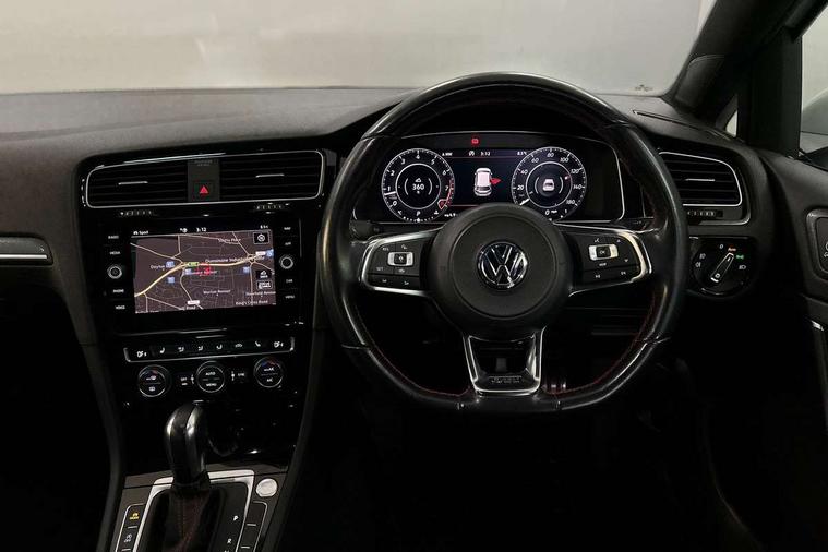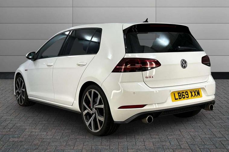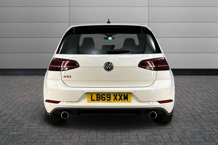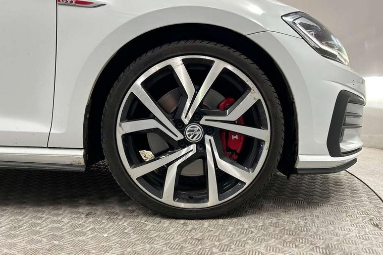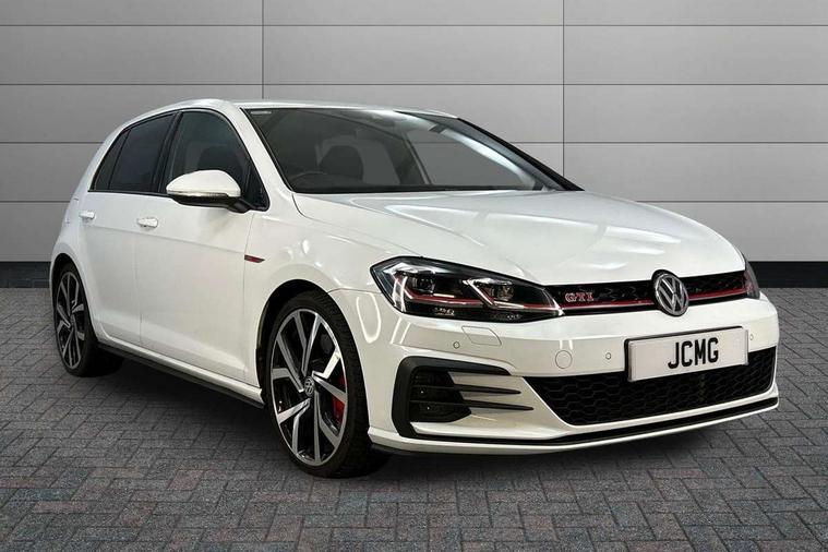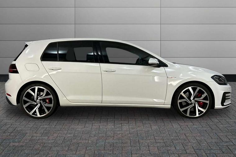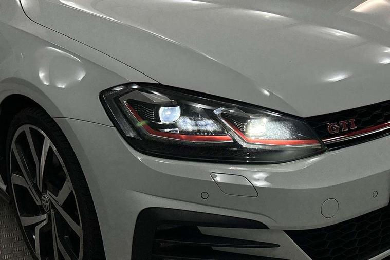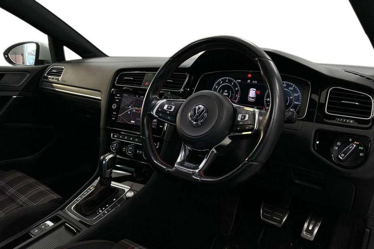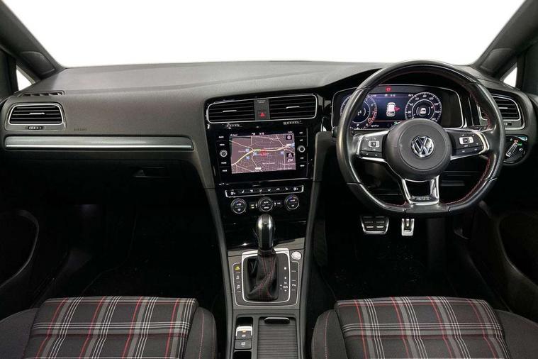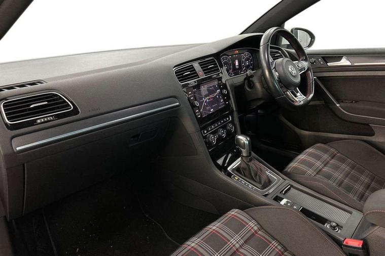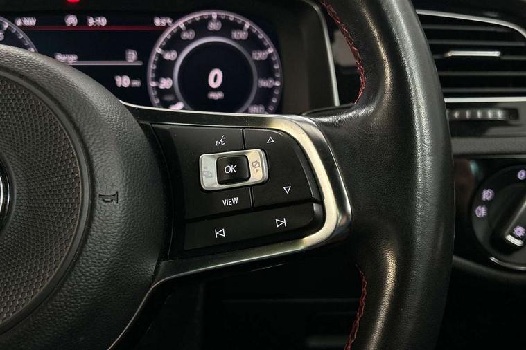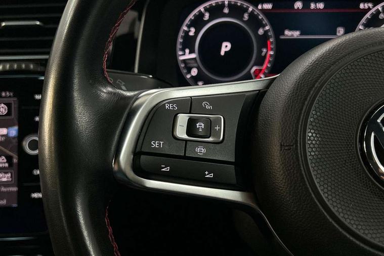 'Lights On' Reminder warning buzzer, ACC - Adaptive cruise control with front assist, forward collision warning, distance monitoring, city emergency brake and speed limiter, Active information display - 12.3" high resolution TFT display, Bluetooth telephone and audio connection for compatible devices, Brake pad wear indicator warning light, Driver alert system, Driving Mode Selection with four preset modes - Eco, normal, sport or individual modes, Multifunction computer with visual gear change recommendation for fuel consumption, Progressive steering, Push tank flap, Rear view camera, Speed limit display, Speedo, rev counter, electronic odometer, trip, service interval display, exterior temperature and fuel gauge, Stop/start system, Think blue trainer driver tips and journey analysis, Unique GTI instrument cluster, Warning buzzer and light for front seatbelts unfastened, Anti-tramp function, Battery regeneration during braking, Mechanical limited slip differential, Composition media system, DAB Digital radio receiver, Driver Personalisation profile selection, MP3/WMA compatability, Multi device interface (MDI) via USB connection, Premium USB cable in choice of either Apple or Android smartphone compatibility, SMS Functionality, Title and cover art display, USB and SD card connectivity, Volkswagen media control, 3D-LED tinted rear light clusters with indicator sweep function, Black front air intake and radiator grille with chrome insert, Body colour door handles, Body colour door mirrors with integrated indicators, Body colour rear roof spoiler, Dusk sensor + automatic driving lights, Electric front windows, Electric rear windows, Electrically adjustable and heated door mirrors, Extended sill strips flared, Front and rear unique GTI badging in red, Fully galvanised body, GTI logo in red on front and back, GTI logo lettering on front wings on right and left, Heated rear windscreen, High level 3rd brake light incorporating LED Technology, Honeycomb front air intake - Black, Honeycomb radiator grille with red stripe, LED daytime running lights incorporating red stripe, LED front fog lights, LED headlights with dynamic light assist, Rear fog lamp, Rear number plate lights incorporating LED technology, Rear window aerial, Rear window wash/wipe with intermittent wipe, Reflectors in all doors, Uniquely shaped front/rear bumpers, Windscreen wipers/ intermittent wipe + 4 position delay, 12V socket in luggage compartment, 3 rear headrests, 4 load lashing points in luggage compartment, 60/40 split folding rear seat backrest, Bag hook in luggage compartment x 2, Black rear diffuser with chrome exhaust tailpipes in left and right, Black roof lining, Climate control - 2 zone electronic air conditioning with automatic air recirculation and allergy filter, Cooled glovebox, Cover for storage compartment in centre, Dust/pollen filter, Front + rear carpet mats, Front centre armrest with storage compartment and two rear air vents, Front seat back storage pockets, Grab handles front x 2, rear x 2 with integrated coat hooks, Height and reach adjustable steering wheel, Illuminated vanity mirrors, Interior light delay, Isofix preparation for 2 rear child seats, Leather gear knob and handbrake grip, Load through provision with rear centre armrest and cupholders x2, Luggage compartment lighting, Overhead storage box, Stainless steel pedals, Storage box in luggage compartment, Storage compartment in roof console with cover, Storage compartments in centre console, Storage compartments in front doors, Storage compartments in rear doors, Stowable luggage compartment cover, Sun visors, Three spoke multifunction leather steering wheel with GTI logo and red stitching including gearknob gaiter, Variable boot floor, height adjustable and removable, Ambient lighting pack - Golf, Convenience Pack - Golf, Mirror pack - Golf, Winter pack - Golf, 3 rear three point seatbelts, Airbags - Driver's and front passenger's, curtain airbag, Driver's knee, front side impact and passenger's airbag deactivation switch, Anti-lock Braking System (ABS) with Hydraulic Brake Assist (HBA), Automatic post collision braking system, Child locks on rear doors, Driver/Passenger optimised head restraints, Electronic parking brake with auto hold, Electronic stability control (ESC) including Electronic differential lock (EDL) and ASR (Traction control) with deactivation via infotainment system, Front ventilated disc brakes and rear disc brakes, Larger diameter brake discs and GTI logo on red brake calipers, Pre crash preventive occupant protection, Three point height adjustable front seatbelts with tensioners, Tyre pressure loss indicator, Alarm with interior protection and deactivation via infotainment system, Electronic engine immobiliser, Keyless entry with start/stop button on centre console, Chrome plated air vent surround, Chrome plated electric mirror adjustment switch surround, Chrome-plated light switch surround, Honeycomb black decorative inserts, Piano black decorative inserts in centre console, Steel space saver spare wheel,