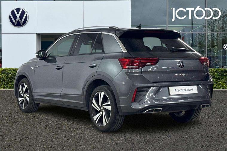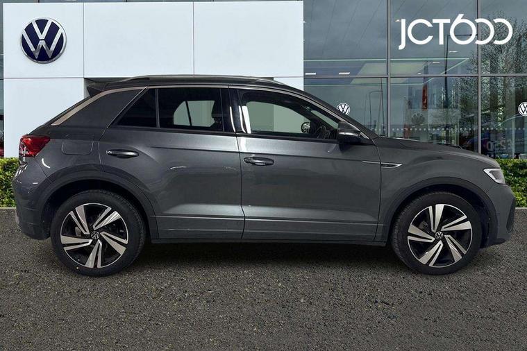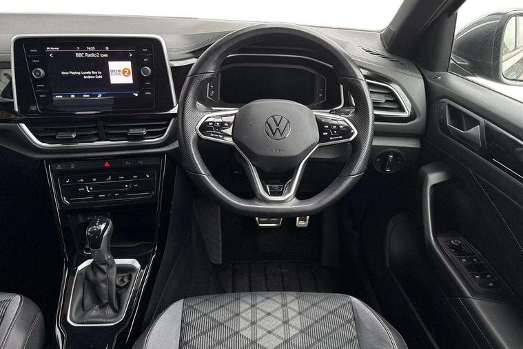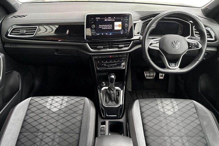 10.25" Digital cockpit pro, Bluetooth mobile phone interface, Driver alert system with fatigue detection, Driver tips and journey analysis, Emergency call service, Lane keeping system Lane Assist, Modified key software - reduce switch off time for key status change to Long no motion, Online services, Park assist including front and rear parking sensors, Service interval indicator, Tailgate/trunk lid release from outside, Think blue trainer driver tips and journey analysis, Warning sound and light for front seatbelts unfastened, Wireless app connect, Battery regeneration during braking, Start/stop function with battery regeneration, Diversity antenna for FM reception, Front and rear 6 speakers, Music playback - MP3, WMA and AAC files, Premium USB cable in choice of either Apple or Android smartphone compatibility, SD card slot, Simultaneous pairing of 2 compatible mobile devices, Title and cover art display, We Connect and We Connect Plus functionality, 3rd brake light, Auto dimming interior rear view mirror, Automatic hazard lights activation under emergency braking, Automatic headlight control with LED separate daytime running lights with coming/leaving home function, Extended roof spoiler, Exterior mirrors aspherical on driver side, convex on front passenger side, External USB type C socket and charging sockets, Front windscreen wiper with intermittent wipe and 4 position delay, Heated rear window, LED Plus headlamps, LED rear combination lamps, LED rear number plate lights, LED tail lamp rear comination lamps, Power windows with comfort operation and circuit breaker, R-Line design body coloured bumpers, Rain sensor, Rear exhaust tailpipe, Rear fog light on one side and reversing lights on both sides, Rear side wing doors, Rear wash/wipe with intermittent wipe setting, Remote electrically foldable door mirrors, puddle lights and reverse activated passenger's door mirror, 12V power socket in centre console, 3 rear head restraints, 3 seat bench in 2nd row, 4 load lashing points in luggage compartment, Air care climatronic air conditoning system with active combination filter and 2-zone temperature control, Black roof lining, Chrome plated radiator grille inserts, air vent surrounds and light switch surrounds, Door and side trim panel with leatherette insert, Drawer under drivers seat, Front + rear carpet mats, Front centre armrest, Front cupholders x 2, Front footwell illumination, Front reading light, Front scuff plates with R logo, Instrument lighting, white adjustable panel illumination, Interior ambient lighting and surround lighting, Interior light delay, Isofix child seat preparation, Leather gearshift handle, Load-through provision with cup holder when folded down ('Unsplit rear seat bench, split folding backrest, with centre armrest), Luggage compartment lighting, Single front passenger seat, Stainless steel pedals, Storage compartment in left and right luggage area, Storage compartment in rear doors, Storage compartments in driver and front passenger doors, Sunvisors with illuminated vanity mirrors, Variable boot floor, height adjustable and removable, Driver assistance pack without proactive passenger protection - T-Roc, 3 point height adj front seatbelts + pretensioners, 3 point seatbelts in outer rear with ECE label, ABS, Child locks on rear doors, Driver and front passenger airbag with front passenger airbag deactivation, Driver and front passenger safety-optimised head restraints, Drivers seatbelt reminder, Electronic parking brake, Electronic Stability Control (ESC) inc EDL (Electronic Differential Lock) and ASR (Traction Control), Front and rear passengers curtain airbag system including front side airbags, Front assist with city emergency braking and pedestrian monitoring, Front seat side impact airbags, Hill start assist, Predictive pedestrian protection, Rear disc brakes, Single tone horn, Tyre pressure loss indicator, Volkswagen roadside assistance, Alarm with interior protection, Anti-theft alarm system with interior monitoring, backup horn, and towing protection, Remote central locking with SAFELOCK, radio remote control with 2 remote control folding keys, Trims for alloy wheels,
