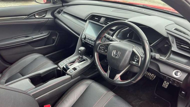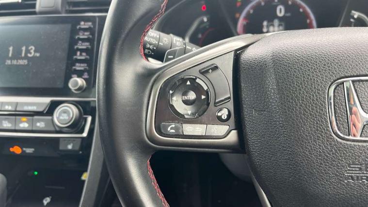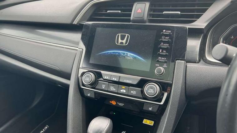 Adaptive cruise control, Adaptive motion for electric power steering, BLIS (Blind Spot Information System) with dual power heated blind spot mirrors, Bluetooth hands free telephone connection, Easy fuel capless refuelling system, Economy mode, Electric power steering wheel with variable gear ratio steering, Emergency stop signalling system, Forward collision warning, Front and rear parking sensors, Honda CONNECT with GARMN Navigation + 7" touchscreen, AM/FM, internet radio, aha app integration and internet browsing, Idle stop, Intelligent speed limiter, Lane departure warning system, Lane keep assist, Low speed following, Multi-information display, Rear parking camera, Road departure mitigation, Smartphone wireless charging plate, Traffic sign recognition, Adaptive damping system, Vehicle stability assist, 'Shark fin' mobile antenna, 11 speakers, 2x USB and HDMI, 465w Power audio system, Auxiliary socket for external MP3 player, Digital Audio Broadcast (DAB) Tuner, Premium audio system, Steering wheel mounted audio controls, Subwoofer, Auto dimming rear view mirror, Automatic coming/leaving home lighting function, Automatic headlights with dusk sensor, Automatic rain sensing wipers, Black grille, Body colour door handles, Body colour door mirrors, Chrome window surround, Electric adjustable heated door mirrors, Electric front/rear windows/one touch operation, Electrically folding door mirrors, Headlight washers, High beam assist, LED daytime running lights, LED front fog lights, LED Headlights, LED rear lights, Panorama glass roof, Privacy glass, Rear spoiler, Single exhaust tailpipe, 4 Cargo net hook, 60/40 split folding rear seat, Alloy pedals, Ambient light in roof, Blue meter illumination, Centre console storage and sliding armrest, Driver and front passenger seat electric lumbar adjustment, Driver's seat height adjustment, Driver/passenger front seatback pockets, Dual climate control air conditioning system, Front accessory power socket, Front map lights, Front/rear courtesy lights, Gear shift indicator, Glovebox light, Heated front seats, Isofix system on outer rear seats, Leather steering wheel, Leather upholstery, Luggage floor box, Paddle shift controls, Rear air vents, Rear armrest with cupholder, Sunvisors with illuminated vanity mirrors, Sunvisors with vanity mirrors, Three height adjustable rear head restraints, Tilt/telescopic adjustable steering wheel, Tonneau cover, Trunk light, 5 three point seatbelts, ABS+EBD+Brake assist, Airbags - driver and front passenger, Anti-whiplash front headrests, Collision mitigation braking system, Deflation detection system, Driver SRS airbag (single stage inflation), Electronic parking brake with auto hold, Front and rear curtain airbags, Front and rear seat belt with emergency locking retractor, Front and rear seat belts with emergency locking retractor (ELR), Front seatbelt pretensioners, Front side airbags, Hill start assist, Passenger airbag deactivate switch, Tyre pressure warning, Immobiliser, Mirrors and windows key fob, Remote central locking with 2 jack knife keys, Security alarm, Selectable door unlock, Smart entry + Smart start, 17" Black alloy wheels, Tyre repair kit,