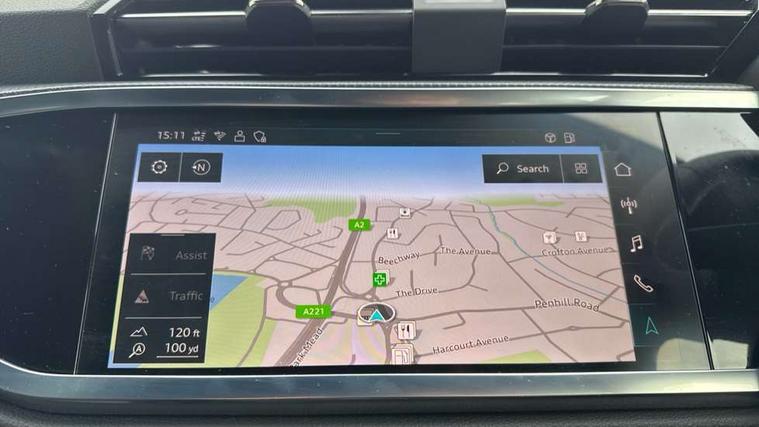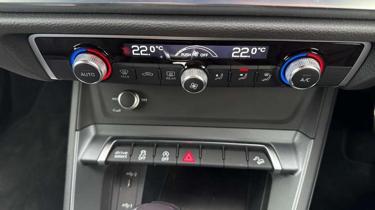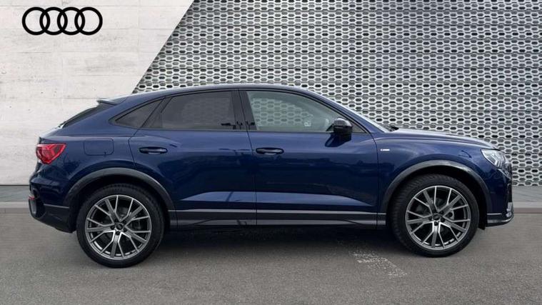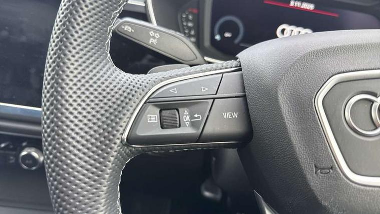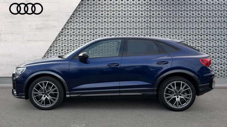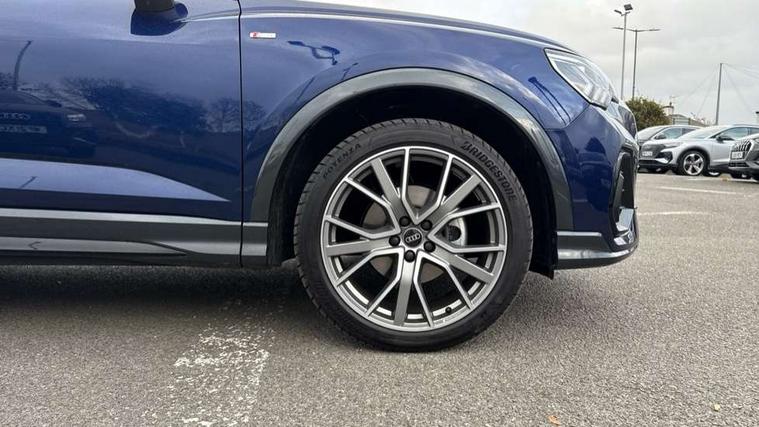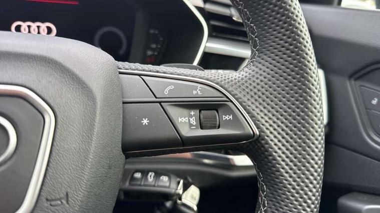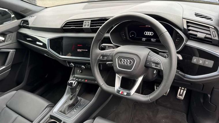 Audi connect safety and service, Audi drive select, Audi lane departure warning, Audi Virtual Cockpit - 10.25" display, Bluetooth interface, Camera based traffic sign recognition, Distraction and Fatigue warning, Legal emergency call, MMI Navigation Plus with high resolution 10.1 inch touchscreen colour display, Power operated tailgate, Progressive steering, Service interval indicator, Smartphone interface includes wireless Apple carplay/Android Auto, Start stop system with recuperation, Voice control system with natural language interaction, Sports suspension, 2 USB-C ports with charge and data functions, 6 passive loudspeakers, DAB digital radio module, Acoustic windscreen, Audi Beam uses LEDs to project the Audi logo onto the ground as you exit your Q3, Auto dimming door mirrors, Auto dimming frameless rear view mirror, Electrically folding, adjustable and heated door mirrors with integrated LED side indicators and kerb view function for passenger side, Front and rear electric windows, Front fog lights, Front underbody protection in manhattan grey paint finish, High gloss black finish B and C pillars, Honeycomb design radiator grille in matt anthracite black, LED Dynamic rear indicators, LED headlights with LED daytime running lights, LED rear lights, LED third brake light, Privacy glass dark tinted rear and rear-side windows (from B-pillar backwards), Rain and light sensors, Rear diffuser grille in grained matt black, Rear diffuser strip in matt anthracite black, Rear side wing doors, Rear underbody protection in matt black, Rear wiper, S line front and rear bumpers and side skirts in contrasting Manhattan grey paint finish, Variable front intermittent wipers, 12V socket in rear centre console, 3 seat bench in 2nd row, 40:20:40 folding with manual adjustment for 60:40 forwards/backwards position and backrest angle, Adjustable rear seat bench/backrest with centre armrest and cupholder, Black carpet mats, Black cloth headlining, Dual zone electronic climate control, Electric lumbar support, Front and rear black floor mats with contrast stitching in rock grey, Front and rear headrests, Front centre armrest, Height and reach adjustable steering wheel, Illuminated door sill trims with S logo, ISOFIX child seat mounting for front passenger with airbag deactivation and outer rear seat including top tether attachment point for outer rear seats, Luggage compartment sill protection in stainless steel, Manual front seats with height adjustment, Perforated leather gearknob, Single front passenger seat, Stainless steel pedals, Twin leather upholstery with front sport seats + S embossing, Black styling pack - Q3, Non smoking pack - Q3, 3x3 point rear seatbelts, 6 airbags - Driver, front passenger, curtain and side windows, Audi pre-sense front with pedestrain and cyclist recognition, Electrically operated child locks on rear doors, Electromechanical parking brake, Electronic stabilisation control including ABS, ASR and EDL, Front seatbelt reminder, Hill descent control, Hill hold assist, Pre sense basic, Seatbelt monitoring, Tyre pressure warning, Warning triangle and first aid kit, Anti theft wheel bolts, Immobiliser, Remote central locking, Thatcham approved category 1 anti theft alarm, Aluminium look interior elements, Detail dashboard around MMI touch colour display in glass look, black with surround in aluminium look, Leatherette door armrest, Piano black inlay,