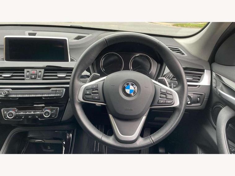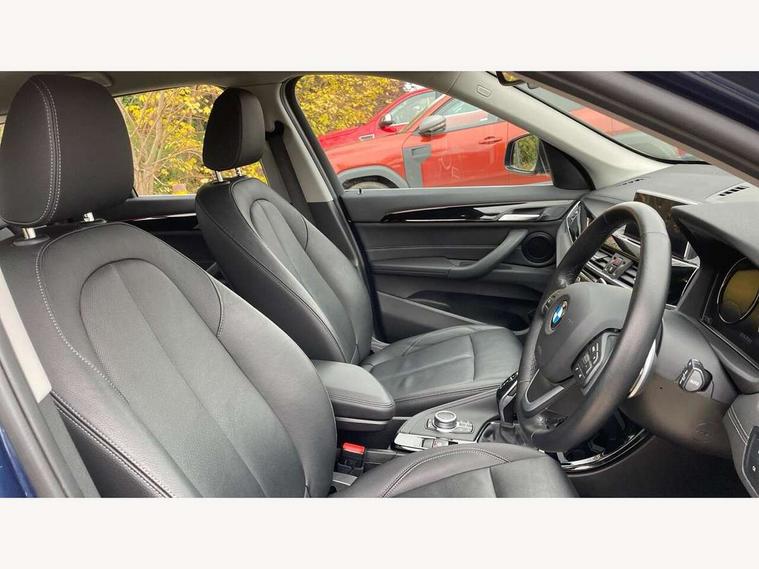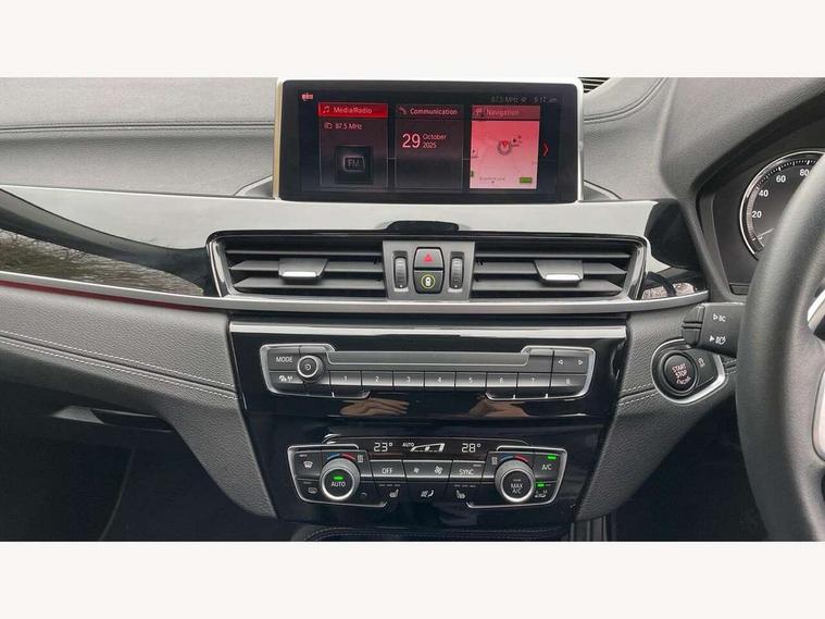Ambient temperature display, Apple CarPlay, Arrow pointers, north up, direction of travel and perspective map displays, Attentiveness assist, Automatic tailgate opening, BMW ConnectedDrive, BMW Online services, BMW remote services, BMW Teleservices, Brake pad wear indicator in front and rear, Characteristic map controlled oil pump system, Electro hydraulically controlled multi plate clutch in rear axle, Energy efficient operating strategy, Front/rear park distance control (PDC), Instrument cluster with Black optic display featuring superimposed dials and 5.7" colour display, Instrument cluster with speedometer with miles per hour read out, tachometer and fuel gauge, Integrated hard drive with map data updates via USB interface, Lights on warning by audio warning signal when ignition is switched off, On board computer, Operation by iDrive with direct selection buttons and 8 programmable buttons, Optimum shift indicator, Outside temperature gauge, Park assist system, Personal Profile - automatic lock when driving away selectable, Real time traffic information, Rigidly mounted rear subframe - Multi link construction with separate spring / damper configuration and excellent driving characteristics, Service interval indicator, Servotronic PAS, Tyre puncture warning system, Variable and stepless distribution of drive torque between front and rear axle, 12V compressor with integrated sealant injection bottle and hose, Aluminium lightweight construction including crankcase, Anti-roll bars, Balancer shaft, Diesel particulate filter, DOHC valvetrain with two upper camshafts, Double VANOS, Drive performance control with ECO PRO comfort + sport mode, Eight speed sport automatic transmission, High precision injection, Incorrect fuelling protection, Performance Control, Standard suspension, Stop/start function, Transmission of power to rear axle via front axle differential and two-part cardan shaft, Twin tube gas filled shock absorbers with degressive characteristic curve, xDrive intelligent four wheel drive system, DAB Digital radio, Adjustable headlights, Aero curtain, Automatically dimming rear view mirror, BMW Icon design LED daytime driving lights, Body colour bumpers, Body colour door handles, Body colour door mirrors, Direction indicator side lights integrated exterior mirrors, Dynamic brake lights, Electric windows - front and rear, with open/close fingertip control, anti-trap facility and comfort closing, Electrically adjustable door mirrors with aspheric on driver side, convex on passenger side with integrated indicators, Exclusive front door sill finishers with BMW designation, Exterior mirrors - electrically folding with anti-dazzle, Follow me home headlights, Front air guide finished in black silver, Front air inlets in matt black with silver finisher matt, Front and rear bumper system, Front bumper underbody protection in silver matt, Green tinted heat protection glazing glass, Headlight beam throw control, Heated door mirrors, Heated windscreen washer jets, High level third brake light, Kidney grille with 14 chrome matt aluminium fronted with black matt sides vertical bars, LED direction indicator lights in headlight eyebrow, LED front fog lights, Lightweight engineering, Model designation, Rain sensor including auto headlights activation, Rear bumper underbody protection in black silver with silver matt insert, Rear fog lights, Rear window aerial, Rear window wash/wipe, Reversing light in rear light cluster, Roof mouldings in matt black, Shark fin antenna, Sill cover matt black with matt silver insert, Twin chrome exhaust tailpipes x2, Two eye face design on light, Visible VIN plate, Welcome lighting, 12v power point in centre console, 2 cup holders in front, 3 rear headrests, 3 spoke sport leather steering wheel, 40:20:40 split folding rear bench seat, Black door sill finishers with BMW designation, Boot light, Centre armrest in 20 degree part rear seat backrest, Child seat ISOFIX attachment for two outer rear seats and front passenger seat with anchorage points, Conditioned based service, Dakota leather upholstery with perforation and contrast stitching, Driver and front passenger heated seats, Driver/front passenger seat backrest back with luggage net, Driver/passenger sunvisors with ticket holders, Dual zone automatic air conditioning, Four grab handles integrated in roof linings, Front and rear side armrests integrated into door trim, Front centre armrest/sliding cover, Front centre interior light over interior mirror and rear centre automatic interior light when door is opened/ignition switched off or via remote key, Front/rear adjustable head restraints, Illuminated glovebox, Leather gearknob/gaiter/handbrake grip, Luggage area underfloor compartment, Luggage compartment access via recessed handle below tailgate, Luggage compartment lighting, Luggage compartment loading edge with stainless steel insert, Manually adjustment steering wheel column, Multifunction steering wheel, Rear coded belt buckles, Single turbo charger, Standing free front adjustable armrest and fixed in different positions, Steering wheel gearshift paddles, Velour floor carpets, Extended lights pack - X1, Extended storage package - X1, ABS/EBD, Audio/visual collision warning system, Automatic Stability Control (ASC), Battery safety cut-off, BMW emergency call, Brake drying, Brake energy regeneration, Braking readiness, Cornering brake control (CBC), Crash Sensor - activates hazard/interior lighting + unlocks doors, Driver/Front Passenger airbags, Driver/front passenger side airbags, Dynamic brake control, Dynamic stability control + (DSC+), Dynamic Traction Control - DTC, Electronic differential lock control (EDLC), Electronic parking brake, Front and rear head airbags, Front passenger airbag deactivation, Front seatbelt force limiters, Front ventilated disc brakes, Hill start assist, Pyrotechnically pre-tensioned front seatbelts, Rear disc brakes, Rear door child safety locks, Seatbelt security check for driv