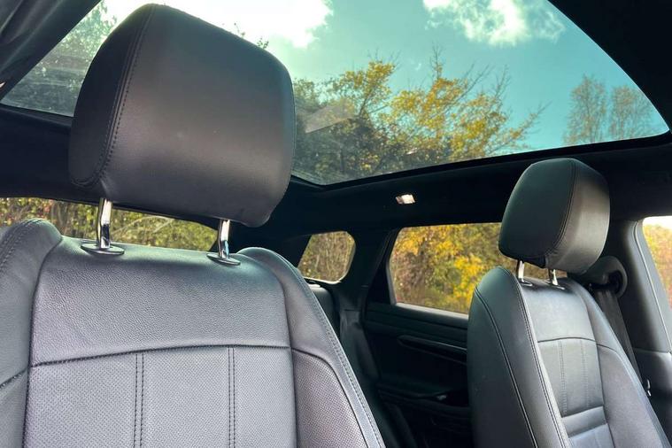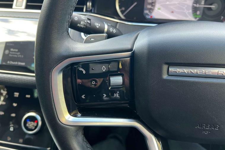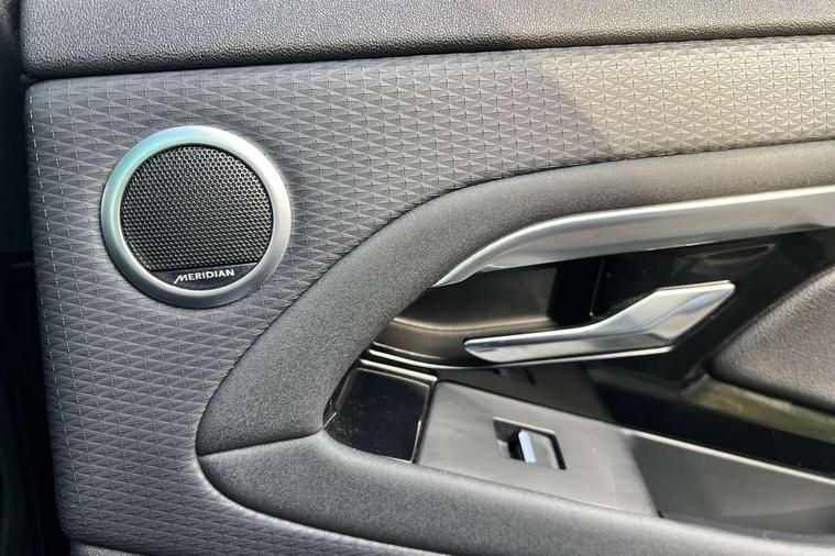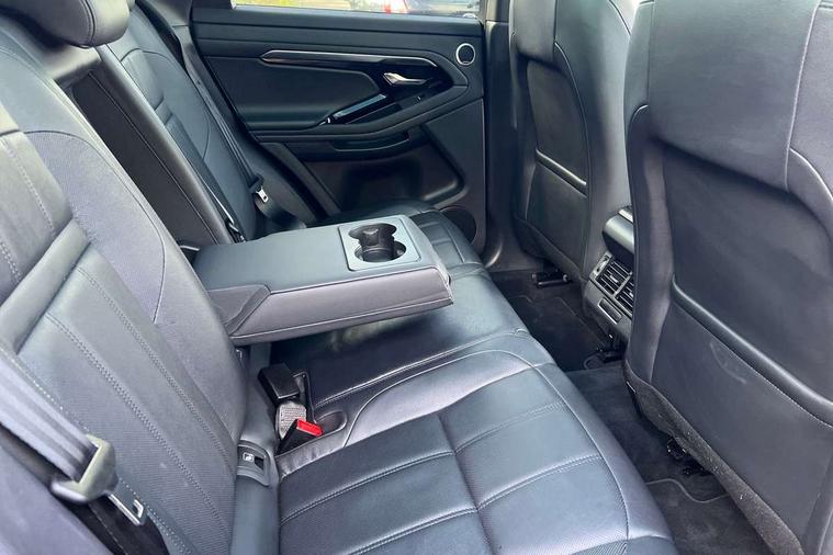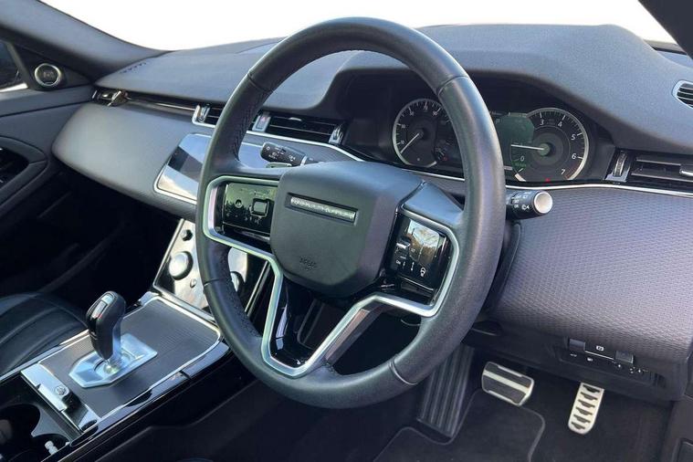 Adaptive cruise control, Android Auto, Apple car play, Bluetooth connectivity, Brake pad wear indicator warning light, Driver condition monitor, eCall emergency system, Electronic power assisted steering (EPAS), Front and rear parking aid, InControl remote, Land Rover InControl apps, Lane keep assist, Pivi pro connected includes upgraded infotainment, connected navigation pro, Nuance speech licence, Push button starter, Traffic sign recognition with adaptive speed limiter, Voice control system, 7 kW onboard charger, All terrain progress control, Electric rear axle drive, Home charging cable, Large fuel tank, Passive suspension, Public charging cable, Terrain Response 2 Auto, Digital Audio Broadcast radio-DAB, Steering wheel mounted controls, Auto headlights, Daytime running lights, Electric windows with one touch open/close and anti trap, Evoque and R-Dynamic badge, Flush deployable exterior door handles, Heated rear window with timer, Heated washer jets, Heated windscreen, P300e badge, Power fold, auto-dimming, heated door mirrors with approach lights and auto dimming driver side, Privacy glass, Rain sensing windscreen wipers, Rear fog lights, Rear side wing doors, Rear wiper, Tailgate spoiler, Third brake light, 40:20:40 split folding rear seats with centre headrest and armrest, Ambient interior lighting, Bright metal pedals, Heated steering wheel, Isofix system on outer rear seats, Overhead lighting console, Overhead stowage for sunglasses, Passive front head restraints, Rear air vents, Rear centre headrest, Rear head restraints, Satin chrome gearshift paddles, Single passenger seat, Sunvisors with illuminated vanity mirrors, Twin sliding front centre armrest, 3 rear 3 point seatbelts, Anti-lock braking system (ABS), Customer configurable autolock, DSC - Dynamic Stability Control, Electronic brake force distribution, Electronic parking brake, Electronic traction control, Emergency braking, Front and rear seatbelt reminder, Hill descent control, Hill launch assist, Low traction launch, Power operated child locks, Roll stability control, Six airbags - Driver and passenger airbags/driver knee airbag/front side airbag and curtain airbags, Torque vectoring brake, Tyre pressure monitoring system, Alarm, Immobiliser, Intrusion sensor, Locking wheel nuts,