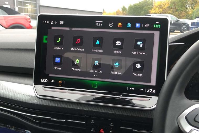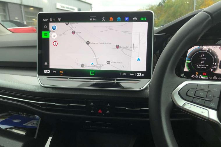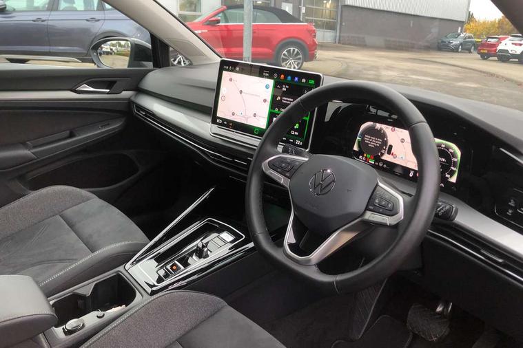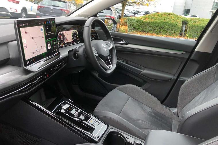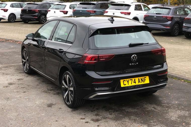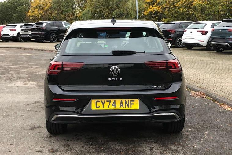 Activated carbon canister, Adaptive cruise control (ACC) with speed limiter and front assist (reacting to vehicles pedestrians and cyclists), Advanced driver attention and drowsiness monitor, Car2X intelligent vehicle networking, Discover media navigation system, Driver alert system, Dynamic road sign display, E-Sim card for online connectivity, eCall emergency call system, Emergency assist, Front and rear parking sensors, Infotainment system with scalable module options Version 2, Lane assist, traffic jam assist and emergency assist, Multi-color Digital cockpit pro, selection of different info profile possible, Multifunction camera for distance control, Oncoming vehicle braking when turning including swerve support, Power assisted speed sensitive steering, Side assist blind spot lane change system, rear traffic alert and exit warning system, Speedo, rev counter, electronic odometer, trip, service interval display, exterior temperature and fuel gauge, Traffic jam assist, Voice assistant and voice enhancer with chat GPT, Warning signal and warning light for front and rear seatbelts not fastened, We connect plus preparation, We connect preparation, Wireless app connect, Charging cable Mode 2 Type 2 (10A), Charging cable mode 3, type 2 32 A, Hybrid propulsion system, Start-stop system with battery regeneration (recuperation - energy recovery during braking), XDS electronic differential lock for improved traction and handling, 12.9" infotainment display, 2 USB C ports in front, 2 USB charging sockets on the centre console in the rear charging capacity upto 45W, 6 Speakers - 4 in front and 2 in rear with central speaker, Comfort telephony + wireless charging, without wireless aerial connection, DAB radio, Diversity antenna for FM reception, Gaming platform via car app, 4 speed front wiper/interval delay, Auto headlights, Automatic headlamp activation with Coming home and Leaving home feature, Body colour bumpers, Body colour door handles, Body colour door mirrors, Body colour rear roof spoiler, Chrome plated radiator grille inserts and light switch surrounds, Chrome trimmed front air intake surrounds, Chrome trims on the side window bottom, Electrically heated and adjustable door mirrors with memory feature, Exterior mirrors convex on the left and aspherical on the right, Front and rear electric windows, Front windscreen washers, Heat insulating windshield made of laminated glass, High level 3rd brake light, Illuminated front grille, Illuminated molding between headlights and illuminated door handle recesses, LED daytime running lights, LED License plate illumination, Rear exhaust tailpipe, Rear fog light on one side and reversing lights on both sides, Rear side wing doors, Rear windscreen washer and wiper with interval delay, Remote electrically foldable door mirrors, puddle lights and reverse activated passenger's door mirror, Welcome light with surround lighting, 12V socket in front centre console, 12V socket in luggage compartment, 3 rear head restraints, 3 seat bench in 2nd row, Air care climatronic 3 Zone automatic climate control with rear air conditioning control panel, Ambient lighting with 30 colour including LED light unit in front footwell with selectable light colour, Carpet mats, front and rear, Door insert, side trim panel and arm support in leatherette, Front centre armrest with storage compartment, Front cupholders x 2, Glovebox, Height and reach adjustable steering wheel, Isofix child seat preparation for 2 rear child seats and front passenger seat, Luggage compartment lighting, Plastic gear knob, Rear cupholder and loadthough, Removable luggage compartment cover, Single front passenger seat, Split folding backrest with centre armrest and unsplit rear seat bench, Standard pedal cluster, Storm black instrument panel, Storm grey roof lining, Sun visors with illuminated vanity mirrors, Driver assistance pack - Golf DSG Estate/Hatchback, Light and vision pack - Golf Estate/Hatchback, 3 point height adj front seatbelts + pretensioners, 3 rear three point seatbelts, ABS, Autonomous emergency braking front assist with pedestrian and cyclist monitoring, Child locks on rear doors, Driver and front passenger airbag with front passenger airbag deactivation, Drivers and front passengers safety optimised head restraints, Electronic parking brake with auto hold, ESC (Electronic Stability Control), Front centre airbag, Front side airbags with curtain airbags, Hill start assist, Rear disc brakes, Two tone horn, Tyre pressure monitoring system, Volkswagen roadside assistance, Alarm with interior protection, Anti theft wheel bolts, Electronic engine immobiliser, Keyless start with SAFE lock, New brushed dark metal decorative inserts for dashboard and front door panels, Tool kit for tyre mobility set, Tyre mobility kit Includes 12V compressor and tyre sealant,