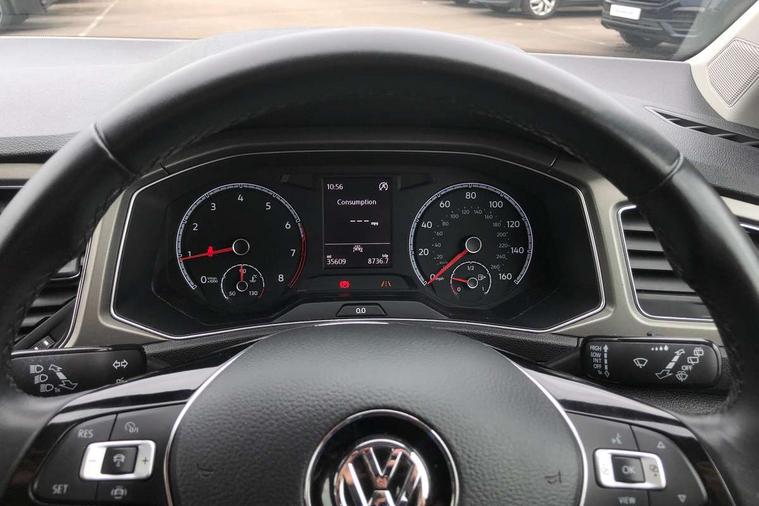 'Lights On' Reminder warning buzzer, 2 USB connection charging sockets, Adaptive cruise control with front assist, radar sensor controlled distance monitoring, city emergency braking, App-Connect, Automatic start/stop system, Bluetooth telephone and audio connection for compatible devices, Car information display, Driver tips and journey analysis, Lane assist, Multifunction computer with visual gear change recommendation for fuel consumption, Service interval indicator, Think blue trainer driver tips and journey analysis, Warning sound and light for doors and tailgate open, Warning sound and light for front seatbelts unfastened, We Connect Go Dongle, Battery regeneration during braking, DAB Digital radio, Multi device interface (MDI) with USB connection, Music playback - MP3, WMA and AAC files, Premium USB cable in choice of either Apple or Android smartphone compatibility, SD card slot, Simultaneous pairing of 2 compatible mobile devices, SMS functionality - read, compose and send SMS messages using touch-screen display, Title and cover art display, Auto dimming interior rear view mirror, Automatic hazard lights activation under emergency braking, Black grained lower door protectors, Black grained wheel arches, Body colour bumpers with silver metallic underbody fascia, Body colour door handles, Chrome trim on upper and lower radiator grille, Dusk sensor, Electrically foldable, adjustable and heated door mirrors with puddle lights and reverse activated kerb-view adjustment on passenger's door mirror, Front and rear electric windows, Front windscreen wiper with intermittent wipe and 4 position delay, Fully galvanised body, Heated rear window, High level 3rd brake light, LED rear number plate lights, Manual coming/automatic leaving home lighting function, Rain sensor, Rear wash/wipe with intermittent wipe setting, 12V socket in centre console storage area, 2 front reading lights, 3 rear head restraints, 4 load lashing points in luggage compartment, Climate control - 2 zone electronic air conditioning with automatic air recirculation and allergy filter, Drawer under drivers seat, Front centre armrest with storage compartment, longitudinal and height adjustable and two rear air vents, Front cupholders x 2, Front seat back storage pockets, Glovebox, Height adjustable front seats, Height/reach adjust steering wheel, Illuminated vanity mirrors, Instrument lighting, white adjustable panel illumination, Interior light delay, Isofix easy fit child seat preparation for 2 outer rear seats, Load through provision with single cup holder when folded down, Luggage compartment cover, removable, Luggage compartment lighting, Split folding rear seat backrests with centre armrest, Storage compartment in left and right luggage area, Storage compartment in rear doors, Storage compartments in driver and front passenger doors, 3 rear three point seatbelts, ABS, Curtain airbags, Driver and front passenger safety-optimised head restraints, Drivers and front passengers airbags with passengers deactivation switch, Electronic parking brake with auto hold, Electronic stability control (ESC) includes ASR, EDL, EDTC and trailer stabilisation function, Front seat side impact airbags, Predictive pedestrian protection, Rigid safety cell with front and rear crumple zones, Three point height adjust front seatbelts + pretensioners, Tyre pressure loss indicator, Ventilated front and rear disc brakes, Volkswagen roadside assistance, Alarm with interior protection and deactivation via infotainment system, Electronic engine immobiliser, Remote central locking with 2 remote folding keys, Limestone grey decorative inserts in dash and door panel, Steel space saver spare wheel,