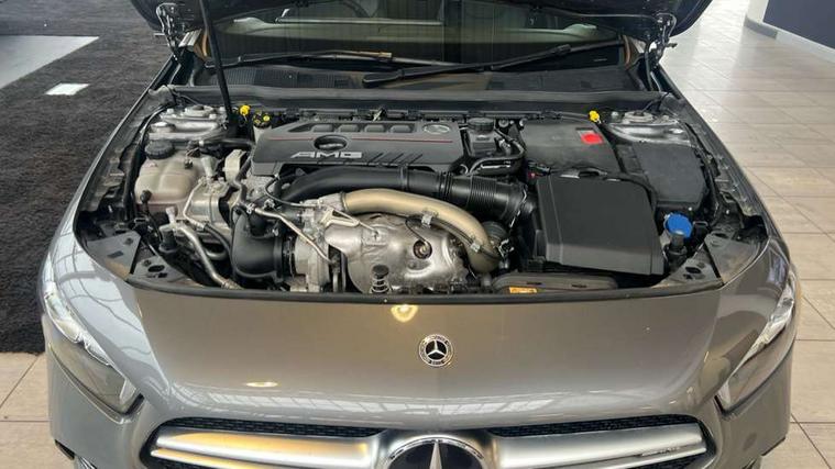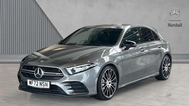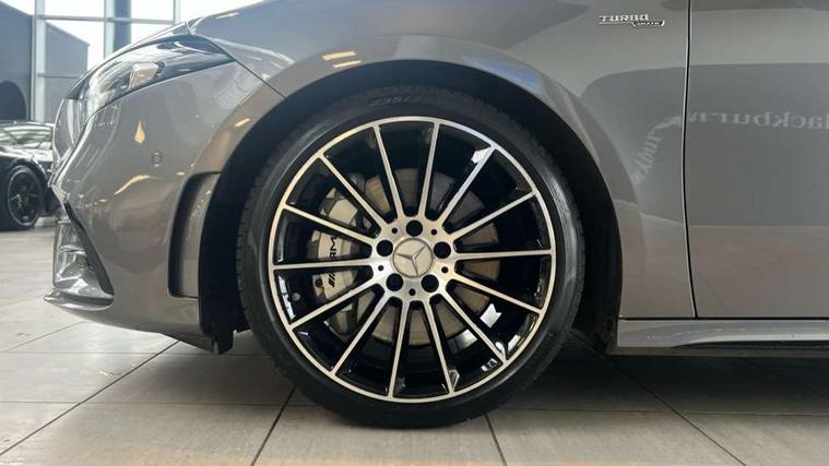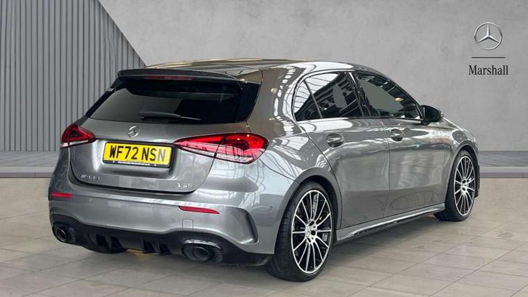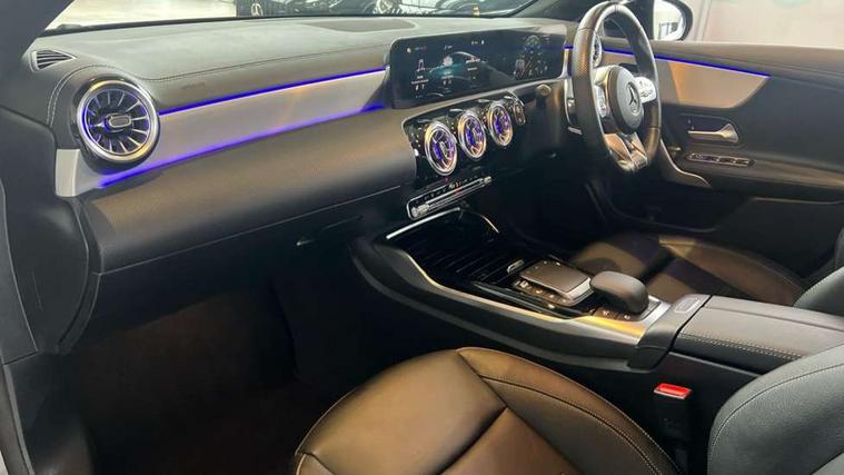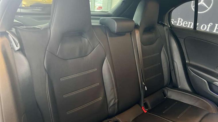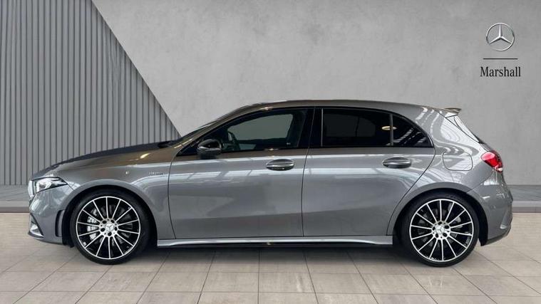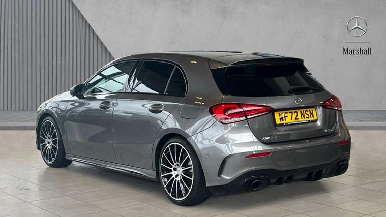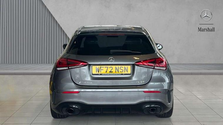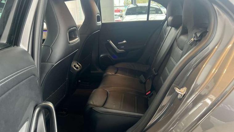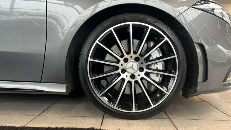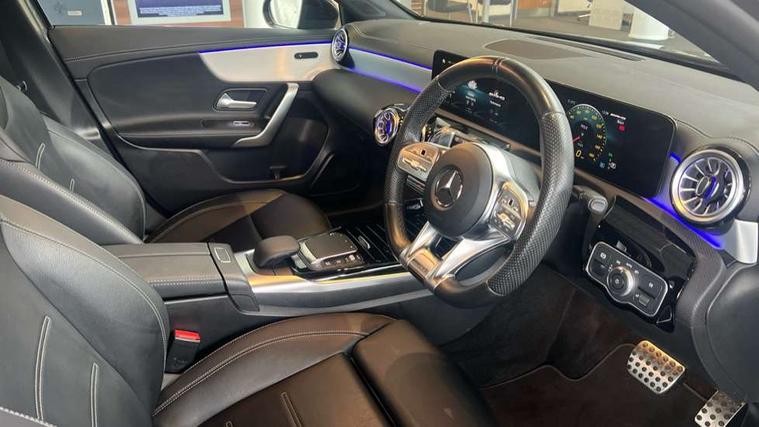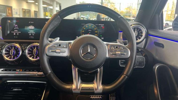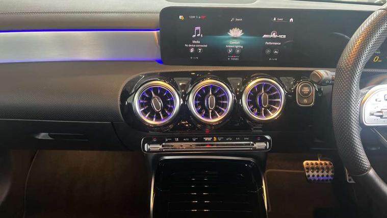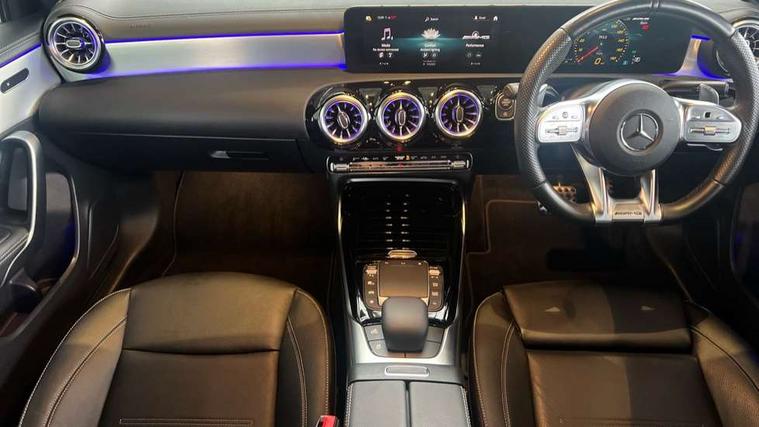 10.25" media display, 180 degree rear view camera with parking guidelines, 7" colour screen in instrument panel, Active parking assist with visual and audible warning of detected obstacles, Attention assist, Brake pad wear indicator warning light, Car wash mode, Cruise control + speed limiter, Direct steering, Dual bluetooth interfaces, DYNAMIC SELECT with driving programs (Slippery, Comfort, Sport, Sport+ and Individual), ECO start/stop function, Fluid level warning indicator for fuel, oil, coolant and washer fluid, Hard-disk navigation, Hey Mercedes Voice activation, Lamp failure indicator, Lane keeping system, Mercedes me connect including emergency call system, accident recovery, breakdown and maintenance management, Mercedes me remote services, Outside temperature gauge, Owners manual in English, Pre-installation for private car sharing, Preinstallation for Mercedes Benz link, Service indicator (ASSYST), Smartphone integration with Apple CarPlay and Android auto, Speed sensitive power steering, Trip computer, Ultrasonic sensors positioned in the front and rear bumpers, AMG performance suspension, Rear axle multi-link, 2 USB ports (type C) in rear stowage compartment and one in front of center console, 6 speakers, DAB Digital radio, MBUX multimedia system with DAB digital radio and touchpad including satellite navigation, Mercedes-Benz sound system - 100W, 4 Electric Front and Rear windows, Adaptive brake lights, AMG bodystyling - Front apron with splitter in chrome, rear apron with chrome trim and chrome visible trim elements in tailpipe, AMG Front apron with flics as air deflector elements on the outer air intakes, AMG radiator grille with twin blade lamella and AMG Lettering, AMG Rear apron with specific diffuser look with four vertical fins and two round chrome plated tailpipe trim elements with a diameter of 90 mm, AMG spoiler lip on roof, AMG Sports exhaust system with two round tailpipes measuring 90 mm in diameter attached in rear apron, AMG lettering plus ribbing on the inside of the, Automatic headlights, Black weather strip, Body colour bumpers, Body colour door handles, Body colour side skirt, Body coloured door mirrors, Electric adjustable and heated door mirrors with integrated LED side indicators, Front wings wheel arches with TURBO 4MATIC lettering, Headlamp assist automatic headlamp activation, Heated glass rear windscreen + timer control, High gloss black beltline, LED High level third brake light, LED high performance headlamps with integrated LED daytime running lights, LED tail lamp, Privacy glass, Radio aerial, Rain sensing windscreen wipers with two sensitivity settings, Rear fog lights, Rear side wing doors, Rear wiper, Trim elements on louvres in outer air inlets in high gloss black, Wider wheel arches for AMG wheels, Window line trim strip in high gloss black, 3 seat bench in 2nd row, 40:20:40 split folding rear seats, AMG Performance steering wheel in nappa leather, Auto Mercedes-Benz child seat recognition sensor, Black air vents with surround in silver chrome, Black roof lining, Brushed stainless steel sports pedals with rubber studs, Controller on centre console with chrome surround, Floor mats with stitched edging and AMG lettering, Front centre armrest with storage compartment, Front door sills with AMG lettering, Front seat backs luggage nets, Front seat cushion length adjustment, Heated front seats, Height/reach adjustable steering column, Interior lighting - 64 colour Ambient lighting, Interior mirror with reading lamps in black and frameless, Manual height adjustable front seats, Rear head restraints, Seat occupancy sensor for front passenger seat, Silver coloured aluminium gear shift paddles on steering wheel, Single front passenger seat, Sports seats with integrated headrests, Stowage compartment in centre console with retractable cover, Sunvisors with illuminated vanity mirrors, Touchpad on center console, Twin front cupholders, Two zone thermotronic luxury automatic climate control, AMG night pack - A Class, Light and sight pack - A Class, Mirror package - A Class, Seat comfort pack - A Class, 3 rear 3 point seatbelts, ABS with Brake Assist, Active bonnet, Active brake assist includes forward collision warning system with autonomous braking, Adaptive brake assist with hold function and hill start assist, Black seatbelts, Childproof locks manually operated for rear doors and electrically operated for rear power windows, Crash responsive emergency lighting, Driver and passenger head and side airbags, Drivers knee airbag, Dual stage driver/passenger airbags, Electronic parking brake, ESP curve dynamic assist, ESP with ASR, Front and rear seatbelt reminder, Front brake calipers with AMG lettering, ISOFIX and top tether child seat fixing points in two outer rear seats, Perforated front brake discs, Tyre pressure monitoring system, Warning triangle and first aid kit, Window airbags, Alarm system/interior protection/immobiliser, Keyless Go, Remote central locking and crash sensor with emergency opening function, Urban guard vehicle protection system with immobiliser and interior protection, Light aluminium with longitudinal grain interior trim, 19" AMG multi-spoke high gloss black painted light alloy wheels with high sheen finish, Summer tyres, Tirefit sealant kit,