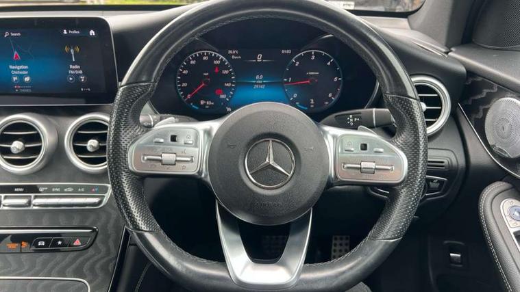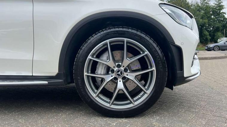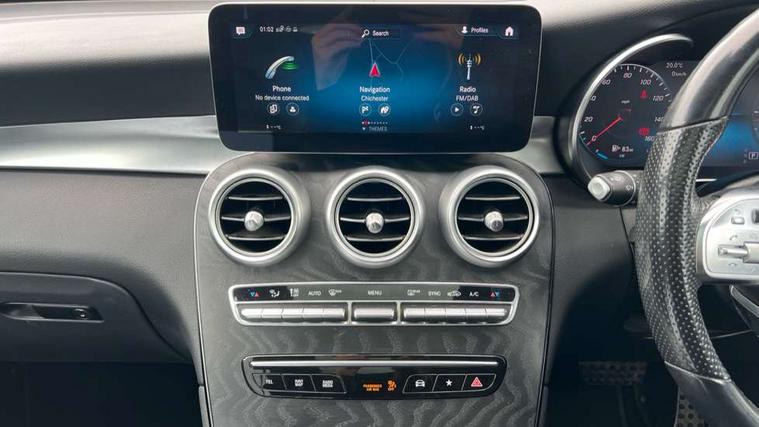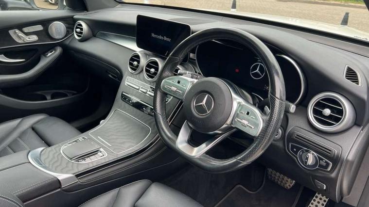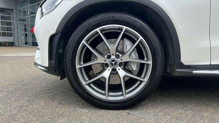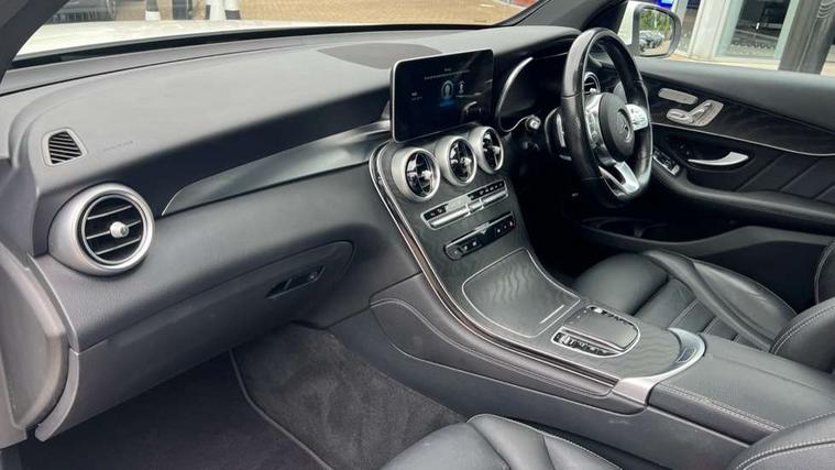360 degree camera, Attention assist, Bluetooth interface for hands free telephone, Collision prevention assist plus, DYNAMIC SELECT with a choice of driving modes (ECO, Comfort, Sport, Sport+ and Individual), Easy pack automatic powered tailgate, ECO start/stop function, Hard disk navigation, Hey Mercedes Voice activation, Instrument cluster with12.3-inch digital instrument cluster display. High resolution instrument cluster screen with choice of three display styles, MBUX augmented reality for navigation, MBUX Interior assistant, Mercedes connect me with remote online services, Multi function trip computer, Outside temperature display, rear seatbelt status indicator, Parktronic system with rear cross traffic alert and drive away assist, Remote boot release, Service indicator (ASSYST), Smartphone integration with Apple CarPlay and Android auto, Traffic sign assist, Wireless charging, 4MATIC permanent four wheel drive, 66 litre fuel tank, 9G TRONIC plus automatic transmission with steering column gear selector, DIRECT SELECT steering wheel gearshift paddles, Diesel particulate filter, Sports suspension tuned for improved handling and driving dynamics, Burmester surround sound system, MBUX multimedia system with DAB digital radio and touchpad including satellite navigation, Media display 10.25-inch touchscreen display, Pre installation for Mercedes Benz Link, USB ports x 2 in centre console, Adaptive brake lights, Aluminium roof rails, AMG bodystyling - AMG front apron with sporty air intakes and chrome trim element, AMG diffuser-look rear apron with insert in black, Body colour door mirrors, Body coloured bumpers, Electric panoramic glass sunroof, Electric windows one touch open/close, Electrically adjustable and heated door mirrors, Front, side and rear exterior chrome trim, Headlamp assist automatic headlamp activation, LED tail lamp, Motor way mode function and locator lighting, Multi beam LED headlamps with 84 indiviually control LED, daytime running lamps, Active Light, cornering light, enhanced fog lamp, adaptive Highbeam Assist, Privacy glass with dark glass from B pillar backwards, Radiator diamond grille, Rain sensor windscreen wipers, Range adjustable headlights, Rear wiper, Running boards, Tinted glass all round with single layer safety glass, Two chrome plated tailpipe trim elements, 2 way rear head restraints, 3-spoke multifunction sport AMG steering wheel in black nappa leather with flattened bottom section, chrome insert and perforated leather in grip area, 40:20:40 split folding rear seats, Ambient lighting, AMG floor mats with edging and embroidered AMG lettering, AMG sports seats, Artico man-made leather upper dashboard with contrast topstitching, Automatic child seat recognition sensor, Black roof lining, Dividing net - rear, Double cup holder in centre console, Easy-pack removable load compartment cover, Front armrest with storage box, Front door sills with Mercedes Benz lettering, Front head restraints, Heated front seats, Illuminated and lockable glove compartment, Leather upholstery, Rear top tether child seat ISOFIX attachment, Sports pedals with stainless steel surfaces and rubber studs, Steering wheel with touch control buttons, THERMOTRONIC 3 zone automatic climate control, Interior lighting pack - GLC, Keyless Go comfort pack - GLC, Memory pack - GLC, Mirror pack - GLC, Storage pack - GLC, 3 rear 3 point seatbelts, Active bonnet, Adaptive brake system with HOLD function and brake drying in the wet, ASR, Black seat belts, Brake calipers with Mercedes-Benz lettering + perforated brake discs, Child proof door locks, Dual-stage airbags - driver and front passenger, driver knee bag and window bags for driver, front passenger and rear passengers, Electronic parking brake, Electronic stability programme (ESP) with curve dynamic assist and cross wind assist, Front and rear seatbelt reminder, Front passenger seat occupancy sensor, Hill hold function, Tyre pressure monitoring system, Warning triangle and first aid kit, Alarm system/interior protection/immobiliser, Automatic door locking, Remote central locking, Anthracite open pore oak wood trim, 20" AMG 5 twin spoke alloy wheels painted in titanium grey with high sheen finish, Run flat tyres,