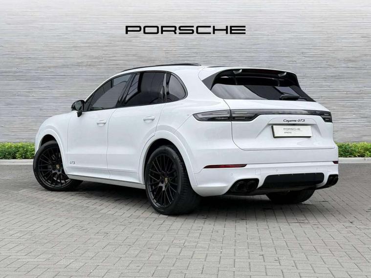 Android Auto, Apple car play, Brake pad wear indicator, Central analogue rev counter with black dial face and GTS logo, Driver personalisation for climate, audio and communication, assistance systems and other customisable car systems, Emergency call service, High resolution 12.3-inch touchscreen display in full HD resolution, Individual mode for individual selection of vehicle drive settings, Instrument cluster with two high-resolution displays, Mobile phone preparation with Bluetooth interface for telephone and music, Porsche Communication Management (PCM) including online navigation module, mobile phone preparation, audio interfaces and voice control system, Power tailgate, Vehicle electrical system recuperation, Warn and brake assist including pedestrian protection, 8 Speed Tiptronic S transmission with auto Start-Stop and coasting function, 90 litre fuel tank, Adaptive cylinder control, Aluminium cylinder heads and engine block, Direct fuel injection (DFI) with central injector position, Front and rear aluminium multi link axles, Gasoline particulate filter, Porsche Torque Vectoring Plus (PTV Plus), Sport mode, Twin turbo charged with twin scroll turbochargers, VarioCam, Water cooled with thermal management, AM radio, Digital radio, Two USB charge ports in rear compartment, Two USB charging and connectivity ports in the front centre console storage compartment, Active air intake flaps, Automatic headlight activation including welcome home functionality, Bumper system with high strength cross members and two deformation elements + Two receptacles with screw threads towing lug + onboard tool kit, Door lower cladding trim in exterior colour, Electric windows + anti trap protection + one touch open/close drivers side, Electrically adjustable, folding and heated exterior mirrors, aspherical on drivers side including courtesy lights, Exclusive tinted LED tail lights with three dimensional lighting graphic including light strip and integrated four point brake lights, Extensive aerodynamic underbody protection, Four point signature LED daytime running lights, Front end with integrated air intakes and airblades for the side air intakes, Front light modules including position lights and direction indicators in LED light guide technology, Front windscreen wipers with two speeds, intermittent wipe and rain sensor, Fully galvanised steel / aluminium hybrid lightweight bodyshell and Aluminium bonnet, tailgate, doors, side panels, roof and front wings, Gloss black side window trims, Heated rear window with automatic switch off, LED High level third brake light integrated into roof spoiler, Porsche logo and cayenne GTS model designation on tailgate in matt black, PORSCHE' lettering integrated in tailgate strip, Rear apron lower cladding painted in exterior colour, Rear side wing doors, Rear window wiper with intermittent function and washer jet, Sports exhaust system including sports tailpipes in black, Tailgate with integrated roof spoiler in exterior colour, Two twin exhaust tailpipes, left and right and brushed stainless steel finish, 3 seat bench in 2nd row, Alcantara roof lining, B-pillar clothes hooks on driver and passenger's side, Charge air cooling, Double sun visors for driver and front passenger, Driver/passenger sunvisors and vanity mirrors, Elevated centre console with handles, Five seats rear seat system with two comfort outer seats and a central seat, Front and rear bottle holders in door panels, Front centre armrest, GTS logo on door sills front, left and right in black, Integrated front headrests/2-way headrests rear, Isofix fastening system for child seats on outer rear seats, LED interior light with switchoff delay function, footwell + glove compartment light, ashtray + ignition lock illumination, front + rear reading light, Manual height adjust for driver and front passenger seat belt, Particle/pollen filter with active carbon filter, Rear seat split folding design 40:20:40, Fold out centre armrest with integrated cup holder, manual fore/after adjust and backrest angle adjust, Retractable roller luggage compartment cover in detachable cassette, Sideskirts in black plastic, Single front passenger seat, Stainless steel pedals, Storage compartments - Cooled glove compartment, front centre console, door and map pockets on front seat backrests + side luggage compartment, Three 12V power sockets - front below the glove compartment, centre console and at side of luggage compartment, Two integrated cup holders in front and rear with variable diameter, Sport design package - Cayenne, 3-point automatic seatbelts with front and outer rear seats pretensioners and front force limiter with 3-point automatic seatbelt for rear centre seat, 4 piston aluminium monobloc fixed caliper brakes at rear and internally vented brake discs, 6-piston aluminium monobloc fixed caliper brakes at front, internally vented brake discs, Active bonnet, Auto hold function, Brake discs with diameter 390mm at front 358mm at rear, Curtain airbags along roof frame and side glazing from the A-pillar to the C-pillar, Distance warning, Electronic parking brake, Front passenger airbag deactivation function for front seat mounting of child seat, Front side airbags integrated into seat, Full size driver and front passenger airbags, Knee driver and passenger airbags, Mounting points on passenger seat for ISOFIX child seat mounting system, Multi-Collision braking, Porsche hill control (PHC), PTM Porsche Traction Management active all-wheel drive with an electronically variable, map-controlled multi-plate clutch, ABD and anti-slip regulation, Rear door child safety locks, Rollover detection for activation of curtain airbags and seat belt pretensioners, Seat belt warning system for driver and front passenger and rear seat system, Side impact protection in doors, Tyre pressure monitoring system, Vehicle stability system, Porsche stability management (PSM) including ABS, ASR, ABD, MSR and trailer stability management, Alarm system