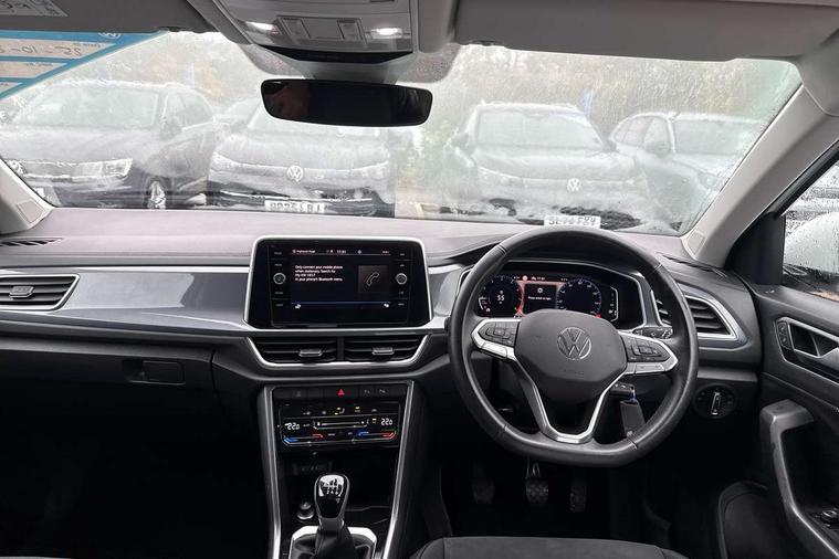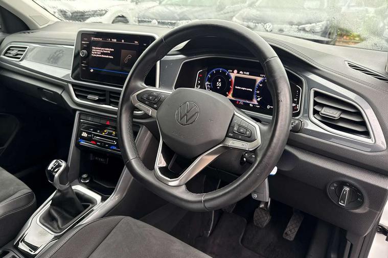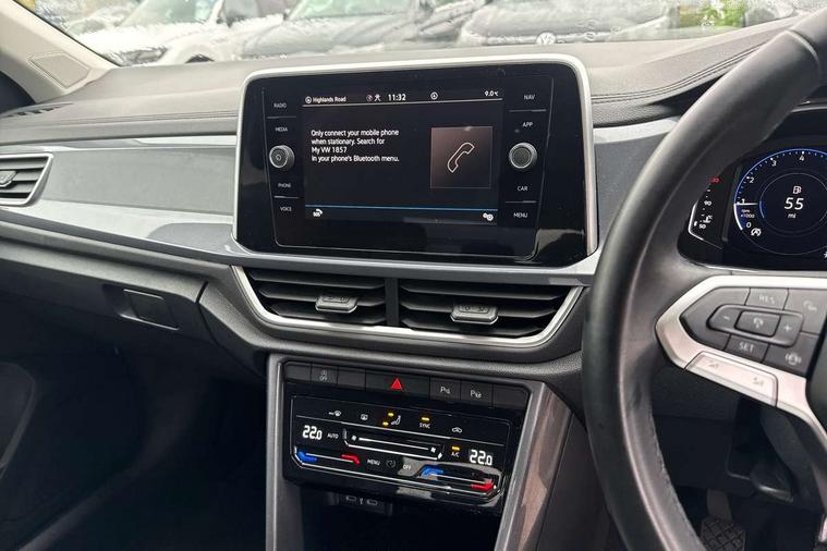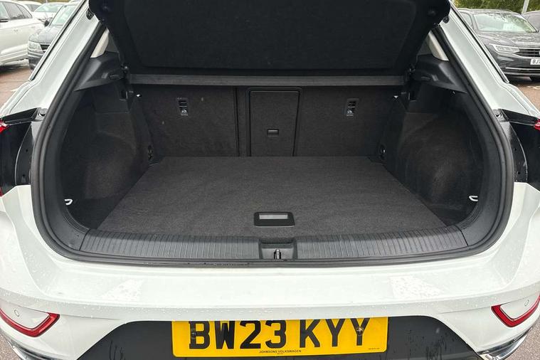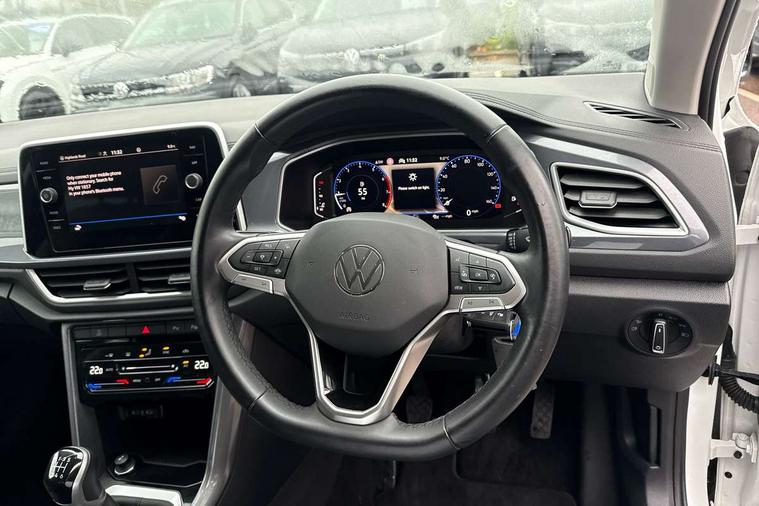 10.25" Digital cockpit pro, Bluetooth mobile phone interface, Driver alert system with fatigue detection, Driver tips and journey analysis, Dynamic road sign display, Emergency call service, Lane keeping system Lane Assist, Modified key software - reduce switch off time for key status change to Long no motion, Online services, Park assist including front and rear parking sensors, Power assisted speed sensitive steering, Service interval indicator, Tailgate/trunk lid release from outside, Think blue trainer driver tips and journey analysis, Warning sound and light for front seatbelts unfastened, Wireless app connect, Battery regeneration during braking, Front shock absorption, Rear shock absorption chassis with increased ride height, Start/stop function with battery regeneration, Diversity antenna for FM reception, Music playback - MP3, WMA and AAC files, Premium USB cable in choice of either Apple or Android smartphone compatibility, SD card slot, Simultaneous pairing of 2 compatible mobile devices, Title and cover art display, We Connect and We Connect Plus functionality, 3rd brake light, Auto dimming interior rear view mirror, Automatic hazard lights activation under emergency braking, Automatic headlight control with LED separate daytime running lights with coming/leaving home function, Body colour sports bumpers with silver metallic underbody fascia, Dynamic headlight range control with self adjusting whilst driving, Extended roof spoiler, Exterior mirrors aspherical on driver side, convex on front passenger side, External USB type C socket and charging sockets, Front windscreen wiper with intermittent wipe and 4 position delay, Heated rear window, LED rear combination lamps, LED rear number plate lights, LED tail lamp rear comination lamps, Light mode for poor weather, rain, fog or snow, Power windows with comfort operation and circuit breaker, Rain sensor, Rear exhaust tailpipe, Rear fog light on one side and reversing lights on both sides, Rear side wing doors, Rear wash/wipe with intermittent wipe setting, Remote electrically foldable door mirrors, puddle lights and reverse activated passenger's door mirror, 12V power socket in centre console, 3 rear head restraints, 3 seat bench in 2nd row, 4 load lashing points in luggage compartment, Air care climatronic air conditoning system with active combination filter and 2-zone temperature control, Chrome plated radiator grille inserts, air vent surrounds and light switch surrounds, Door and side trim panel with leatherette insert, Drawer under drivers seat, Front + rear carpet mats, Front centre armrest, Front comfort sports seats, Front cupholders x 2, Front footwell illumination, Instrument lighting, white adjustable panel illumination, Interior ambient lighting and surround lighting, Interior light delay, Isofix child seat preparation, Leather gearshift handle, LED interior light with switch off delay/dimmer and 2 front/rear LED reading lights, Load-through provision with cup holder when folded down ('Unsplit rear seat bench, split folding backrest, with centre armrest), Luggage compartment lighting, Non-folding front passenger seat backrest, Single front passenger seat, Storage compartment in left and right luggage area, Storage compartment in rear doors, Storage compartments in driver and front passenger doors, Sunvisors with illuminated vanity mirrors, Variable boot floor, height adjustable and removable, Driver assistance pack without proactive passenger protection - T-Roc, 3 point height adj front seatbelts + pretensioners, 3 point seatbelts in outer rear with ECE label, ABS, Child locks on rear doors, Driver and front passenger airbag with front passenger airbag deactivation, Driver and front passenger safety-optimised head restraints, Drivers seatbelt reminder, Electronic parking brake, Electronic Stability Control (ESC) inc EDL (Electronic Differential Lock) and ASR (Traction Control), Front and rear passengers curtain airbag system including front side airbags, Front assist with city emergency braking and pedestrian monitoring, Front disc brakes, Front seat side impact airbags, Predictive pedestrian protection, Rear disc brakes, Single tone horn, Tyre pressure loss indicator, Volkswagen roadside assistance, Anti-theft alarm system with interior monitoring, backup horn, and towing protection, Remote central locking with SAFELOCK, radio remote control with 2 remote control folding keys, Trims for alloy wheels,