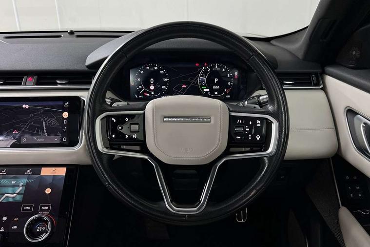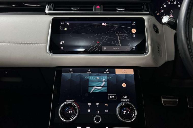 10" touch screen, Adaptive cruise control with steering assist, Android Auto, Apple car play, Blind spot assist, Bluetooth connectivity, Brake pad wear indicator warning light, Driver condition monitor, InControl remote, Interactive Driver display instrument cluster, Land Rover InControl apps, Lane keep assist, Pivi pro connected includes upgraded infotainment, smart settings, connected navigation pro, Nuance speech licence, Push button start, Rear collision monitor, Rear traffic monitor, Service indicator, Speed proportional electronic power assisted steering (EPAS), Traffic sign recognition with adaptive speed limiter, Trip computer, Voice control system, 8 speed automatic transmission, Adaptive dynamics, All terrain progress control, Coil suspension system, Open differential with torque vectoring by braking, Public charging cable, Single speed transfer box, Digital Audio Broadcast radio-DAB, Steering wheel mounted controls, Acoustic laminated windscreen, Adaptive front lighting system, Auto dimming interior rear view mirror, Automatic headlamp levelling, Automatic headlights, Body coloured bumpers, Boot protection plate, Electric heated/power fold door mirrors with approach lights and auto dimming driver side, Electric windows with one touch open/close and anti trap, Flush deployable exterior door handles, Follow me home headlights, Heated rear window with timer, Heated windscreen, HSE badge, Metal load space scuff plates, Rain sensor windscreen wipers, Rear fog lights, Rear wash/wipe, Tailgate/boot lid spoiler, Trailer stability assist, Velar and R-dynamic badge, Ambient lighting, Bright metal pedals, Driver/passenger sunvisors with illuminated vanity mirrors, Electric adjustable steering column, Isofix system on outer rear seats, Loadspace cover, Overhead lighting console, Overhead stowage for sunglasses, Passive front headrests, Rear air vents, Rear centre headrest, Satin chrome gearshift paddles, Twin front cupholders, Twin sliding front centre armrest, Online pack with data plan - Velar, 380mm front brakes and 325mm rear brakes, 3x3 point rear seatbelts, Anti-lock braking system (ABS), Cornering brake control, Curtain airbags, Customer configurable autolock, Door side intrusion beams, Driver airbag, DSC - Dynamic Stability Control, Electronic brake force distribution, Electronic parking brake, Electronic traction control, Emergency brake assist, Emergency braking, Front and rear seatbelt reminder, Hill descent control, Hill launch assist, Low traction launch, Passenger airbag, Power operated child locks, Rear airbags, Roll stability control, Side airbags, Tyre pressure monitoring system, Unpainted brake calipers, Global lock and unlock switch on driver door, Immobiliser, Intrusion sensor, Keyless entry, Lock only switch on front passenger door, Locking wheel nuts, Perimetric alarm, Remote central locking, Tyre repair system,