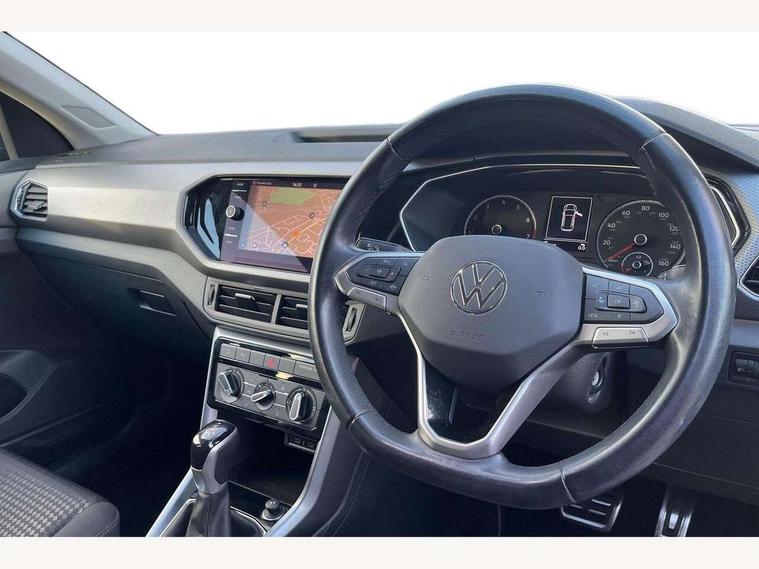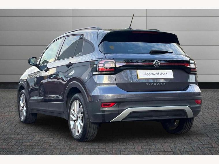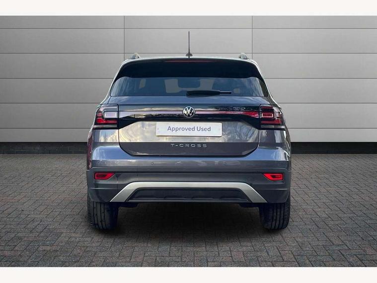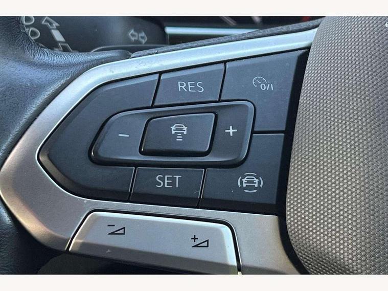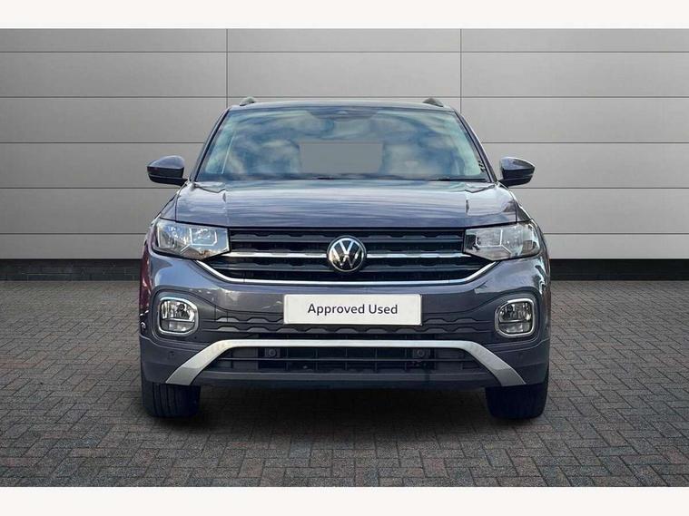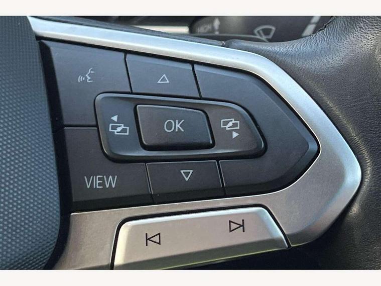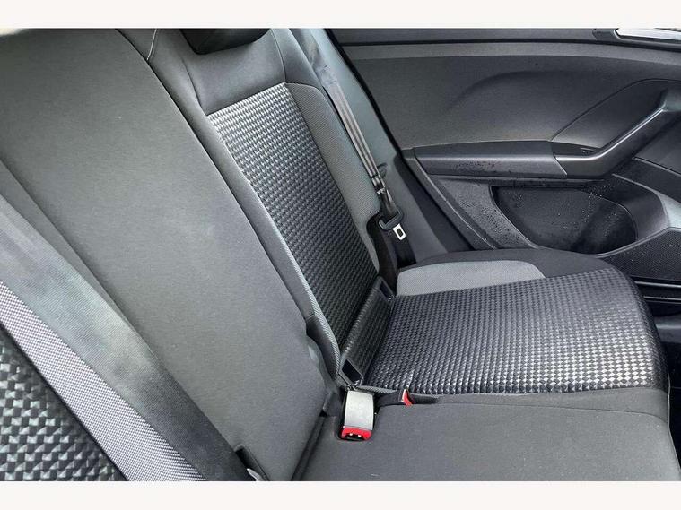 'Lights On' Reminder warning buzzer, Adaptive cruise control including front assist, forward collision warning, autonomous emergency braking, speed limiter, Blind spot monitoring, Bluetooth telephone and audio connection for compatible devices, Car information display, Driver alert system, eCall emergency call system, Lane assist, Low washer fluid warning light, Multifunction computer with visual gear change recommendation for fuel consumption, Operating permit alteration, Power assisted speed sensitive steering, Speedo, rev counter, electronic odometer, trip, service interval display, exterior temperature and fuel gauge, Stop/start system, Warning sound and light for doors and tailgate open, Warning sound and light for front seatbelts unfastened, We Connect Go Dongle, Wireless Car net app connect with Apple CarPlay, combined functionality of Apple CarPlay/Android Auto and MirrorLink, Battery regeneration during braking, Misfuel prevention device, 2x USB connection with USB charging sockets and in rear centre console, DAB Digital radio receiver, Diversity antenna for FM reception, Multi device interface (MDI) with USB connection, Music playback - MP3, WMA and AAC files, Premium USB cable for Apple or Android smartphone compatibility, Simultaneous pairing of 2 compatible mobile devices, Title and cover art display, 3D active badge on B-pillar, Active door sills, Active sill panel trims, Automatic hazard lights activation under emergency braking, Black roof rails, Body colour door handles, Body coloured bumpers, Dusk sensor + automatic driving lights, Electrically foldable, adjustable and heated door mirrors with reverse activated kerb view adjustment on passenger's side, Front and rear electric windows, Front fog lights with static cornering function, Galvanised body, Heated rear window, High level 3rd brake light, Lower door sills and door pillars in black, Radiator grille with high gloss surface and chrome strip, Rear fog light on one side, reversing light on both sides, Rear lights incorporating LED technology, Rear side wing doors, Rear tinted glass 65% approx light absorbing from B pillar backwards, Rear window aerial, Rear windscreen washer and wiper with interval delay, Reflectors in all doors, Tailgate with integrated roof spoiler, Windscreen wipers/ intermittent wipe + 4 position delay, 12V Accessory socket in centre console, 3 rear head restraints and 3 rear three point seat belts with ECE label, 3 seat bench in 2nd row, 60/40 split folding rear seat backrest, Ambient lighting and sourround lighting, Brushed stainless steel pedals, Drawer under drivers seat, Driver and front passenger sunvisor with vanity mirror, Driver's sunvisor with ticket holder, Dust and pollen filter, Front + rear carpet mats, Front and rear reading lights X 2, Front centre armrest with storage compartment, Front seat back storage pockets, Front seats with adj lumbar support, Glovebox, Heating and fresh air system with 4 stage blower, Height/reach adjust steering wheel, Instrument lighting white adjustable panel illumination, Interior light with delay, Isofix child seat preparation for 2 rear child seats, Luggage compartment cover, Luggage compartment lighting, Moveable and foldable Rear bench seat, Single front passenger seat, Storage compartment in drivers and front passengers door, Three spoke multi-function leather trimmed steering wheel and gearknob, Trapeze cloth upholstery, Variable boot floor, Winter pack - T-cross, Anti-lock Braking System (ABS) with Hydraulic Brake Assist (HBA), Automatic post collision braking system, Driver and front passenger safety-optimised head restraints, Drivers and Front Passengers airbags with front passengers airbag deactivation switch, ESC with EDL, ASR, EDTC and trailer stabilisation function, Extended and proactive pedestrian protection, Front and rear curtain airbags, Front seat side impact airbags, Height adjustable 3 point automatic front seatbelts with pretensioners, Hill start assist, Pre crash preventive occupant protection, Rear door child safety locks, Rigid safety cell with front and rear crumple zones, Single torn horn, Tyre pressure loss indicator, Volkswagen roadside assistance, Alarm with interior protection and deactivation via infotainment system, Child security locks in rear doors, Electronic engine immobiliser, Remote tailgate unlocking using key fob, Decorative strips in doors in matt silver/ center console, 17" Clayton alloy wheels + anti theft wheel bolts, Breakdown kit,