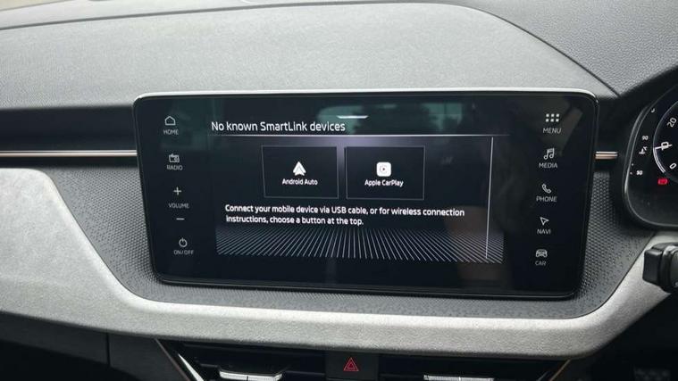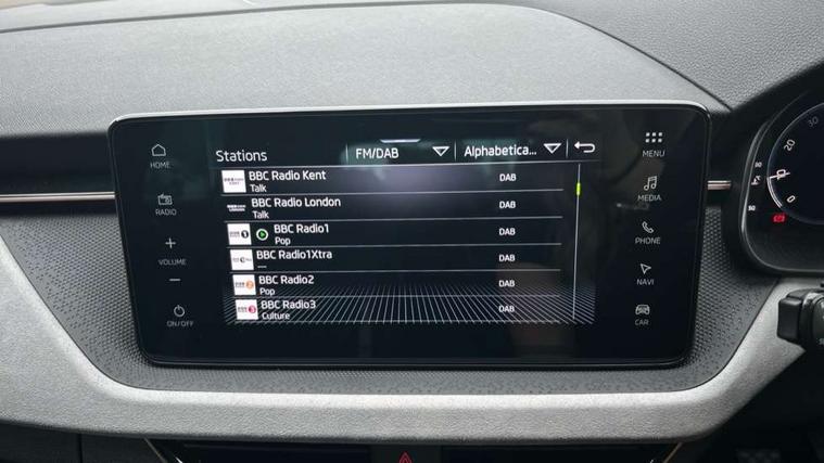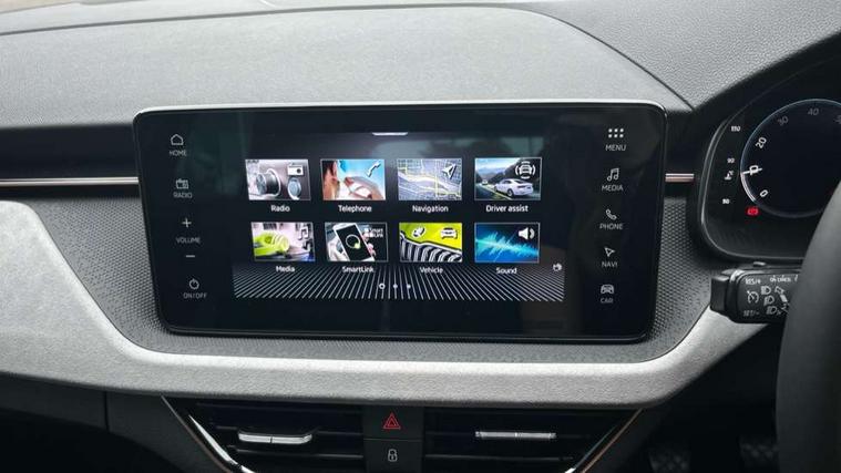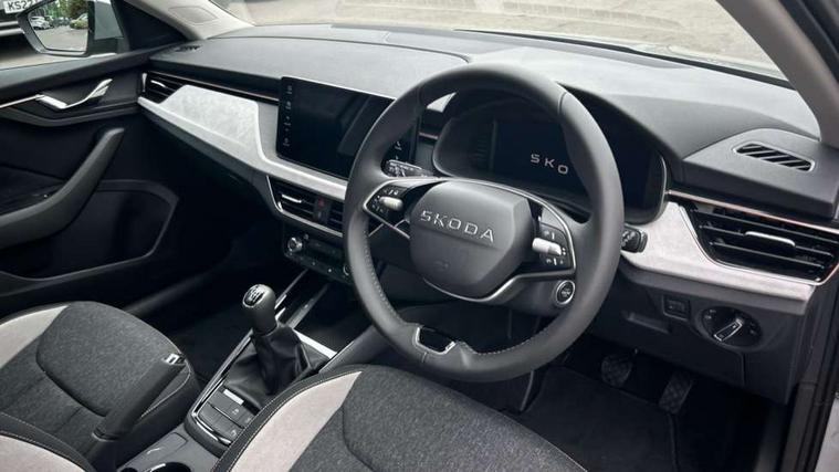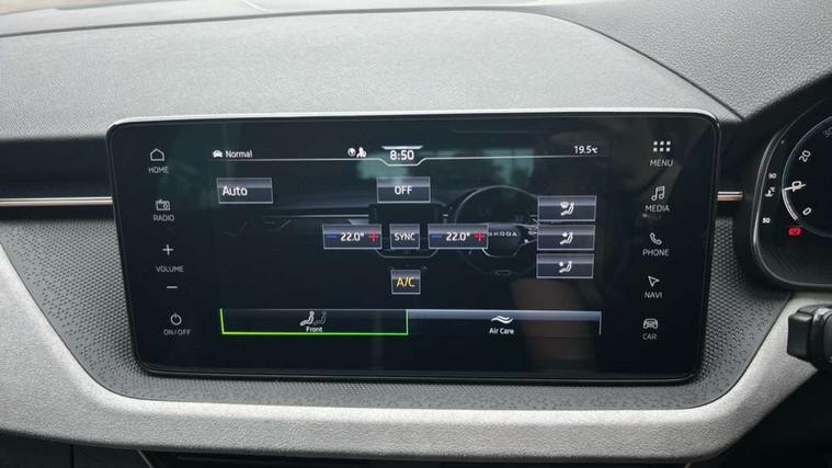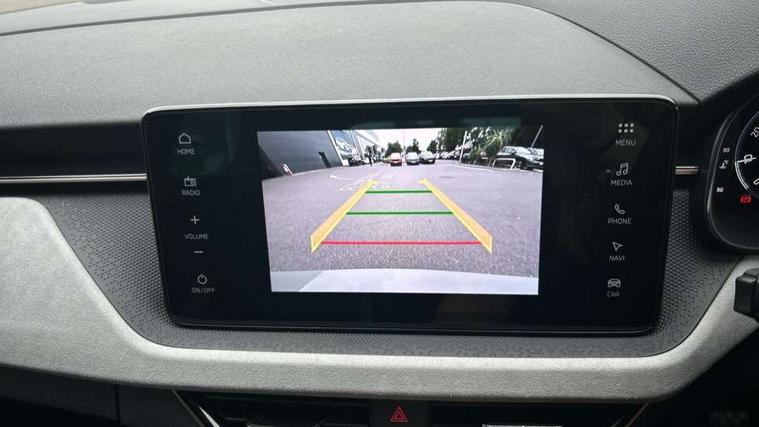 Advanced driver attention and drowsiness monitor, Bluetooth, e-Call (emergency call), Front assist system, PAS, Rear parking sensors, Rear view camera, Speed limiter, Tailgate, Traffic sign recognition, Virtual Cockpit - 10.25" digital display, Voice control system, Wireless smartlink, 4 USB C ports, 8 Speakers, 9.2" Skoda navigation display, DAB radio, Auto dimming rear view mirror, Automatic headlight control with manual coming and leaving home feature, Automatic intermittent wipers, Body colour bumpers, Body colour door mirrors and handles, Chrome moulding around grille, Chrome window frames, Front and rear electric windows, Heated rear window, LED 3rd brake light, LED daytime running lights, LED high beam, LED low beam, Light sensors, Privacy glass, Rear LED fog light, Rear side wing doors, Rear wiper, Tinted windows, Unique dark chrome design logo on alloy wheels, 12V socket in luggage compartment, 3 seat bench in 2nd row, Ambient lighting in white/red, Black / Copper armrest stitching, Cargo elements, Chrome inner door handles, Copper hotstamping, Door inserts in accent black, Driver and passenger sun visors with vanity mirror, Dual zone climate control, Front and rear roof lights, Front centre armrest, Front head restraints, Glasses storage in roof liner, Height adjustable driver seat, Height adjustable passenger seat, Ice scraper, Illuminated glove compartment, Inner circulation control with pollen filter, ISOFIX for front passenger seat, Isofix preparation for back seats, Leather gearknob and handbrake lever, Lodge cloth upholstery, Luggage net under rear parcel shelf, Manual lumbar support for front seats, Net package and top tether hooks in boot space, Pocket on the back of both front seats, incl. mobile phone pockets, Rear centre armrest, Single front passenger seat, Skoda lettering on steering wheel, Textile floor mats, Third rear headrest, Ticket holder, Top tether for front passenger seat, Umbrella in driver's door, Convenience pack without rear camera - Scala, 3x3 point rear seatbelts, ABS, Child locks, Curtain airbags and front side airbags, Disc brakes, Driver and front passenger airbags, ESP, Hill hold control, Manual leather parking brake, One tone horn, Passenger airbag switch off function, Seatbelt reminder for driver and front passenger, Tyre pressure monitoring system, Anti theft alarm system with interior monitoring, backup horn and towing protection, Anti-theft wheel bolts, Remote central locking with 2 remote folding keys, SAFE function for remote central locking, Decorative inserts,