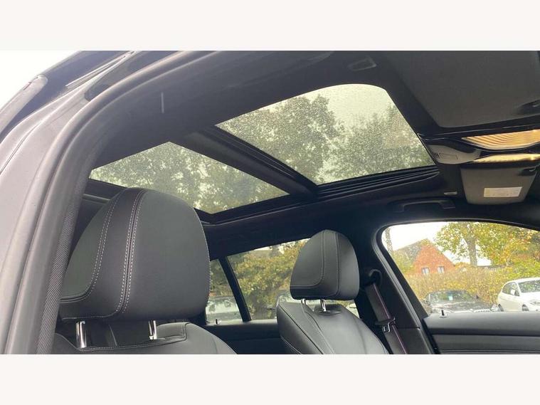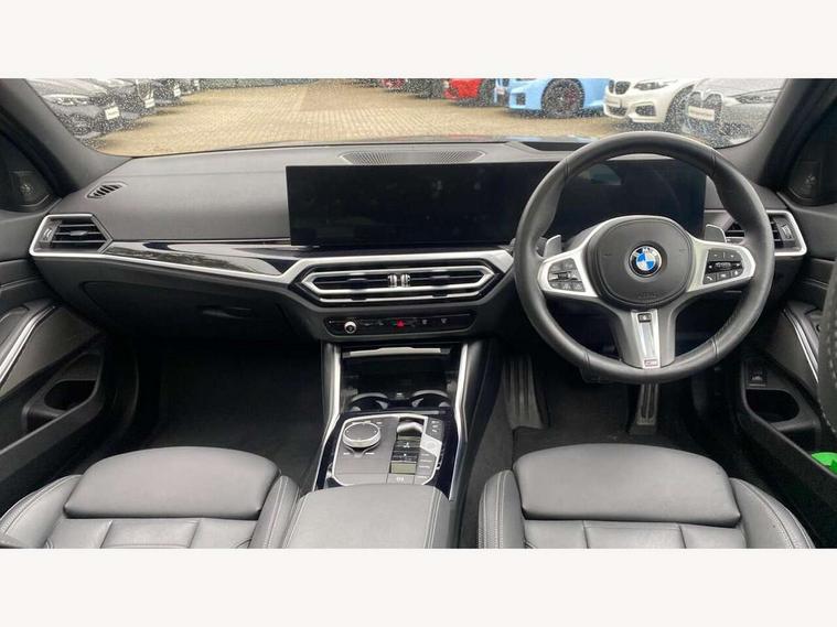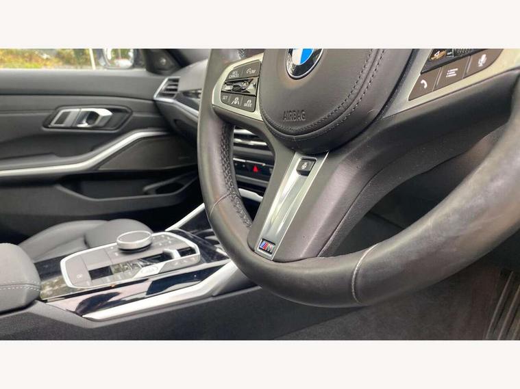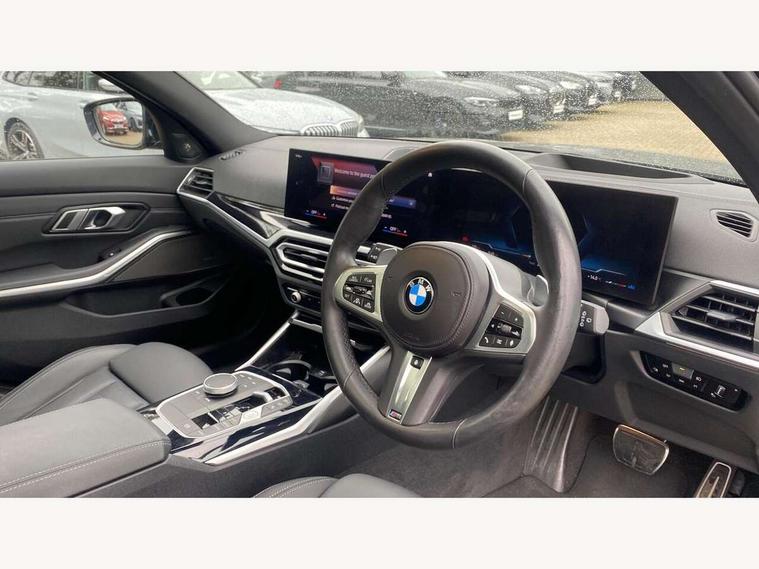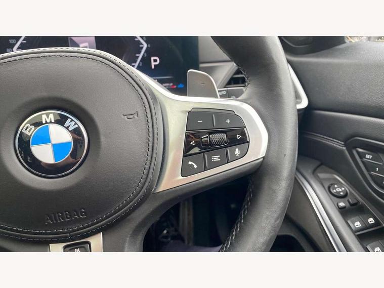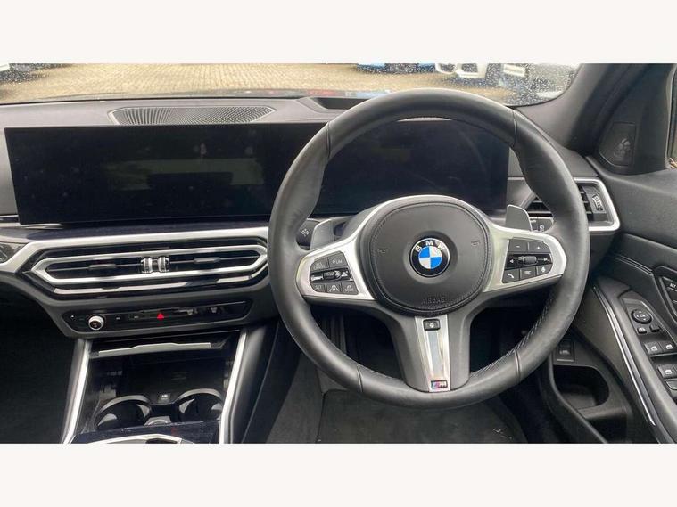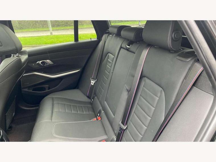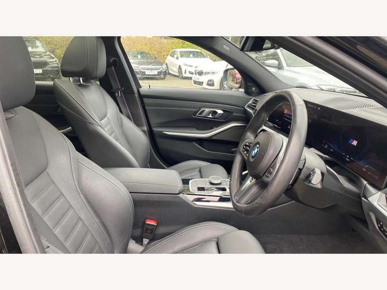 Active guard plus, Attentiveness assist, Automatic Start/stop button, BMW iDrive, BMW Teleservices, Condition based service, ConnectedDrive Services, Driving experience switch, Oil sensor for level and grade, Preparation for driver assistance, Shifting point display, Smartphone integration, Variable sport steering, 48V Mild hybrid technology, Double joint spring strut front axle, Fuel tank breather system, M Sport differential, Sport automatic transmission with steering-wheel mounted gearshift paddles and launch control, DAB tuner, 3rd brake light, Acoustic glazing, Adaptive LED Headlights, Automated High beam assist, Automatic headlight beam throw control with load dependent regulating reaction, dynamic compensation of braking dive and acceleration squat, BMW emblem, engine compartment lid and tailgate, BMW individual lights shadow line, BMW M Individual high gloss shadow line with extended contents, Body colour roof fin, Door sill strips, Electric windows - front and rear, with open/close fingertip control, anti-trap facility and comfort closing, Follow me home headlight function, Front and rear bumper system with replaceable deformation elements, Front apron plastic in body colour, Fuel filler flap - right rear in body colour, Heated washer jets, High gloss shadow line exterior trim, High gloss shadow line roof rails, Illuminated bow type door handles in body colour drivers side with door lock, Interior rear view electrochromatic mirror with automatic anti dazzle function, LED daytime running lights, LED rear lights, LED turn indicator, Licence plate panel integrated into front bumper and tailgate, Matt black B-pillar finsher, Matt black window recess cover, Model designation on right side of tailgate, One piece front bumper cover including towing eye cover in body colour, Rain sensor with automatic headlight activation, Rear side wing doors, Rear wiper, Reversing lights, Side frame decorative moulding black matt, Sun protection glass, Visible exhaust tailpipe finisher, Welcome lights in interior and door handle area, 12V power socket in front storage compartment, 2 front cupholder in centre console with clamping elements and matt black inlay, 3 seat bench in 2nd row, 3 zone automatic air conditioning, 40:20:40 split folding rear seat with loading system, Anthracite headlining, Armrest integrated in front and rear door trim + front centre console armrest, BMW ID, Cruise control operation in steering wheel, Driver backrest width adjustment, Folding rear centre armrest with 2 cupholders, Front and rear door exit lighting (left / right), Front and rear footwell lighting, Front and rear headrests, Front and rear reading lights, Front and rear velour floor mats, Heated front seats, Height adjustable mechanically and infinitely variable steering column, Illuminated armrest storage compartment, Illuminated glove compartment, Illuminated luggage compartment, Lashing eyelets in luggage compartment, LED ambient lighting with welcome carpet light, M Sport multifunction leather steering wheel, Make-up mirror lights, Single front passenger seat, Standard seat for driver and passenger with manual adjustment, Sunvisors with vanity mirrors and ticket pocket, Toolkit located in luggage compartment, Connected pack professional - 3 Series Saloon/Touring, Interior and exterior mirror pack - 3 Series Touring/Saloon, M Aerodynamics package - 3 Series Saloon/Touring, M sport exterior styling pack - 3 Series Saloon/Touring, Storage compartment pack - 3 Series Saloon/Touring, 3x3 point rear seatbelts, BMW emergency call, Child locks on rear doors, Crash sensor activating of airbags, Unlocking doors, hazard warning lights, interior light, safety battery terminal, Driver and front passenger with seat occupancy detection for driver's and passenger side, Driver and passenger side airbags, body protection at side and airbags deploy from seat backrests, Dynamic brake control, Dynamic stability control + (DSC+) - Anti-lock Braking System (ABS) with brake assist and cornering brake control + Automatic Stability Control (ASC), Dynamic Traction Control - DTC, Electric parking brake including automatic hold function and automatic release of the parking brake when driving off, Electronic differential lock control (EDLC), Head airbags in 1st and 2nd row, head protection at side, curtain airbags open from headliner above 1st and 2nd row, M sport seatbelt, Plastic fuel tank, Side impact protection, Tyre pressure monitoring with three level warning strategy, Ventilated front and rear disc brakes, Warning triangle and first aid kit, Alarm system, Centre lock switch, Closing system with central locking, Electronic vehicle immobiliser, Sensatec instrument panel,