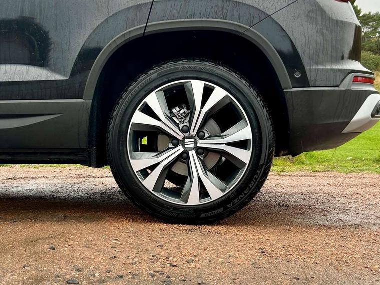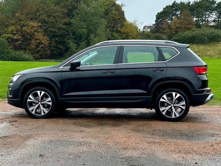 8" Digital cockpit, Colour multi-function on board computer display, Cruise control system with speed limiter, E-call, Outside temperature gauge, PAS, SEAT drive profile with driving experience button - Normal, Sport, Eco and Individual mode, gearshift, steering and throttle response, Self parking functionality (includes front and rear parking sensors), Start/stop system, Tailgate, Trip computer, wired and wireless full link smartphone integration, Wireless phone charger, Steering wheel mounted audio/phone controls, Black wheel arch surrounds, Body colour bumpers, Chrome front grille frame, Chrome roof rails, Chrome side window trim, Daytime running lights, Door mirrors with welcome light silhouette, Dynamic headlight range control with self adjusting whilst driving, Electric adjustable/heated/folding door mirrors, Front and rear electric windows, Full LED headlamps with lens and LED front fog lamps with cornering function, LED 3rd brake light, LED rear tail lights, Rear exhaust tailpipe, Rear fog lights, Rear side wing doors, Rear wash/wipe, Variable front intermittent wipers, 12v socket in front, 3 seat bench in 2nd row, 60/40 split folding rear seat, Cloth upholstery with front comfort seats, Drawer under right front seat, Dual zone climate control, Front and rear head restraints, Front centre armrest, Front seat back storage pockets, Height adjustable driver and passenger seat with lumbar adjustment, ISOFIX points in outer rear seats with top tether anchorage points, Leather sports steering wheel and gear knob, Rear armrest and easy back seat release mechanism from boot, Single front passenger seat, Steering wheel mounted gearshift paddles, Convenience pack - Ateca, Interior lighting pack - Ateca, Navigation system pack with DAB - Ateca, Safety and driving pack with attention and drowsiness assist - Ateca, 3x3 point rear seatbelts, ABS, Traction control system (TCS), Electronic stability control (ESC) and Electronic differential lock system (XDS), Airbags - Driver and front passenger airbag with deactivation, front side, two curtain and driver's knee airbags, Electric parking brake with auto hold function, Front and rear seatbelt reminder, Front assist with autonomous emergency braking, Hill hold control, Manual rear child locks, Single tone horn, Tiredness recognition system, Tyre pressure monitoring system, Alarm, Keyless entry, Locking wheel bolts, Remote central locking, Chrome interior detailing, 18" Performance machined alloy wheels 36/2 in nuclear grey,