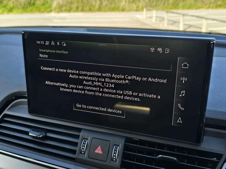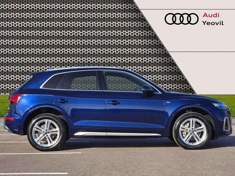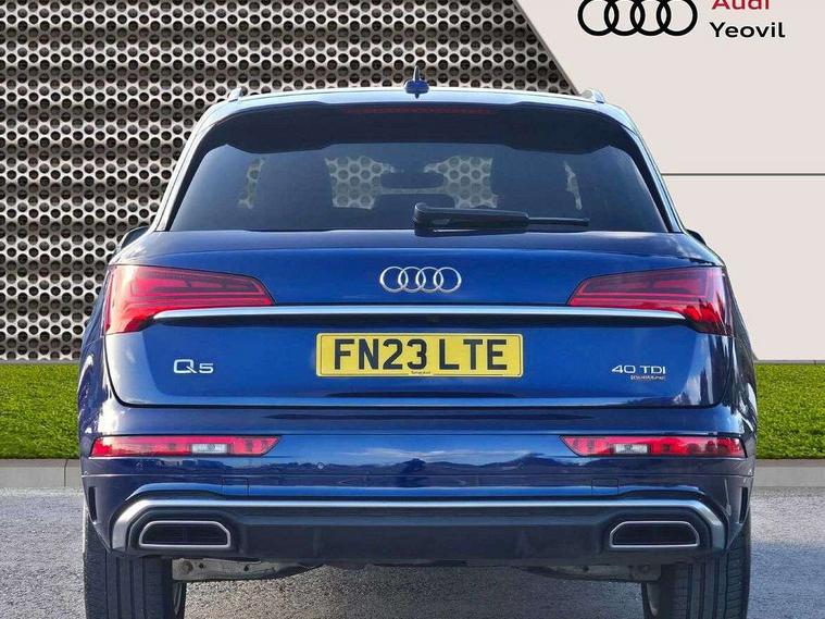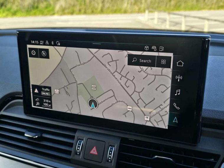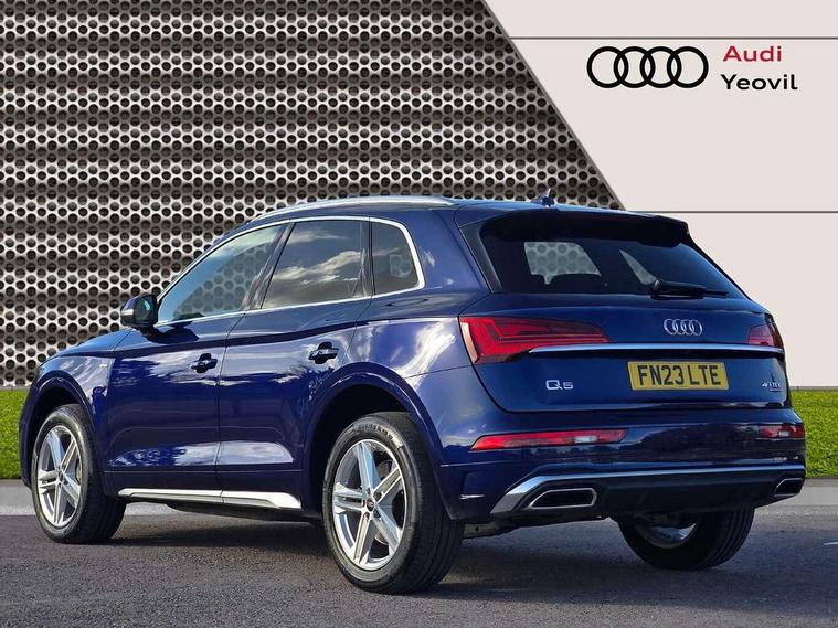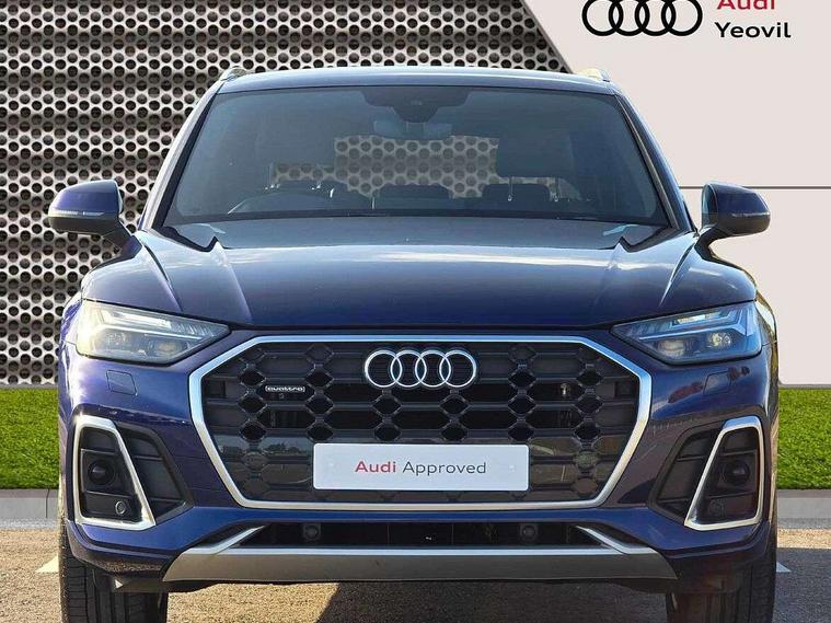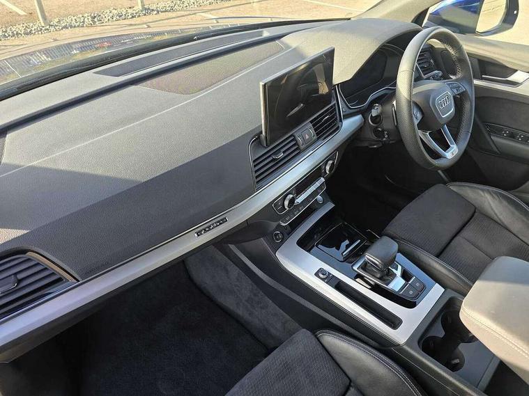 Acoustic front and rear parking sensor, Audi connect safety and service (e-call), Audi connect with Amazon Alexa Integration, Audi drive select, Audi virtual cockpit plus with 12.3" screen and three different layout designs, Audi wireless smartphone interface, Automatic start-stop system with coasting functionality and efficiency programme, Bluetooth interface, Electro - mechanical power assisted steering, MMI navigation plus with 10.1" touch screen, Power tailgate, Reversing camera, Service interval indicator, Voice control system with Audi hotword activation "Hey Audi", Diesel particulate filter, Quattro on demand, S line sports suspension, 2 x USB charging port with aux input socket, 8 loudspeakers, DAB Digital radio, Acoustic windscreen, Aluminium roof rails, Audi matrix LED headlights with dynamic front and rear indicators, Auto dimming door mirrors, Auto dimming frameless rear view mirror, Automatic headlight adjustment, Automatic headlights and windscreen wipers, Body colour bumpers, Body colour door mirrors, Body colour rear diffuser with matt aluminium silver surrounds, Body colour underbody protection, Chrome plated exhaust trims, Daytime running lights, Door sills in Selenite silver, Electric adjustable/heated/folding door mirrors, Front air inlet surrounds in aluminium, Front and rear electric windows, Front radiator grille in honeycomb design, Headlight washers, High level LED brake light, Lower bumpers painted in contrast Manhattan grey, Rear chrome trim strip below lights, Rear privacy glass and rear side windows, Rear side wing doors, Rear wiper, Roof bars, S Line badges on the front wings, S Line front and rear bumpers, S Line rear spoiler, S Line side skirts, 3 rear headrests, 3 spoke leather multifunction steering wheel with S badging perforated leather grips, 40:20:40 split folding 3 rear bench seat in 2nd row with rear centre armrest, Black cloth headlining, Comfort front centre armrest, Contrast stitching on seats, steering wheel and gear lever gaiter, Deluxe 3 zone electronic climate control, Front/rear floor mats, Gear lever in black leather, Heated front seats, Height adjustable front head restraints, Height/reach adjustable steering column, Illuminated door sill trims with S logo, Luggage compartment cover, Manual seat adjustment with 4-way electric lumbar support, Removable luggage compartment floor, Single front passenger seat, Stainless steel pedals, Sunvisors with vanity mirrors, High gloss pack - Q5, LED interior light pack - Q5, 3 point seatbelts on all seats, 6 airbags - Driver, front passenger, curtain and side airbags, Electrically operated child locks on rear doors, Electromechanical parking brake, Electronic stabilisation control including ABS, ASR and EDL, First aid kit with warning triangle and vests, Front passenger airbag deactivation, Hill descent control, Hill hold assist, ISOFIX child seat mounting for front passenger seat and ISOFIX child seat mounting with Top Tether for outer rear seats, Multi collision brake assist, Pop-up bonnet for pedestrian protection, Pre sense city, Seat belt force limiter, Seatbelt monitoring, Tyre pressure warning, Anti theft alarm, Anti-theft wheel bolts, Keyless Go access/ignition system, Remote central locking, Air vents inserts and centre console in gloss black, Matt brushed aluminium inlays,